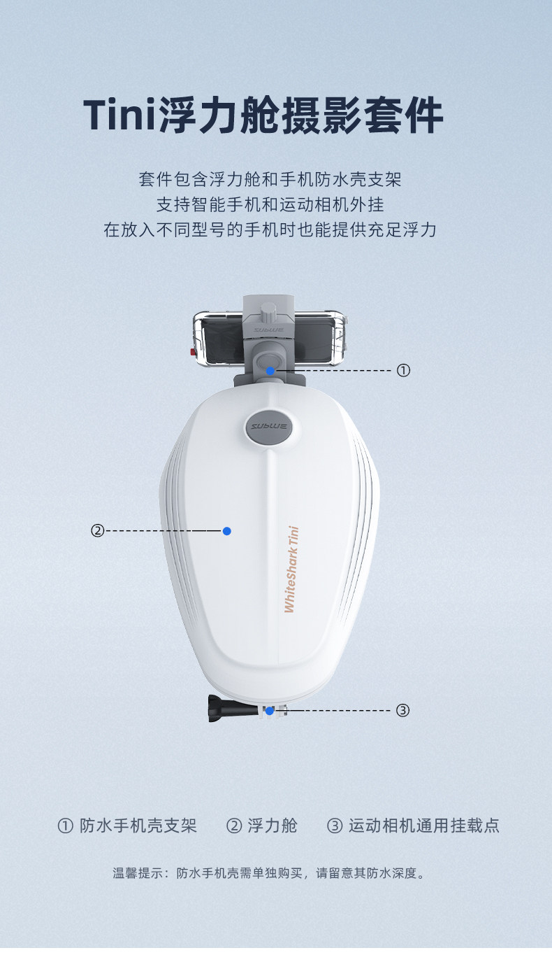 sublue tini水下助推器浮力舱手机支架浮潜拍摄