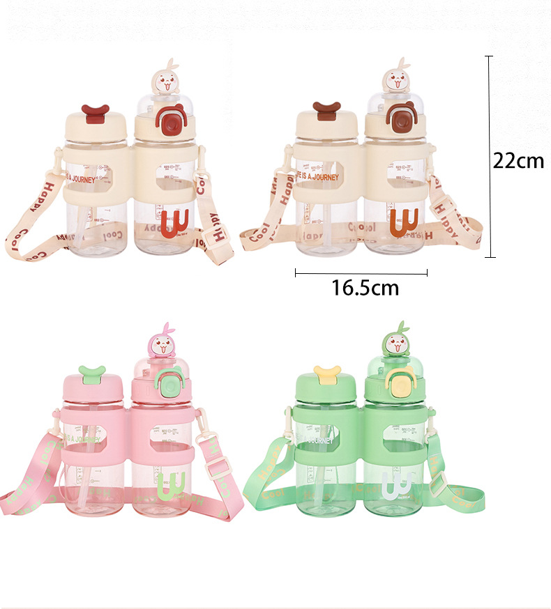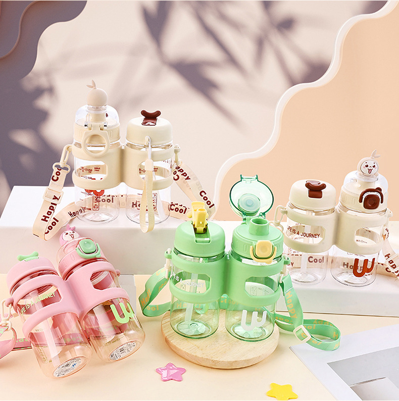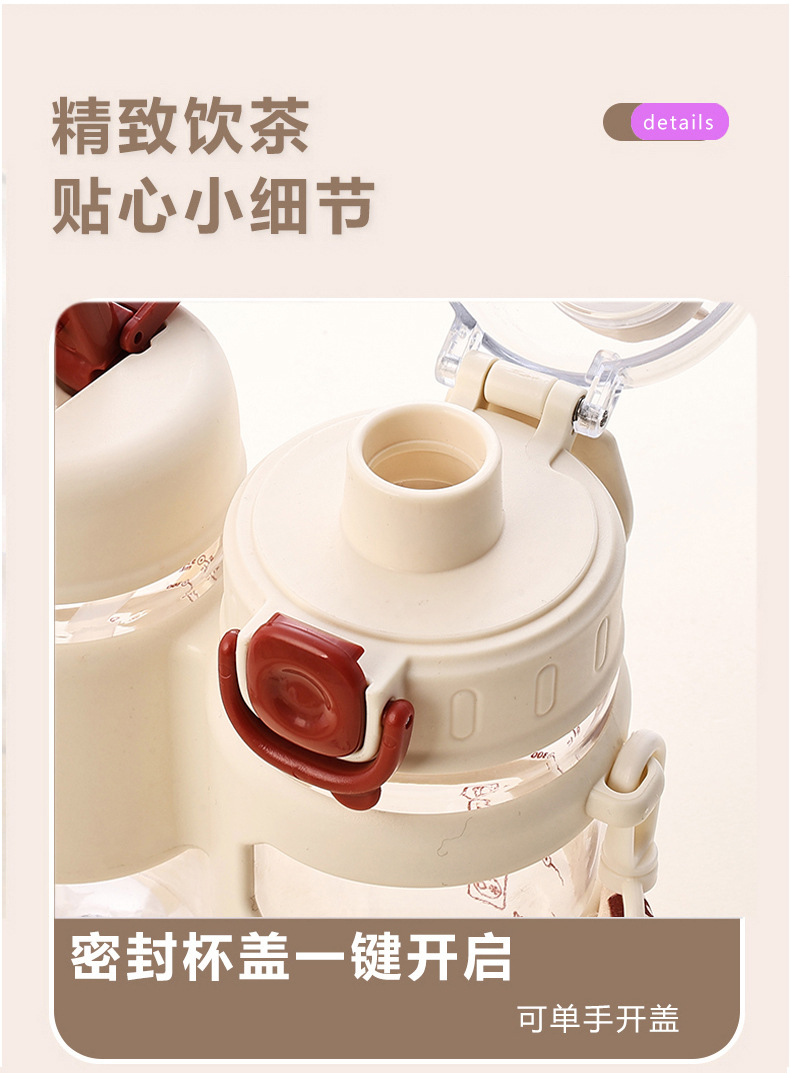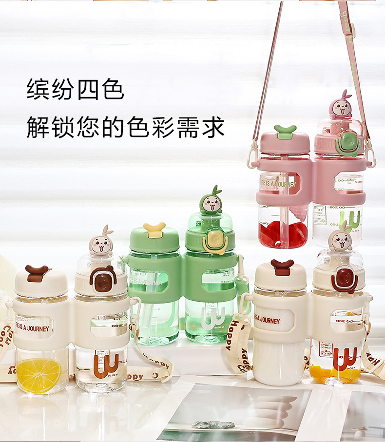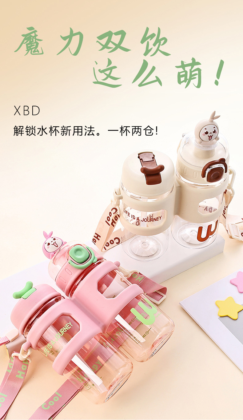 高颜值新款分仓双饮便携式水杯学生可爱网红儿童塑料吸管透明水壶