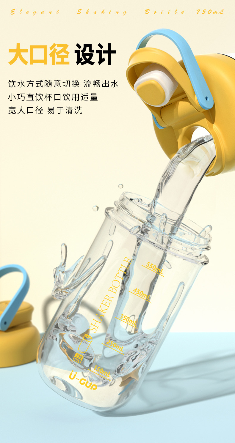 创意新款清新简雅摇摇杯750mL 奶瓶推盖直饮便携水杯