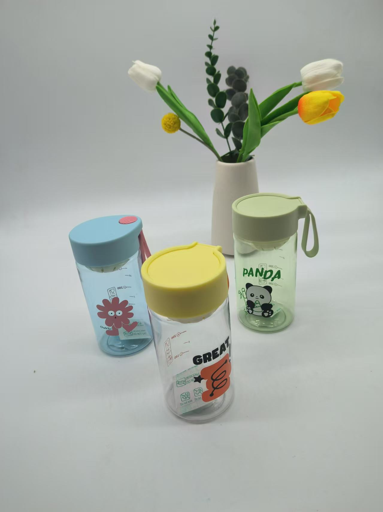 新款大口径直饮水杯卡通熊猫塑料杯学生女户外随身杯带茶隔水杯子