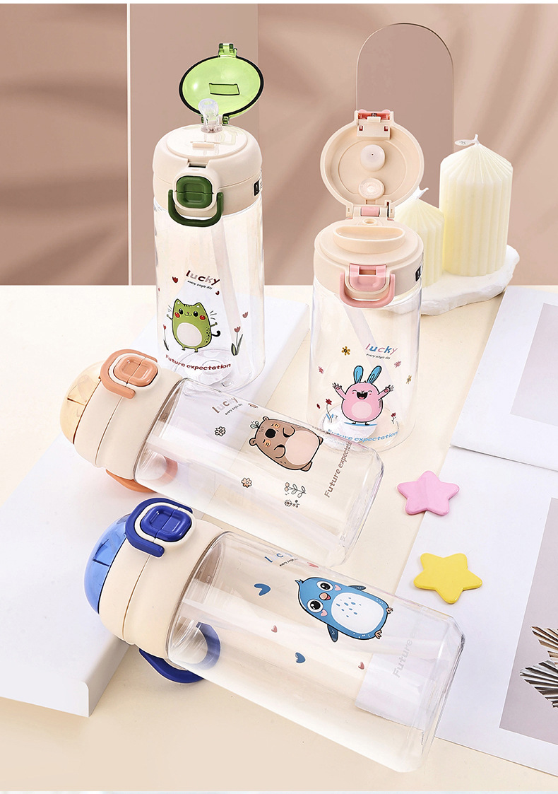 高颜值夏季学生水杯卡通简约清新双饮吸管杯男女生便携防摔随手杯