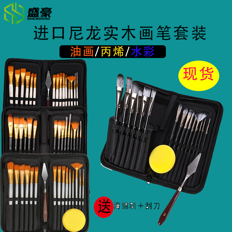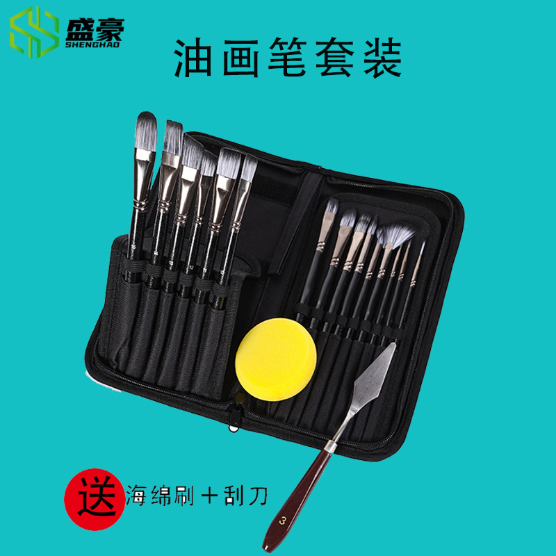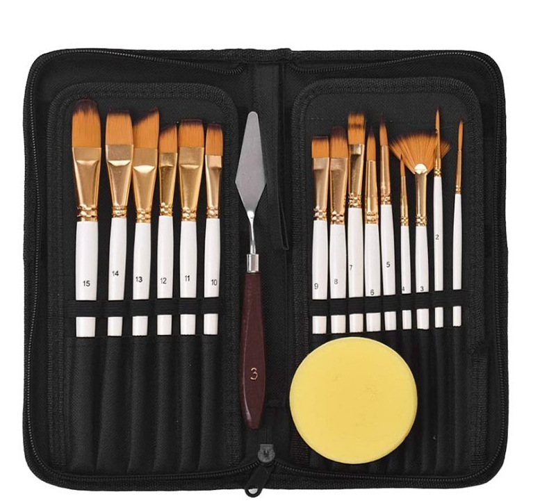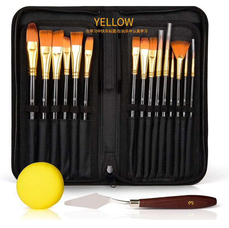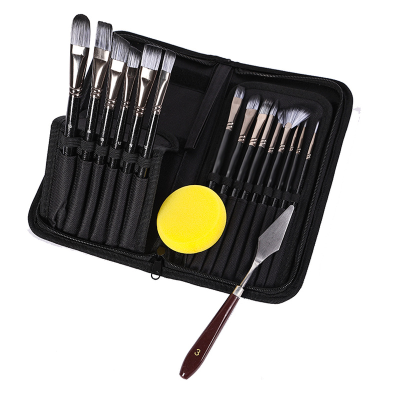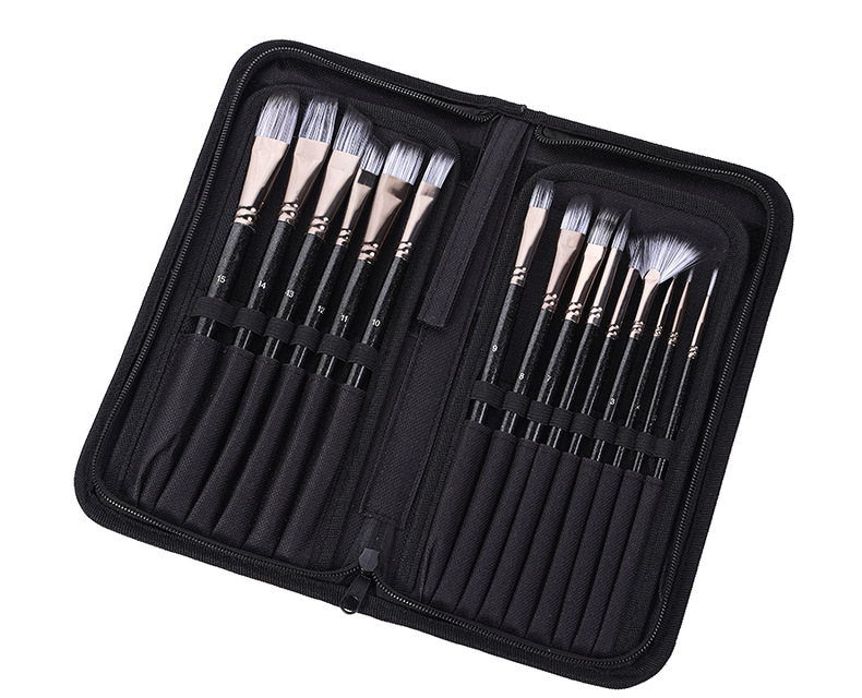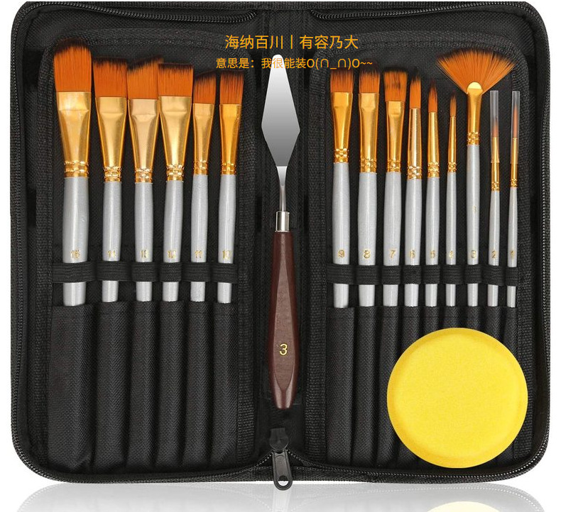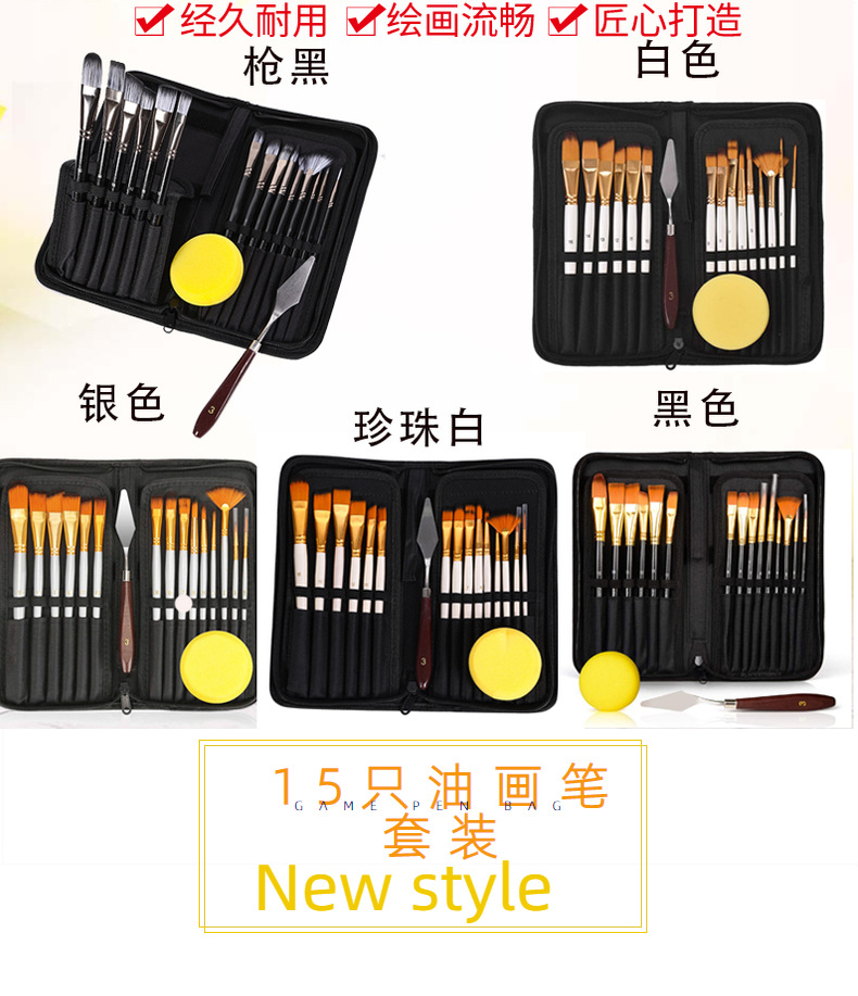 15支布包油画笔 跨境厂家批发黑色拉链帆布袋套装带刮刀海绵厂家