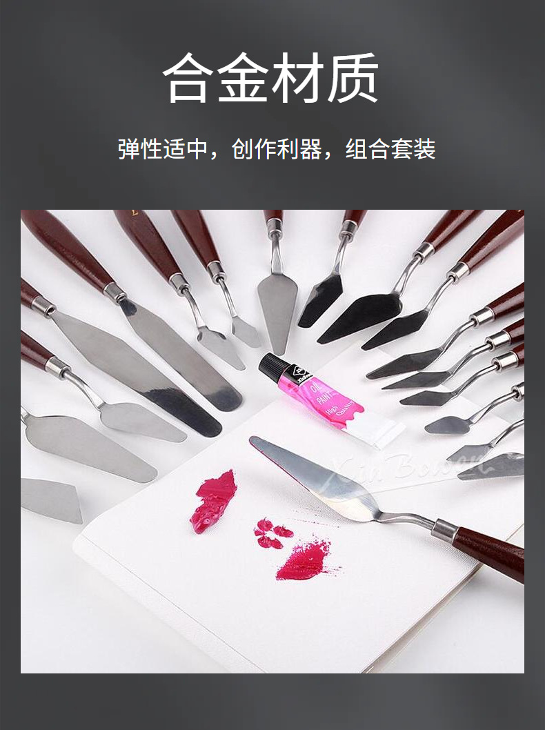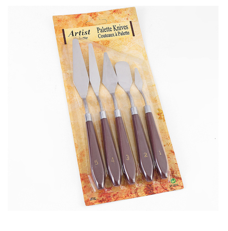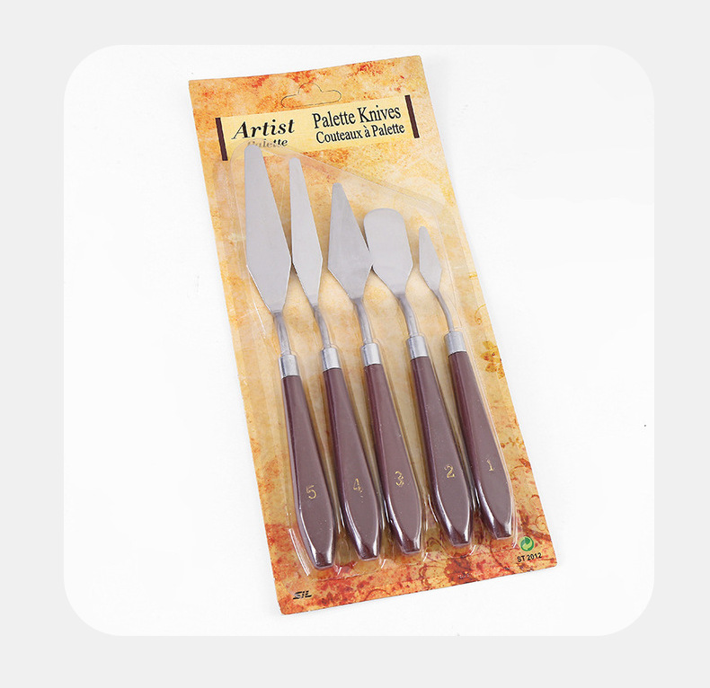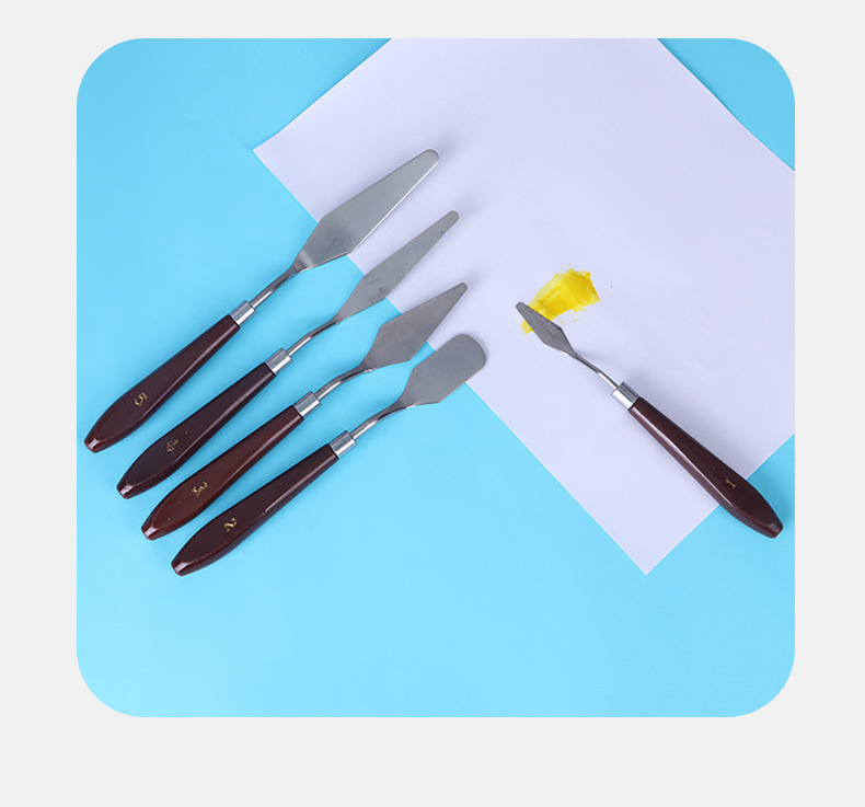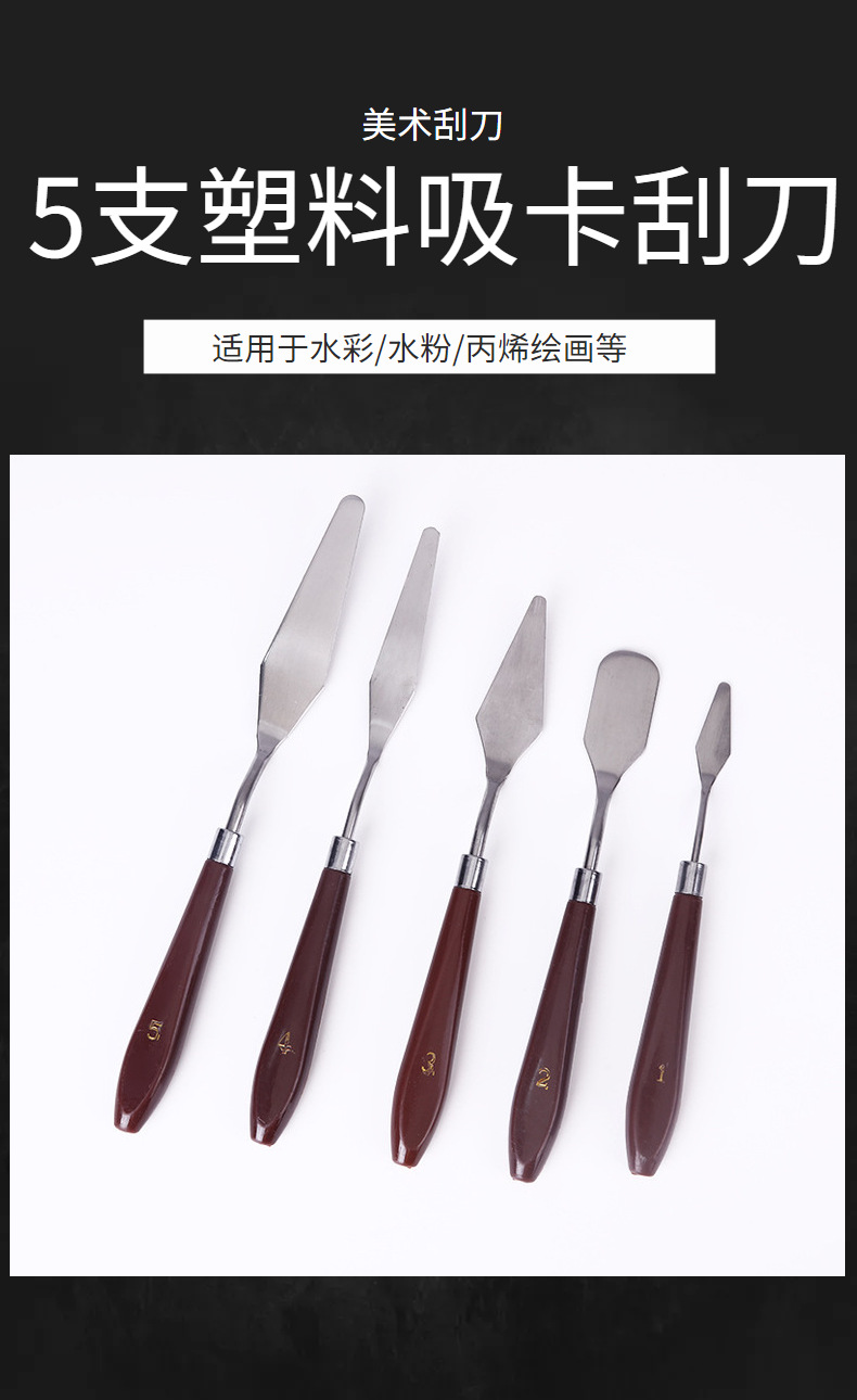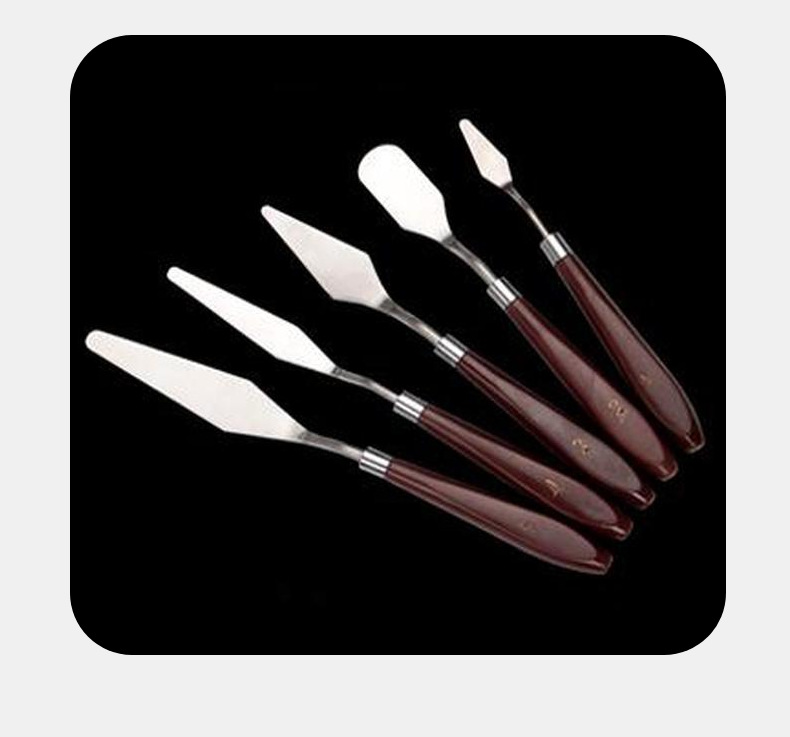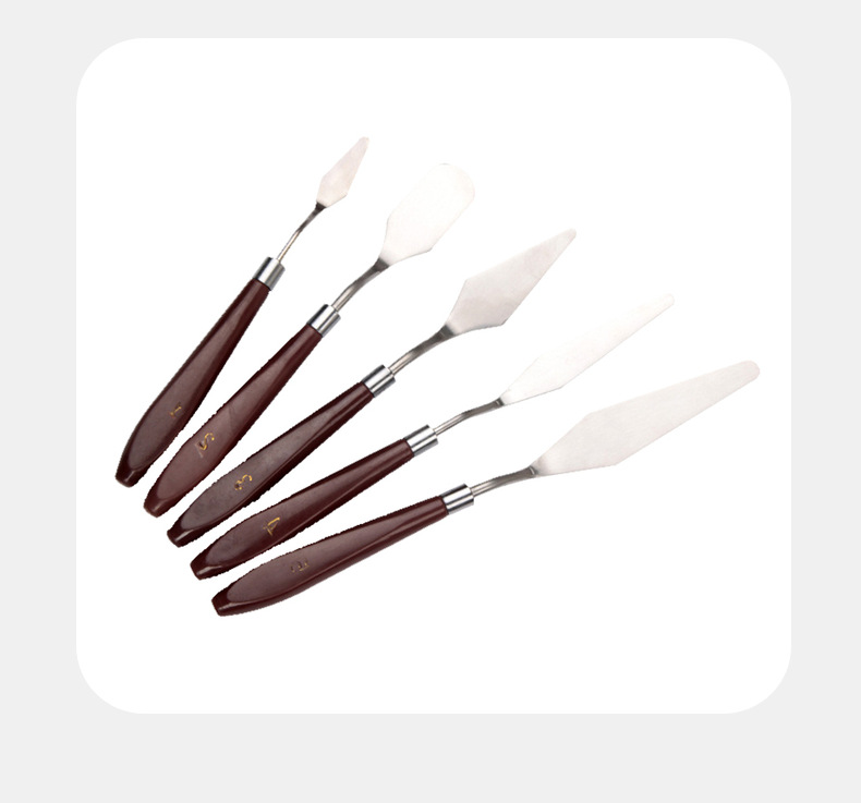 油画刮刀5件套美术颜料木质不锈钢调色油画巧克力套装多用途批发
