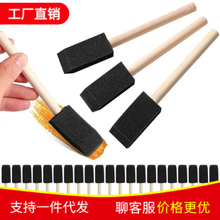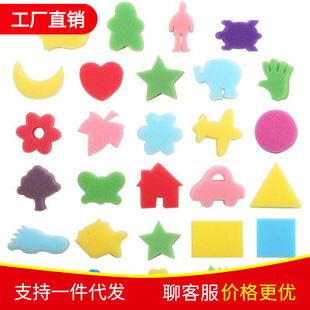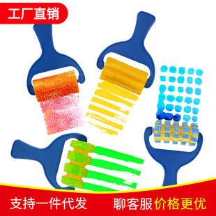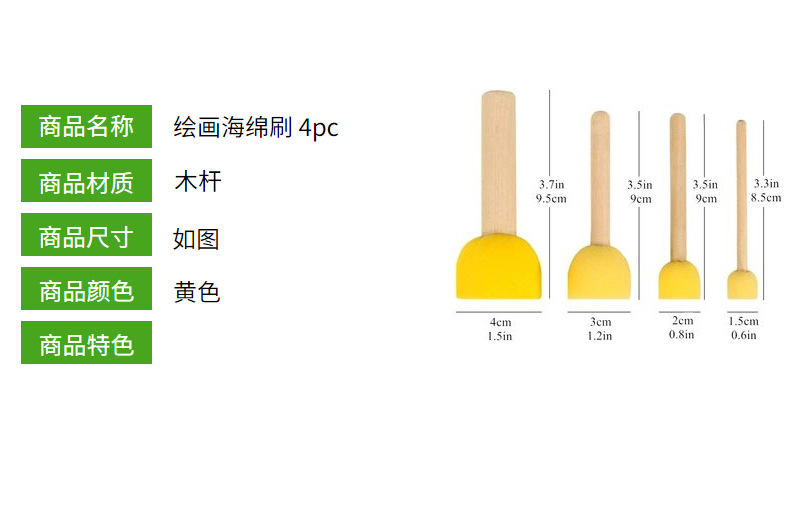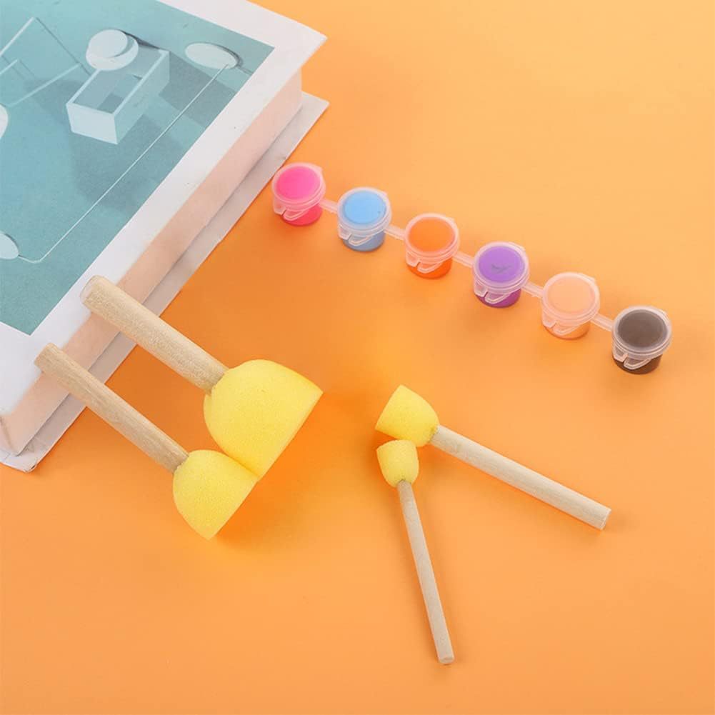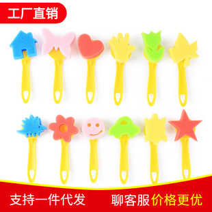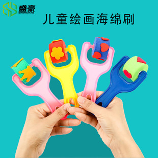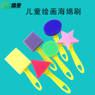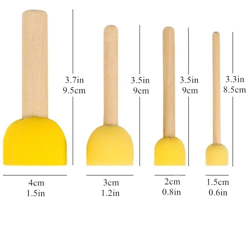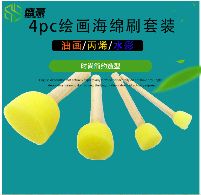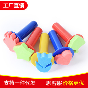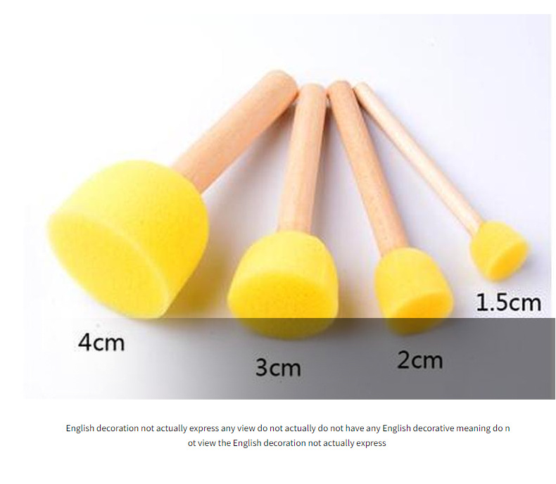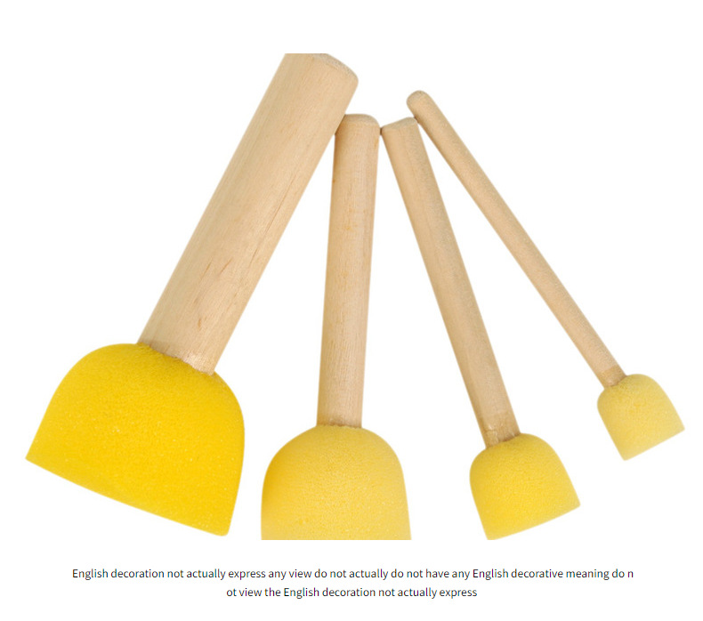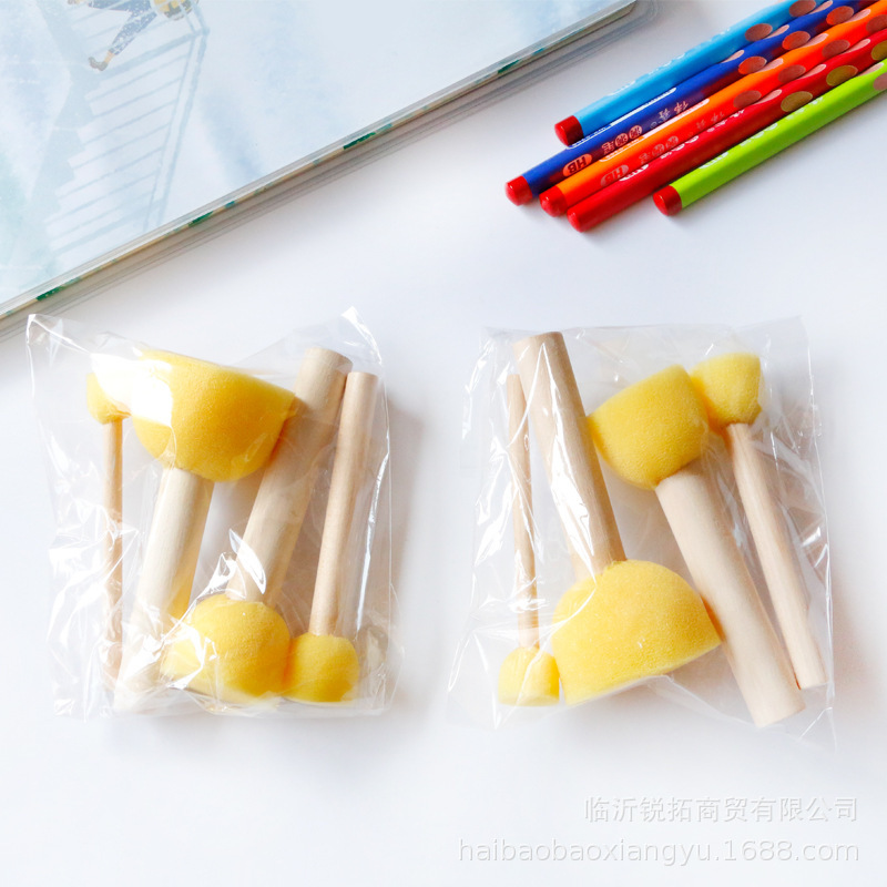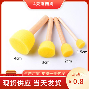 跨境4支蘑菇头海绵绘画笔刷原木手柄儿童早教DIY涂鸦海绵印章批发