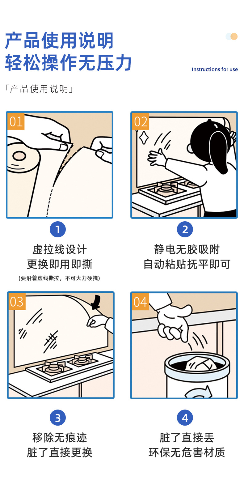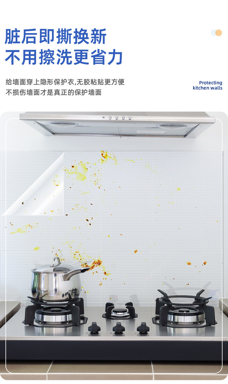 点断撕防油贴家用免胶吸附厨房贴纸墙面耐脏透明点断式静电保护膜