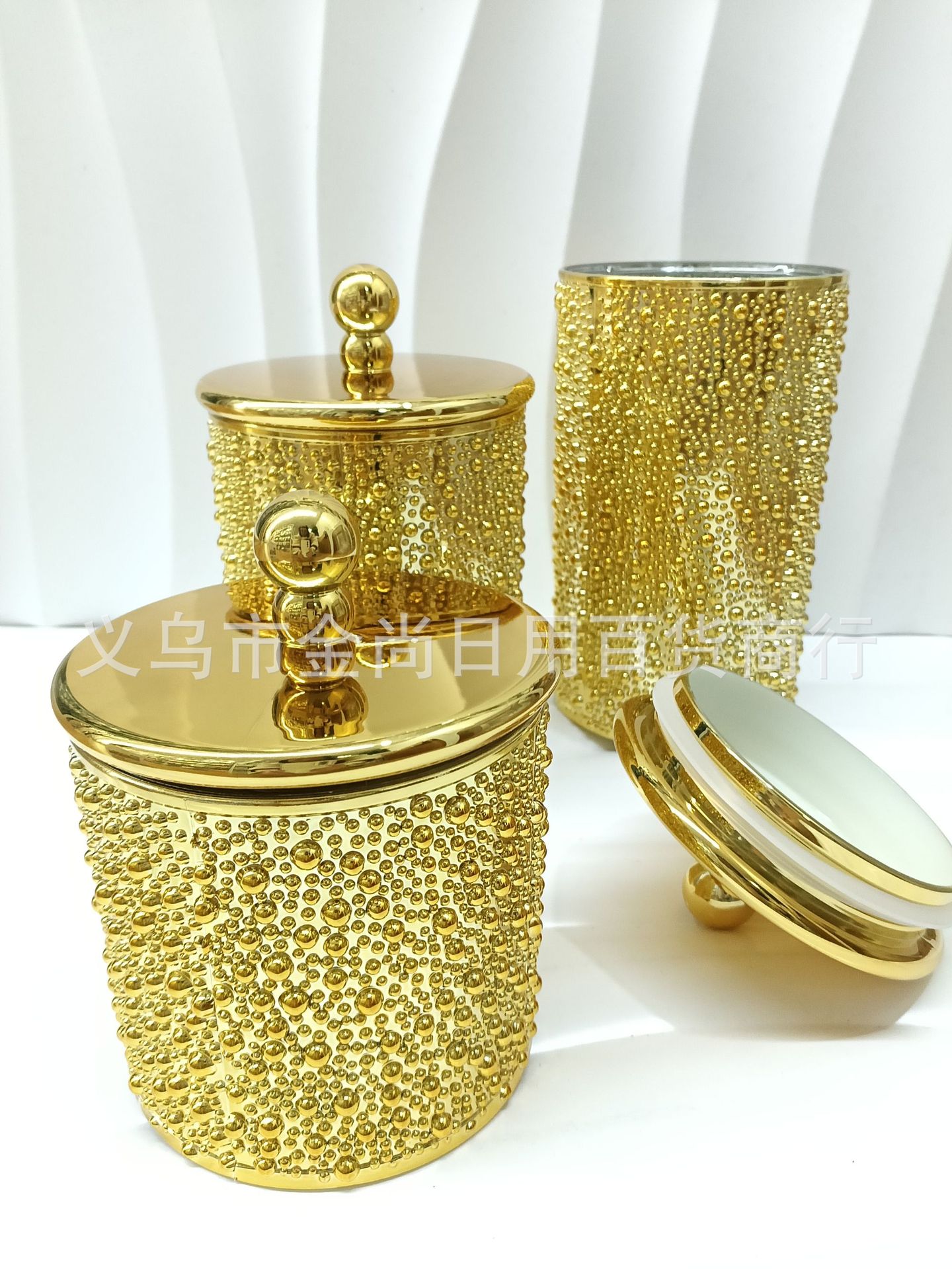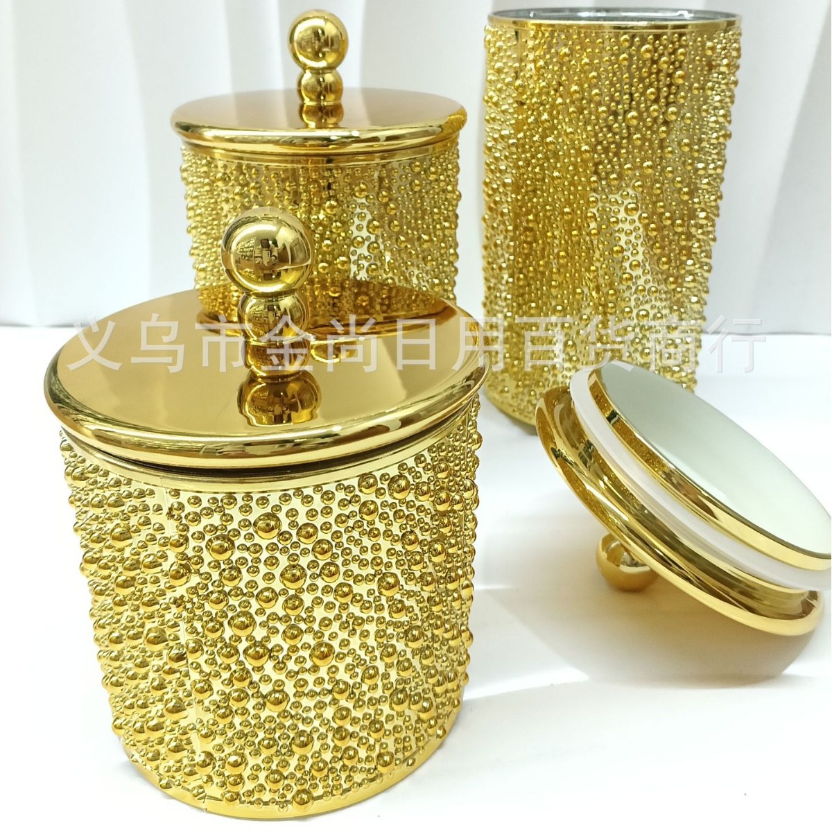 厂家直销 金色珍珠款储物罐桌面手提坚果糖果罐酒店 茶叶罐摆件