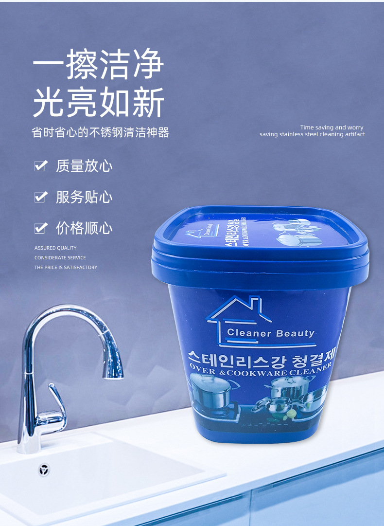 韩国配方厨具去油污 英文包装 跨境不锈钢清洁膏锅底除黑剂去重油污神器家用去污膏多功能清洁剂 瓷砖锅具锅底抛光去烧痕除锈剂 外贸出口韩文不锈钢清洁剂去污清洁膏除锅底烧痕除锈剂瓷砖清洗剂