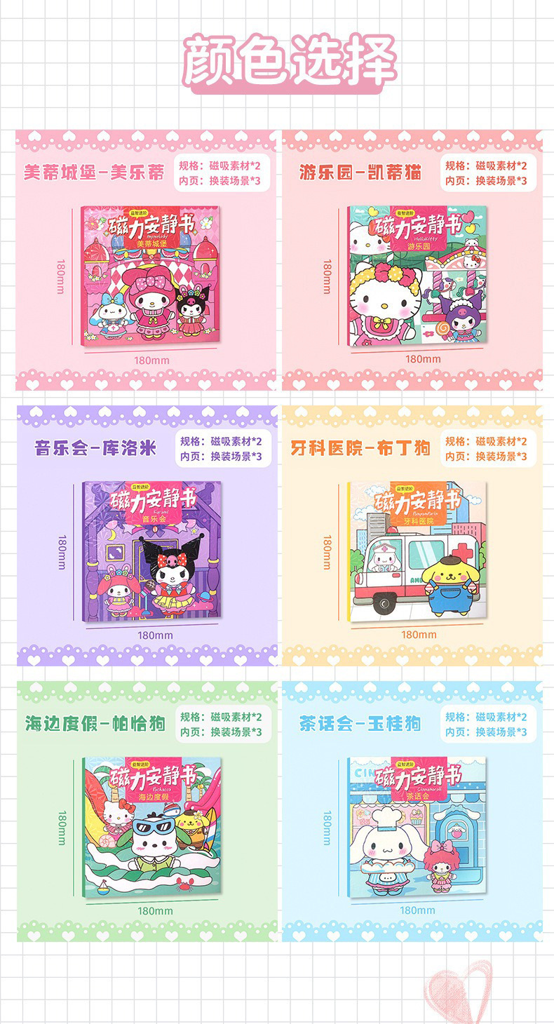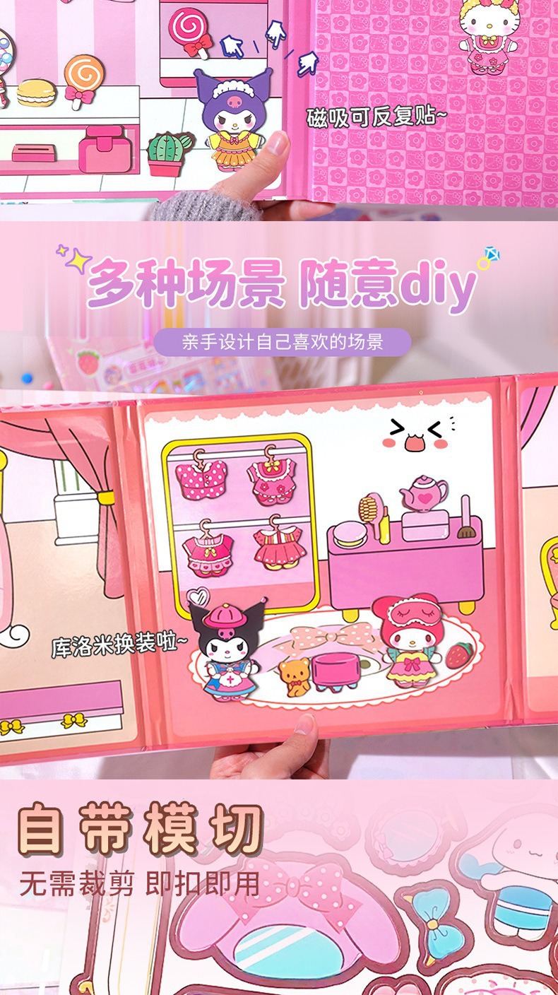 三丽鸥新款磁力安静书卡通免裁剪diy安静书儿童益智diy磁吸安静书