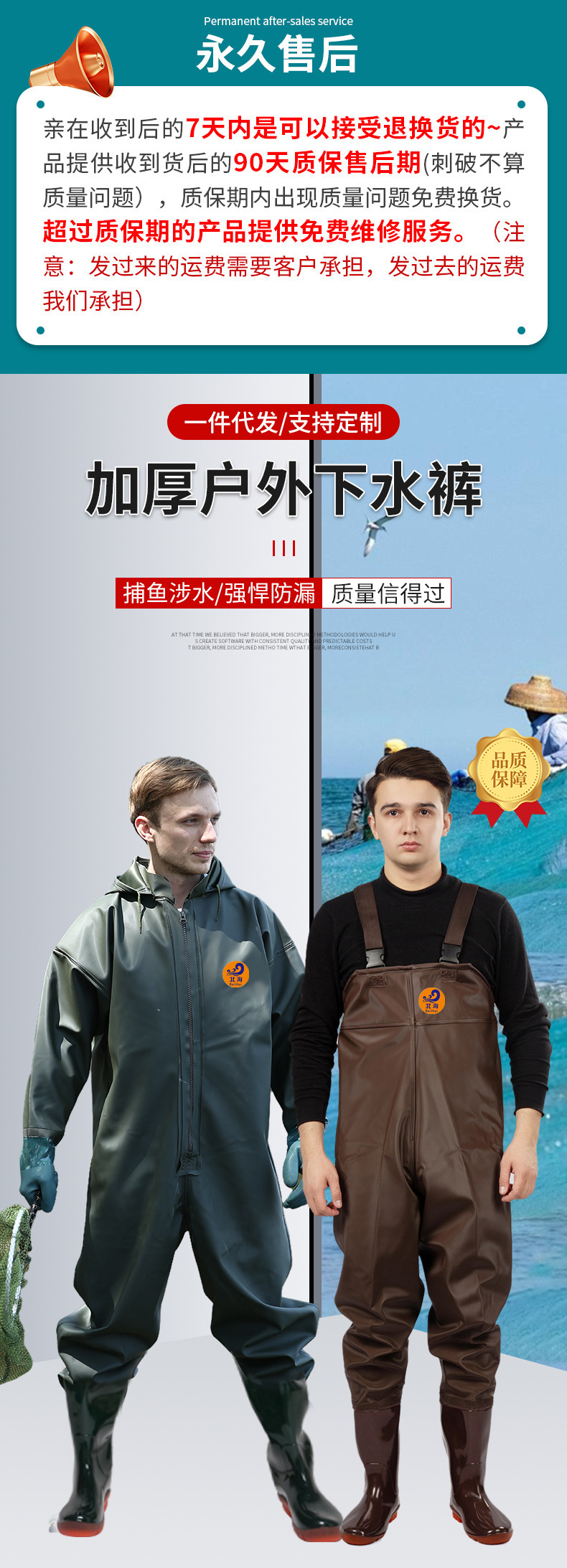 北海户外捕鱼下水裤半身连体浇水涉水裤防水男女加厚特厚钓鱼裤