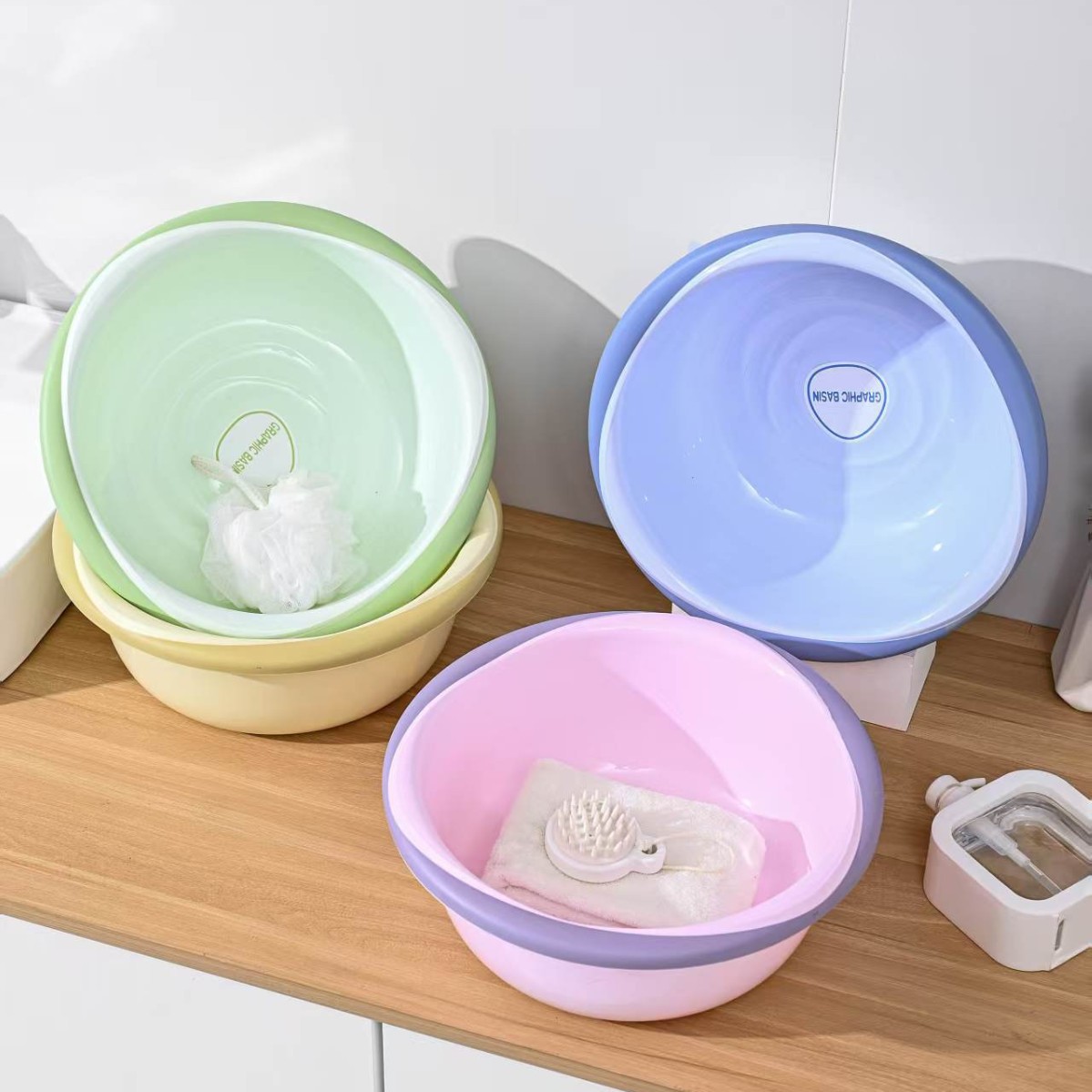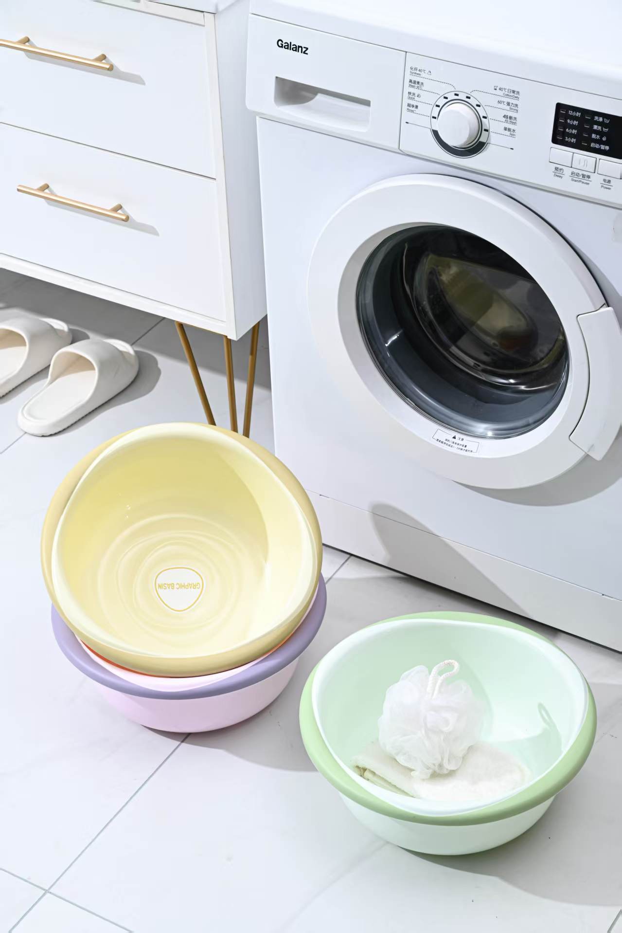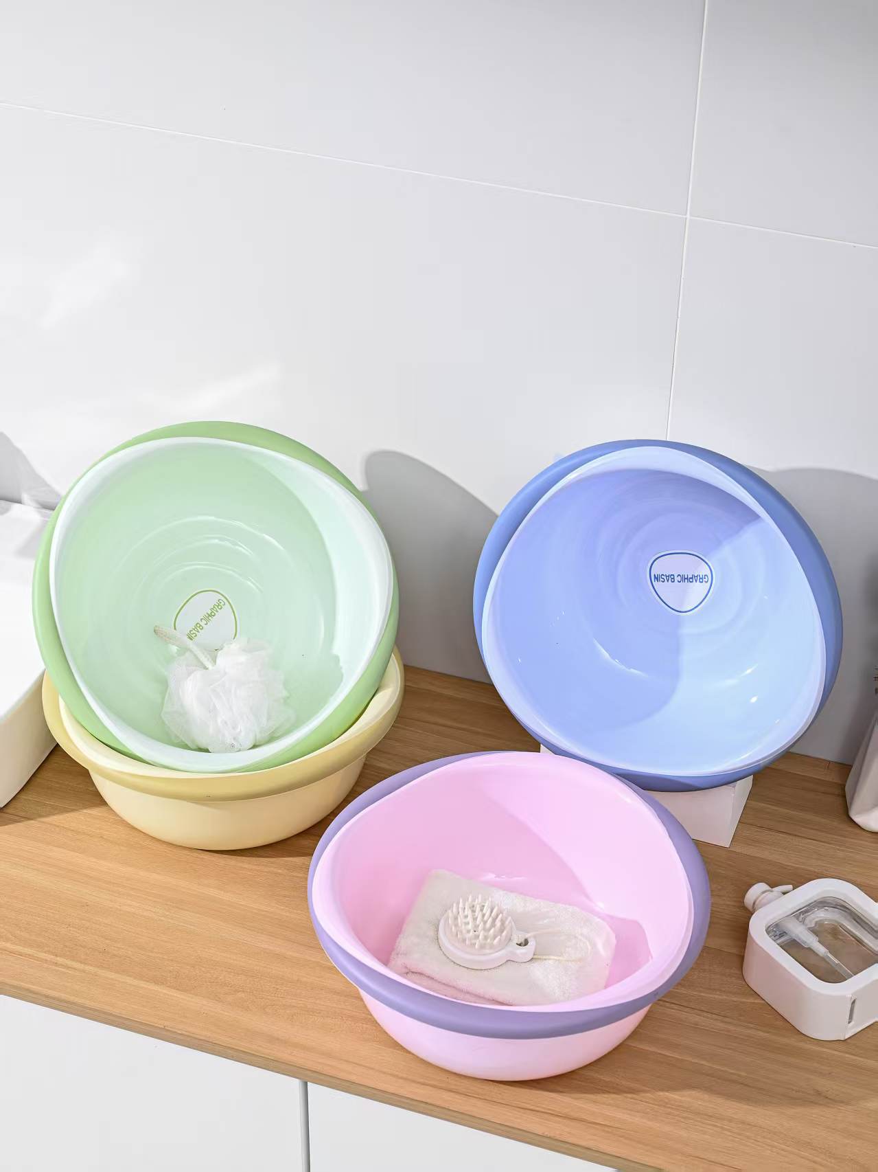 批发双色几何圆形脸盆加厚加大洗脸洗脚洗衣学生宿舍厨房厂家直销