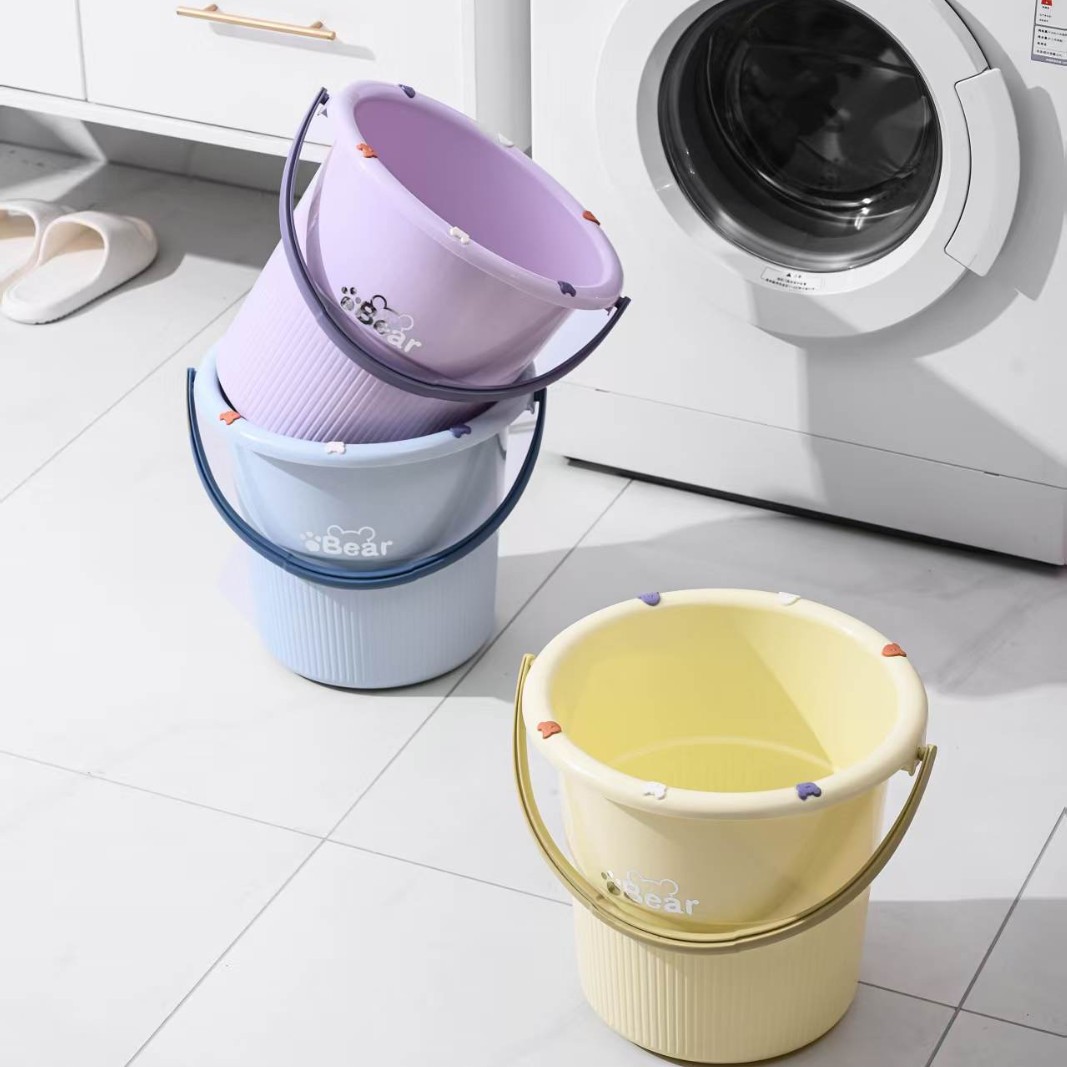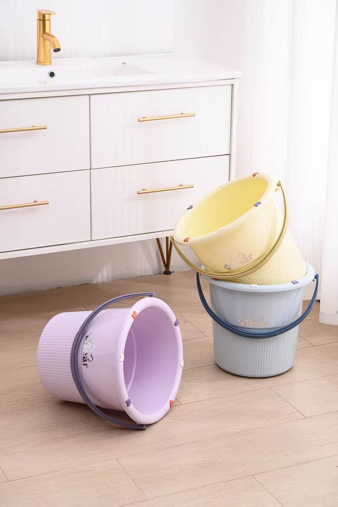家用卡通水桶大号提手塑料加厚储水桶拖把大桶圆桶洗澡桶脸盆套装