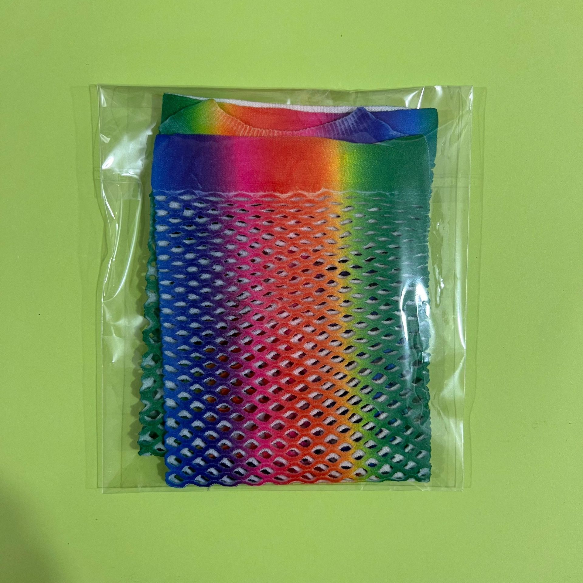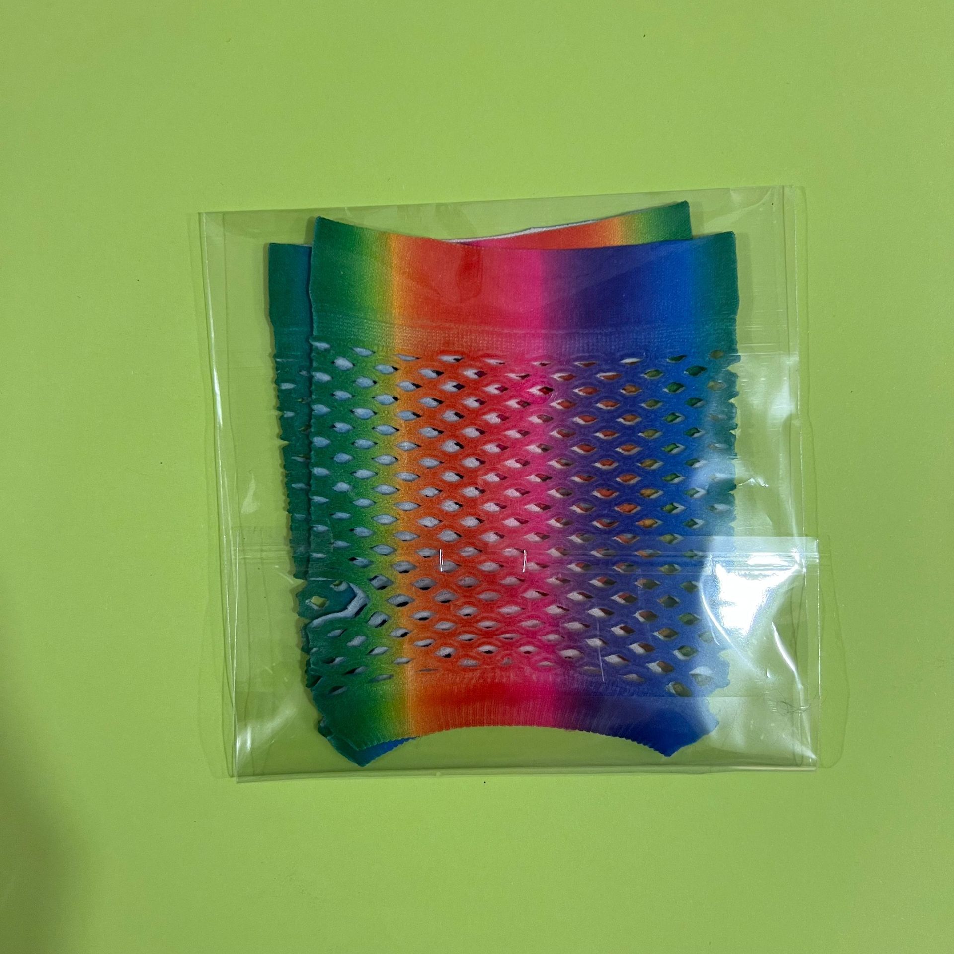 彩虹渔网手套 弹力网眼化装舞会嘻哈性感多彩短款中长手套 跨境