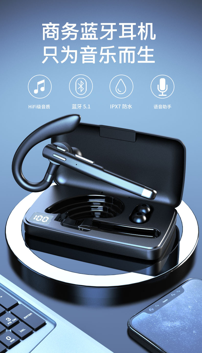 跨境Ai翻译私模商务无线蓝牙耳机YYK520入耳式挂耳式蓝牙耳机批发