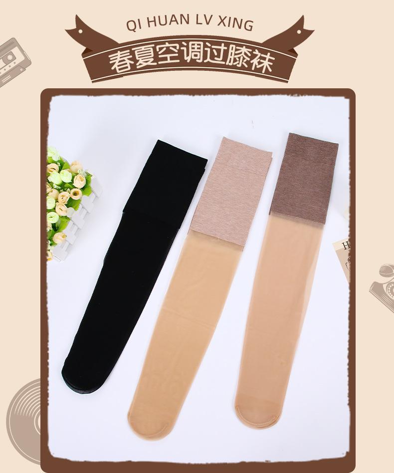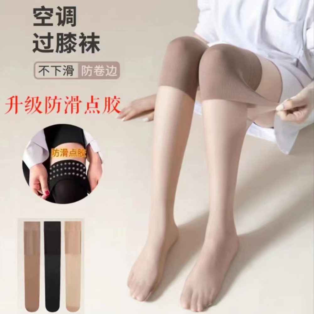 夏季空调袜舒适空调护膝简约丝袜女薄款防勾丝过膝袜不勒腿中筒袜