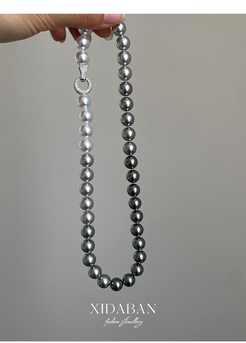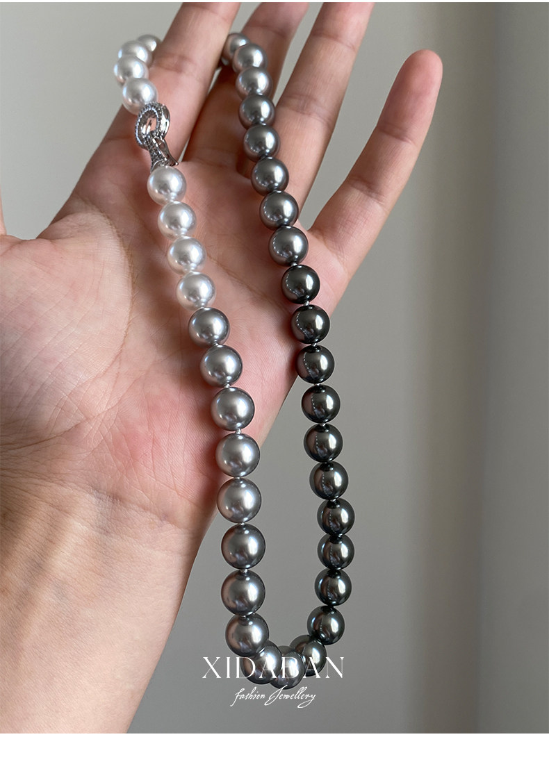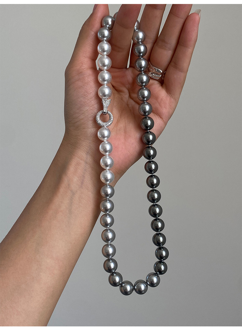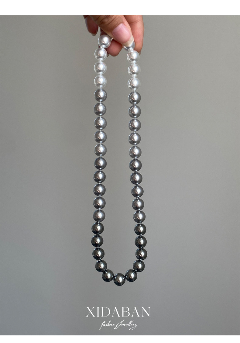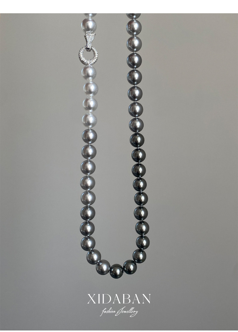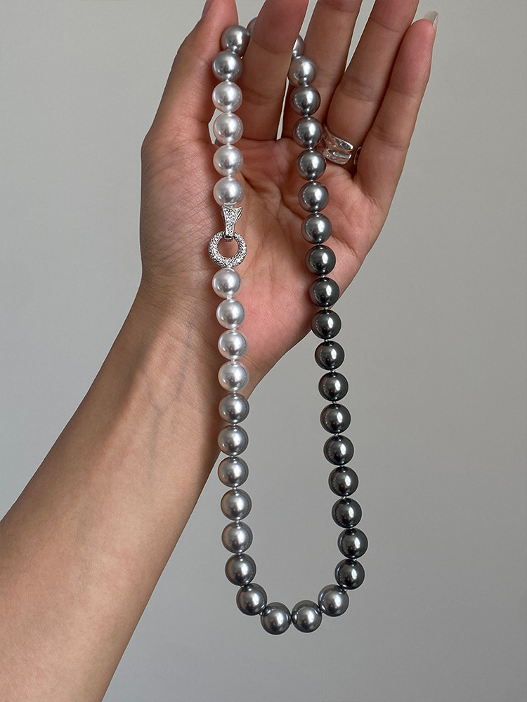 施家珍珠大溪地项链真多麻银灰渐变毛衣颈链小众设计高级感锁骨链