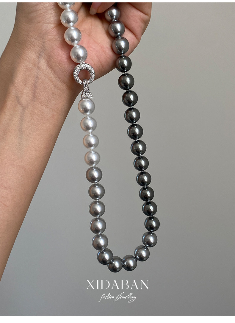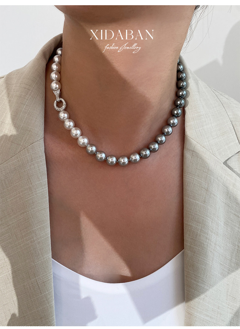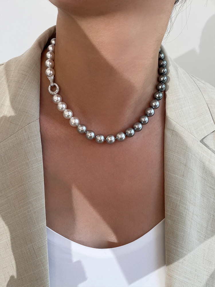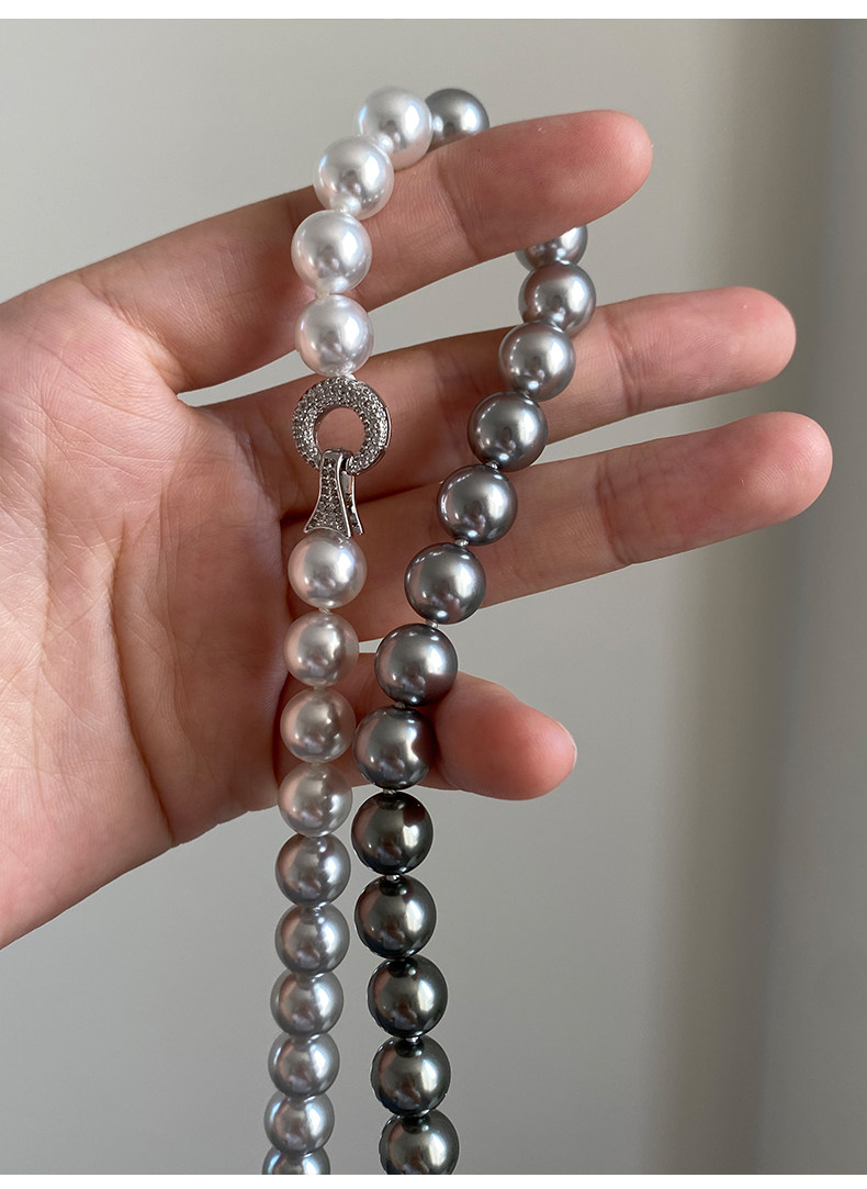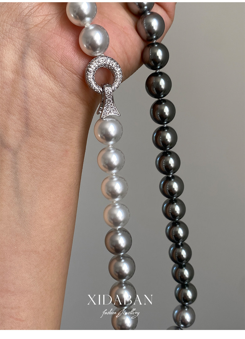 施家珍珠大溪地项链真多麻银灰渐变毛衣颈链小众设计高级感锁骨链