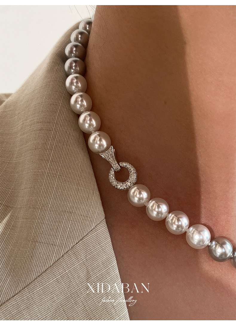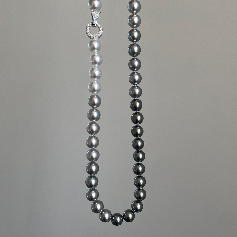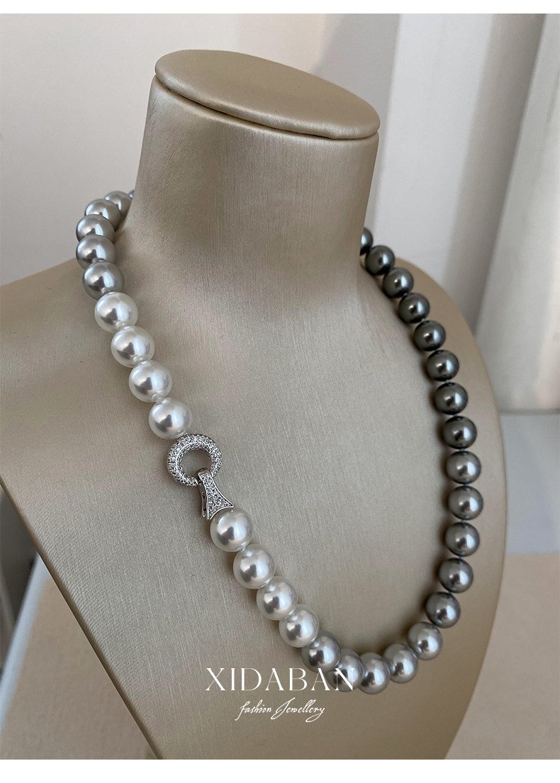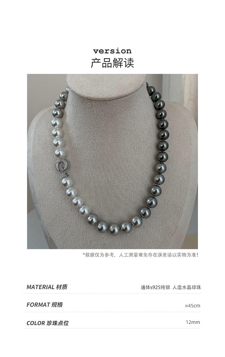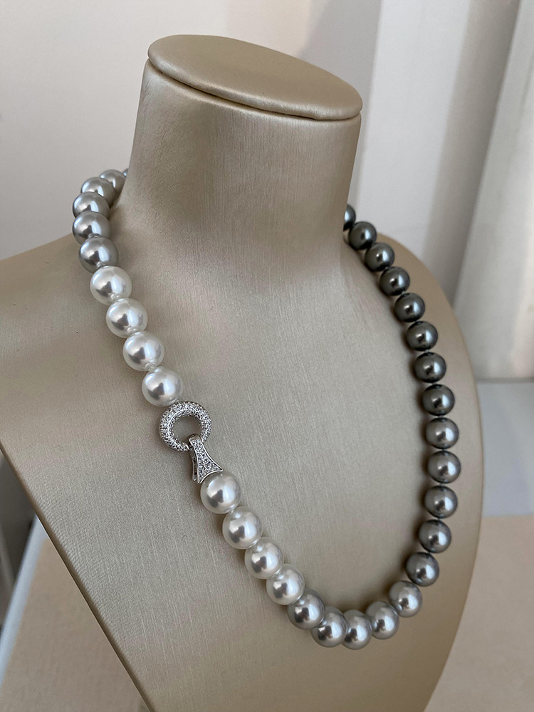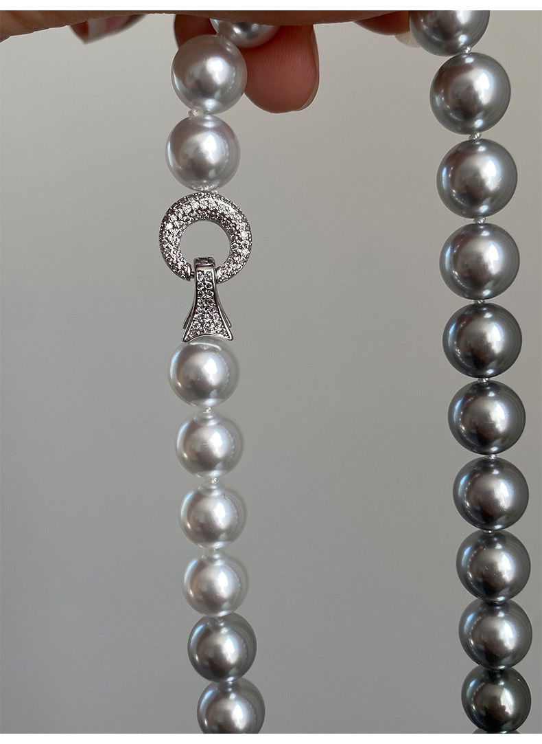 施家珍珠大溪地项链真多麻银灰渐变毛衣颈链小众设计高级感锁骨链