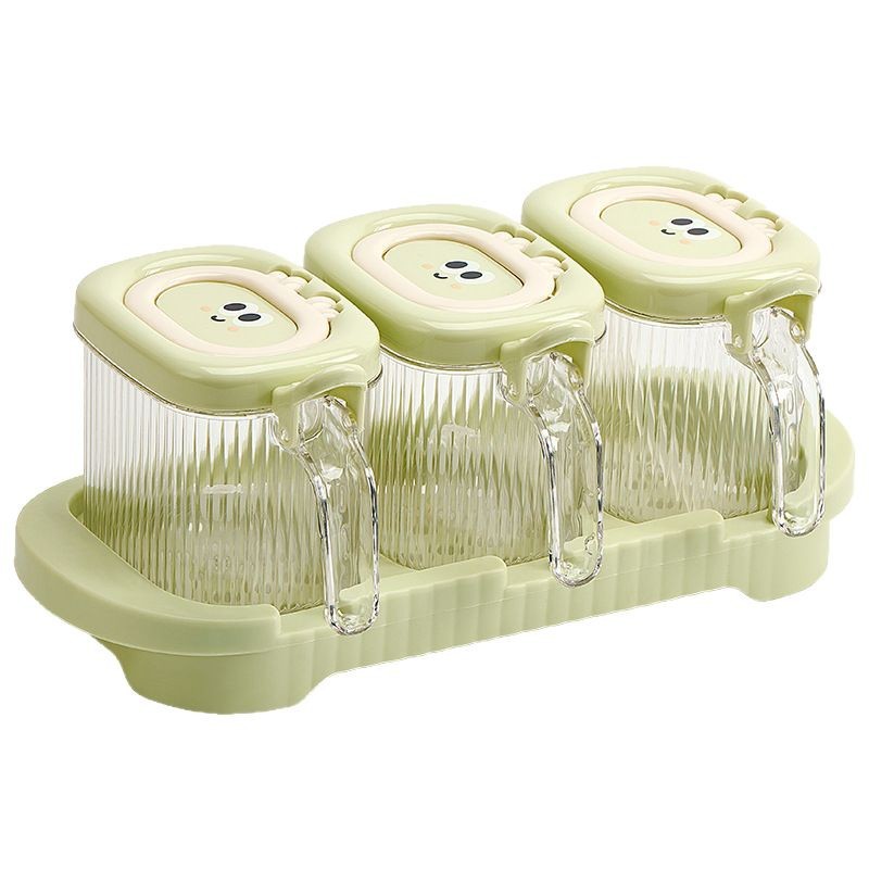 带盖调料罐组合装批发卡通可爱塑料调料盒厨房盐味精罐调味盒家用