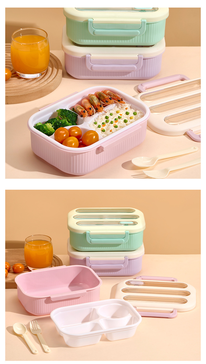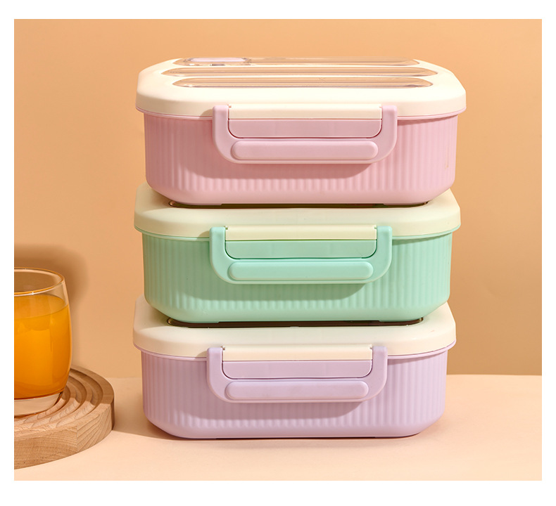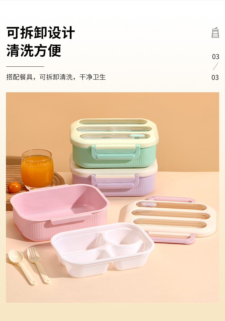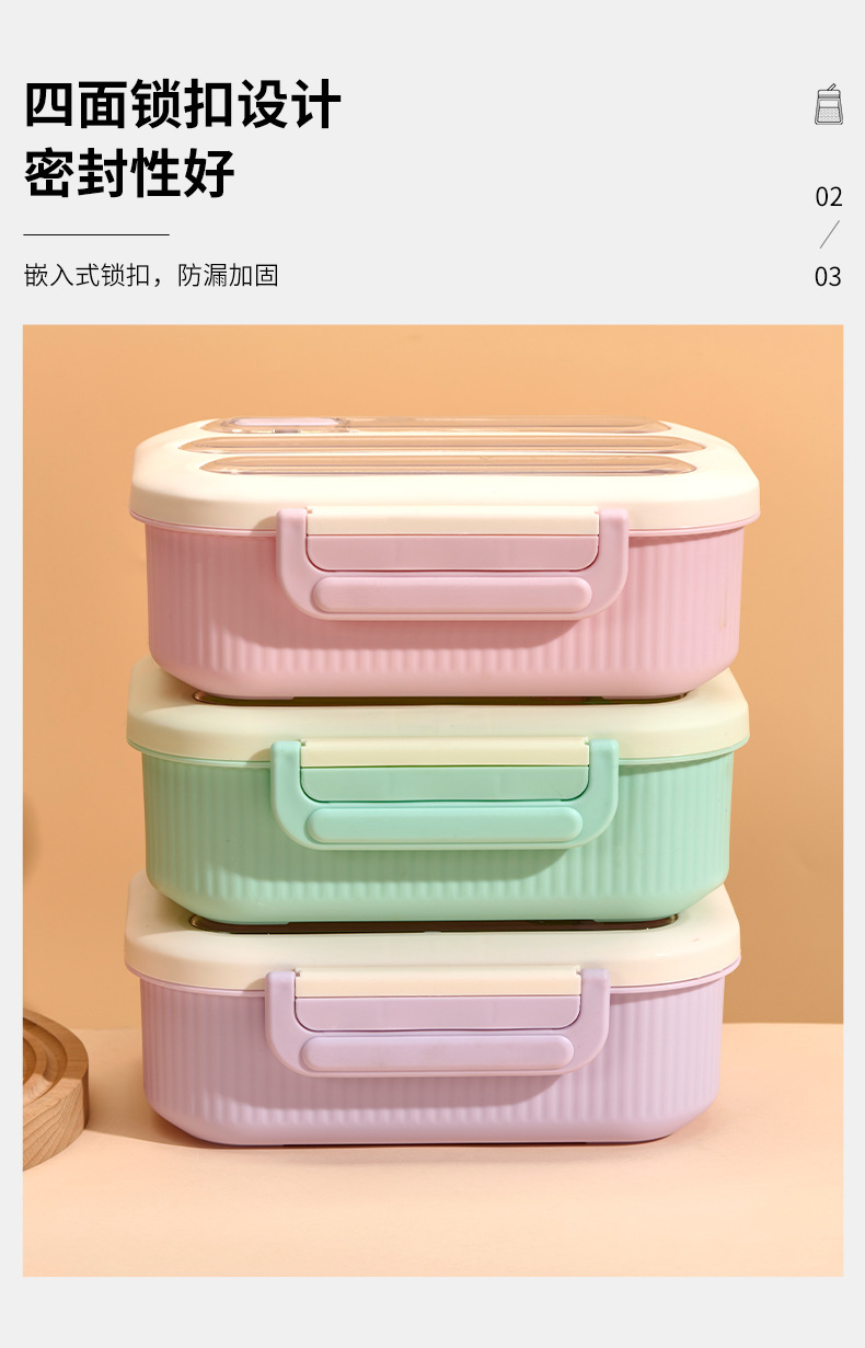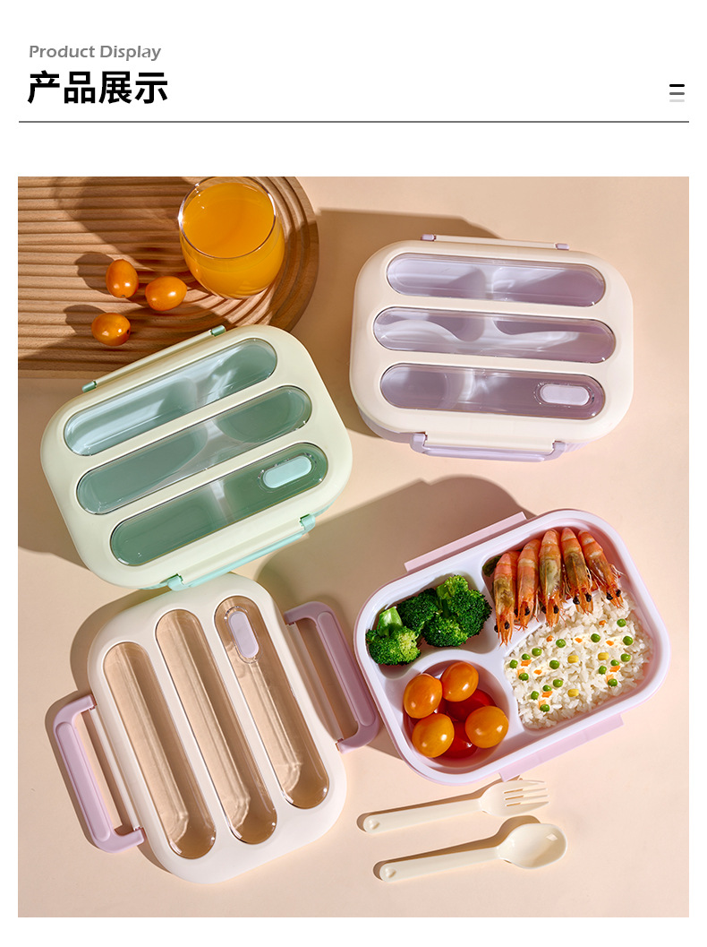 可爱卡通成人便当盒学生上班族分格午餐盒批发果冻色四格微波炉饭