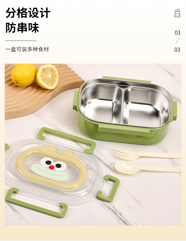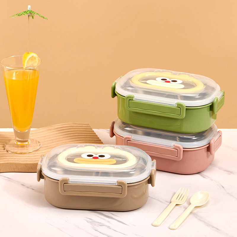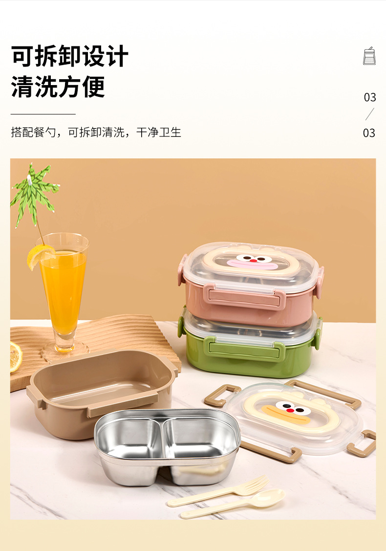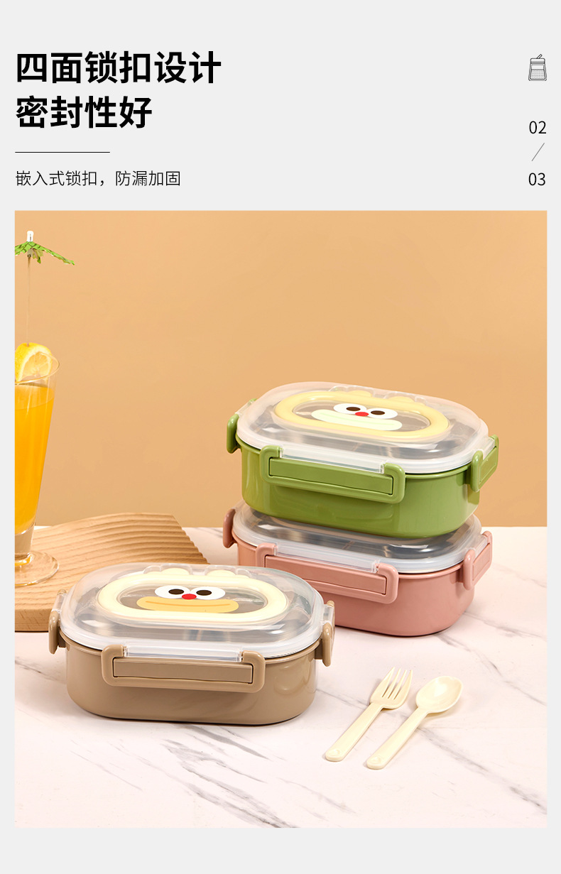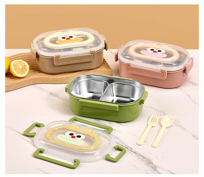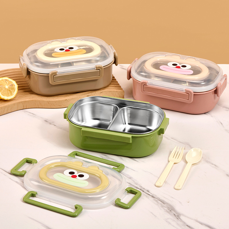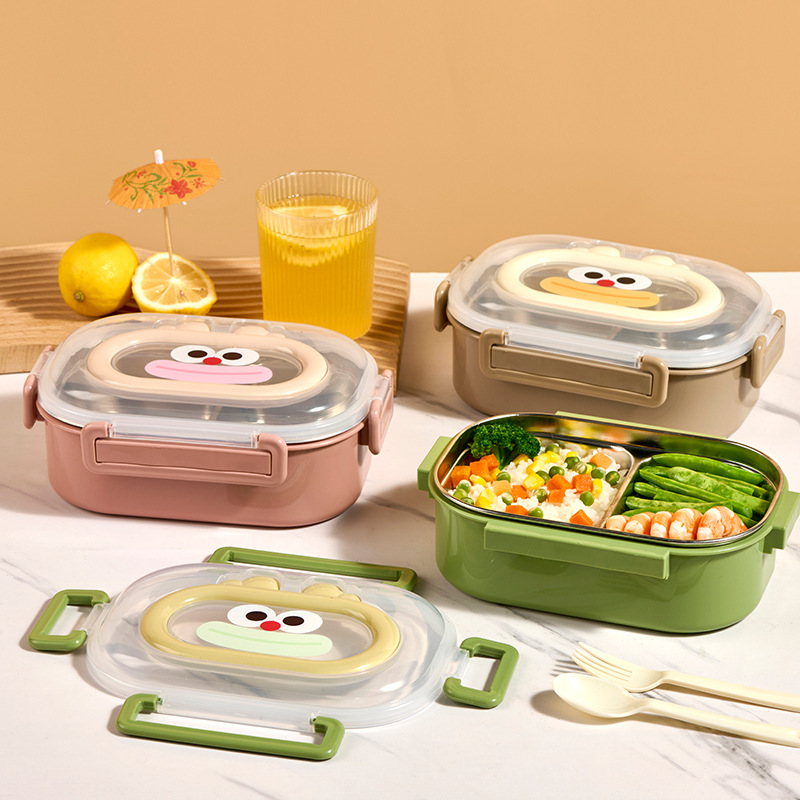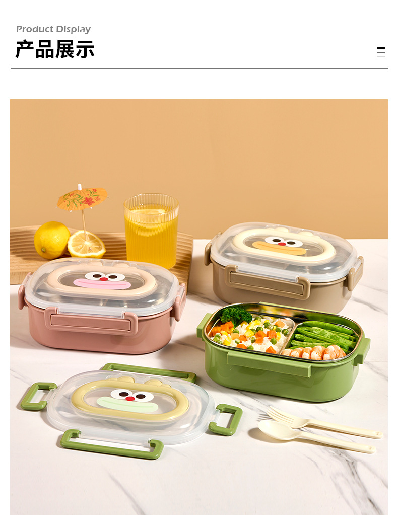 可爱卡通表情双层不锈钢塑料便携分格餐盒批发学生保温午饭盒微波