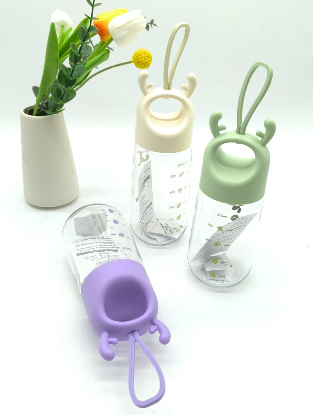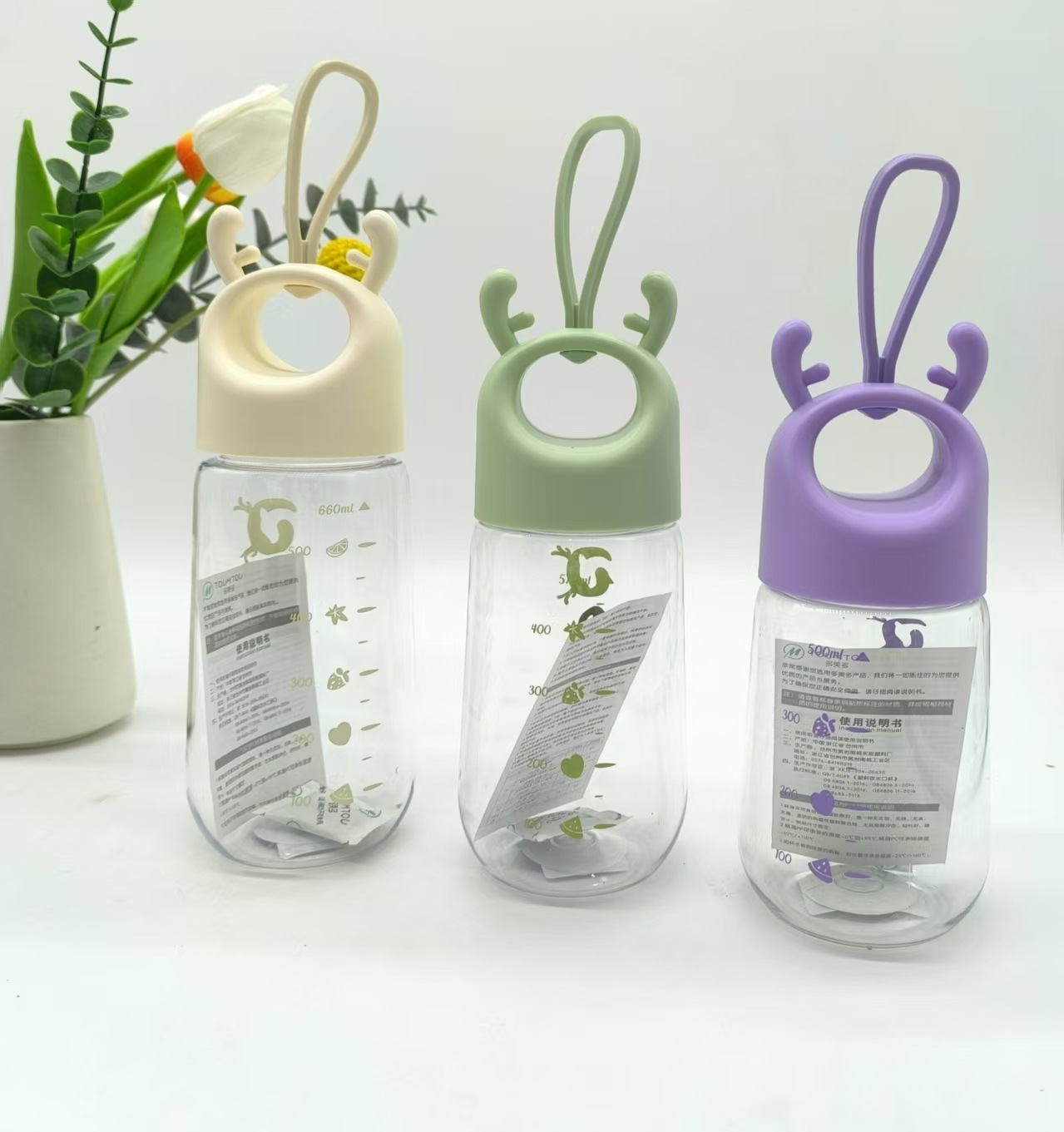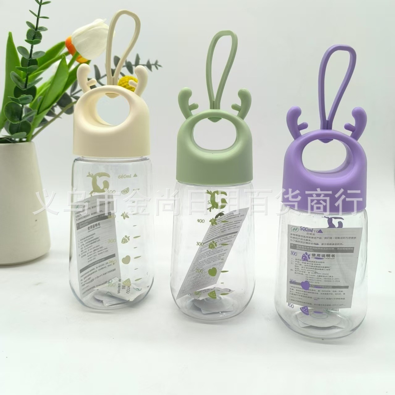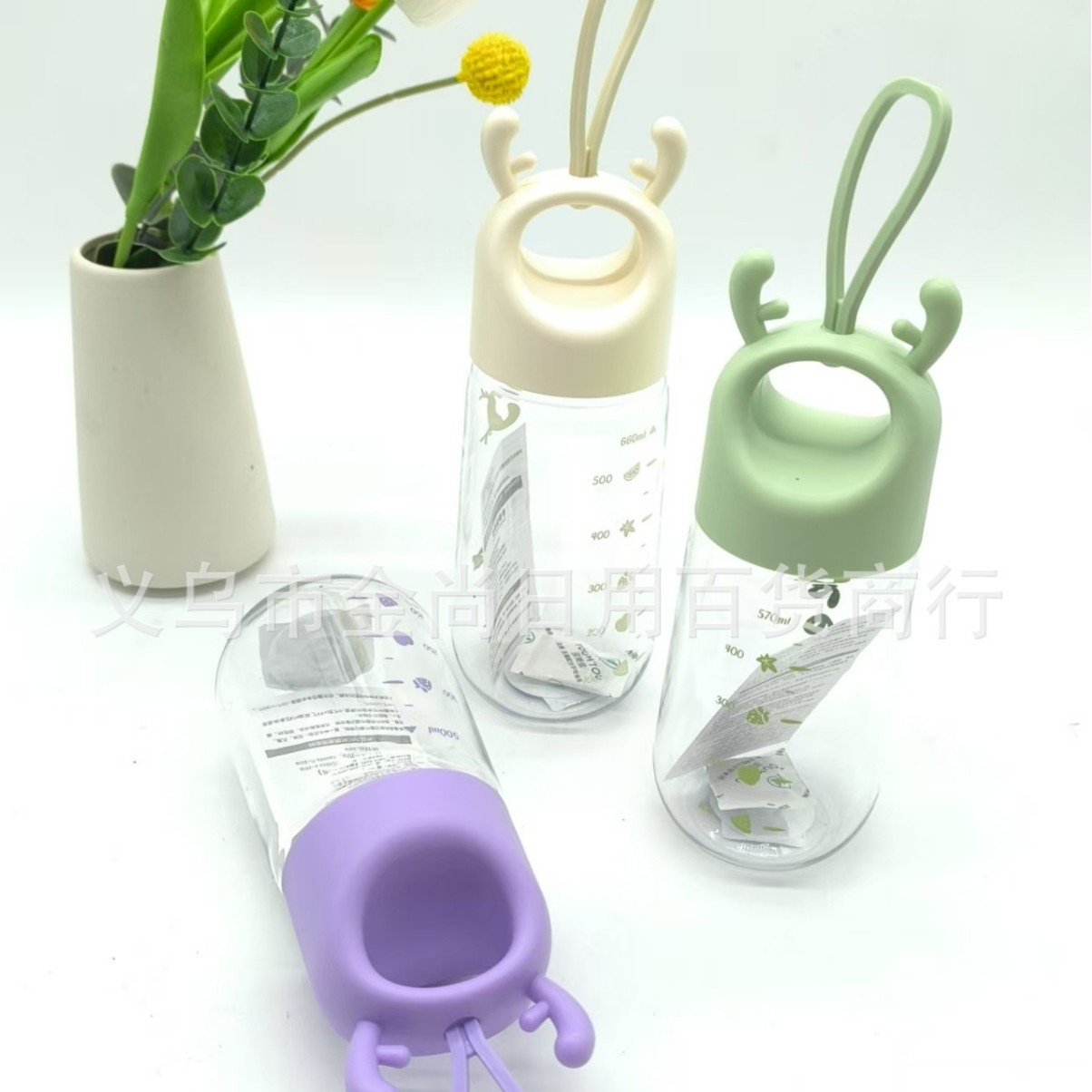 儿童水杯卡通吊坠ins风创意造型礼品摇摇杯提手塑料杯子批发