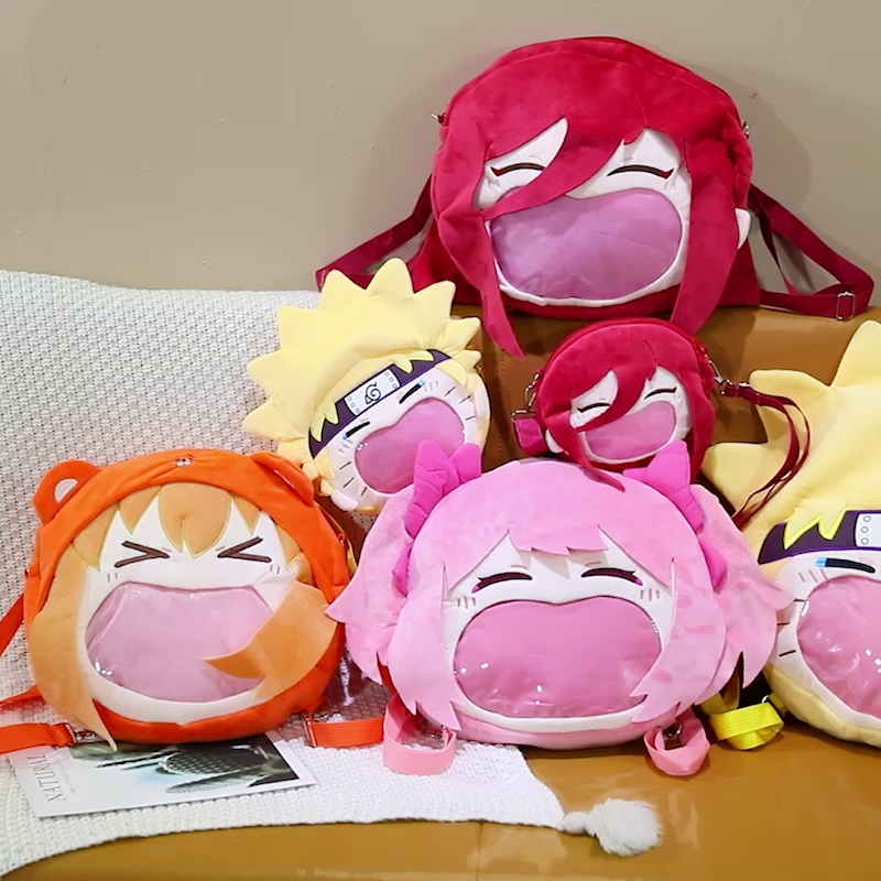 新款二次元未来卡通痛包双肩包可爱毛绒大容量双肩开心背包斜挎包