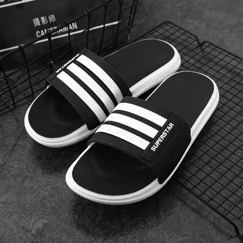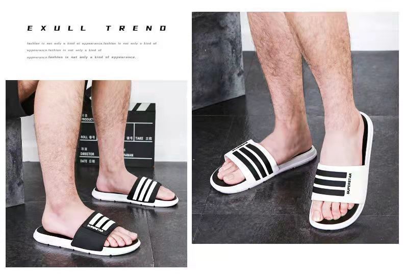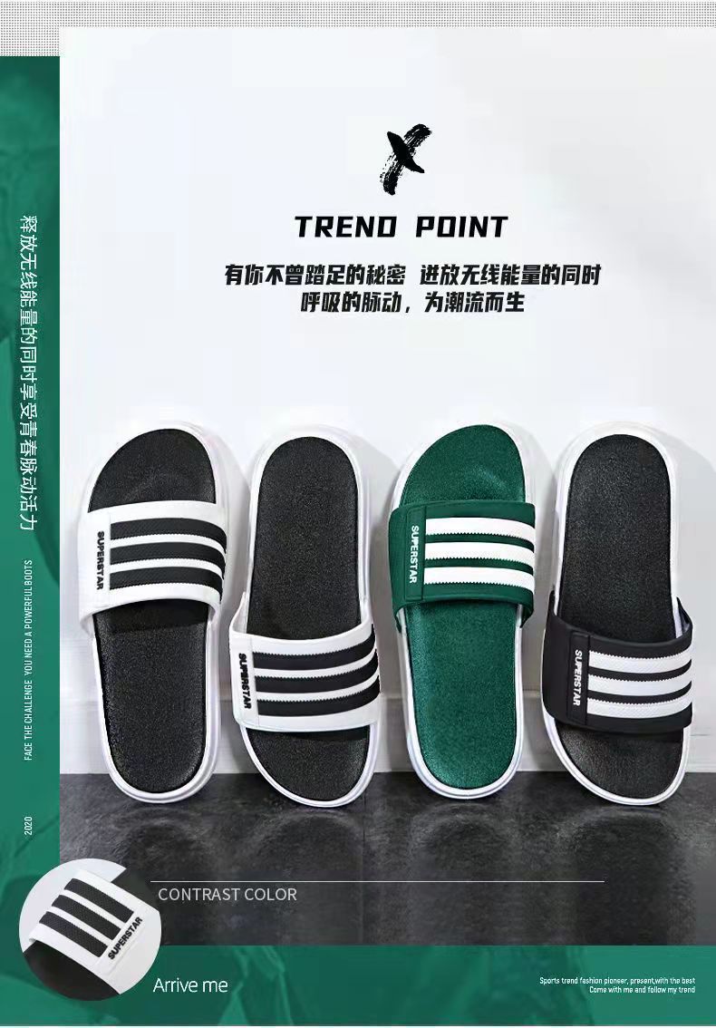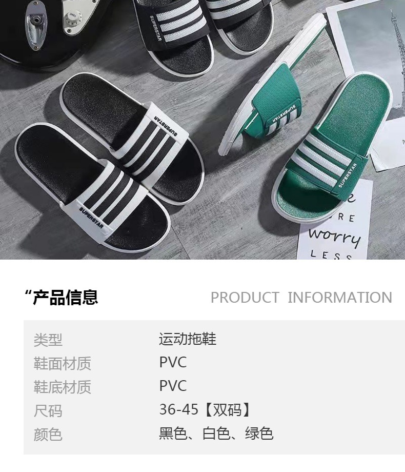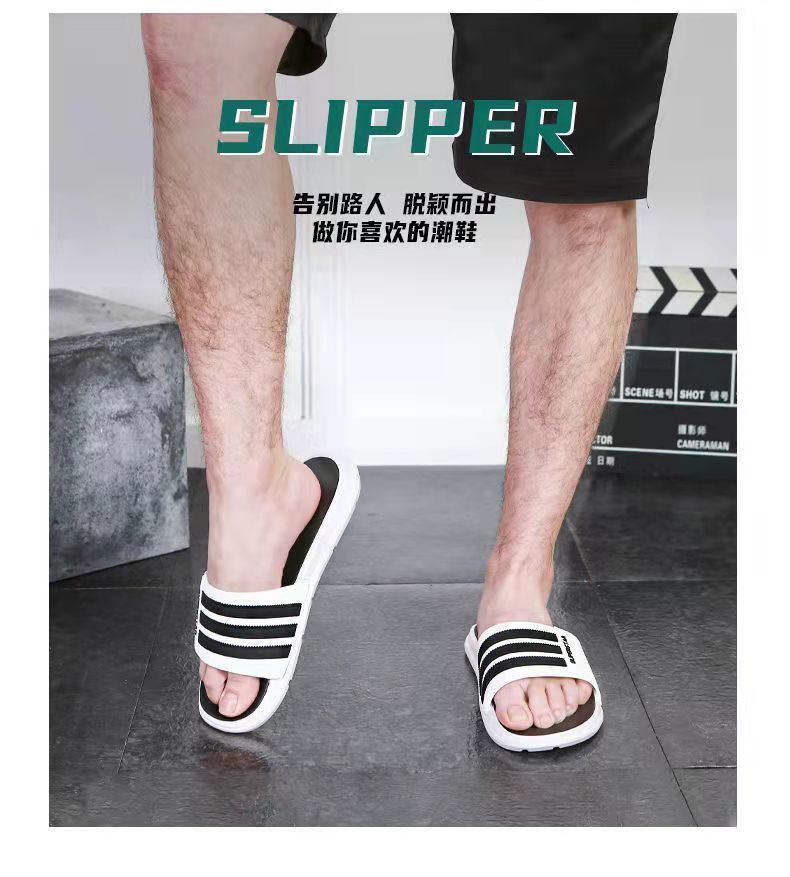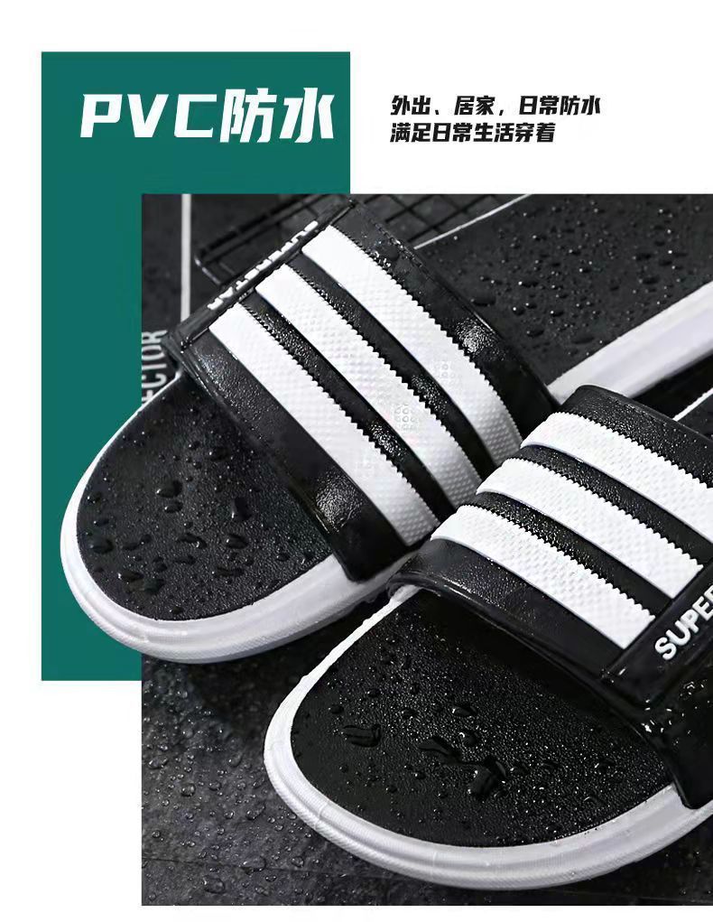 平底拖鞋男女款夏外穿防滑三条杠运动潮流室内PVC一字沙滩男拖鞋