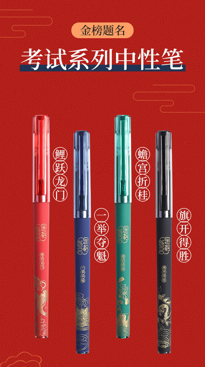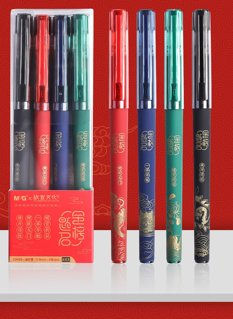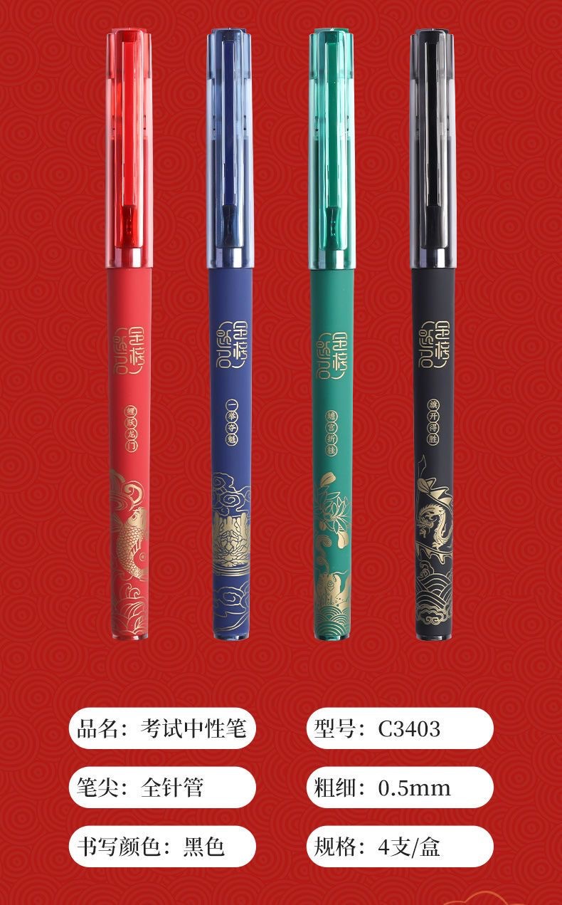 晨光C3403故宫文化金榜题名考试中性笔0.5针管头学生用碳素黑笔