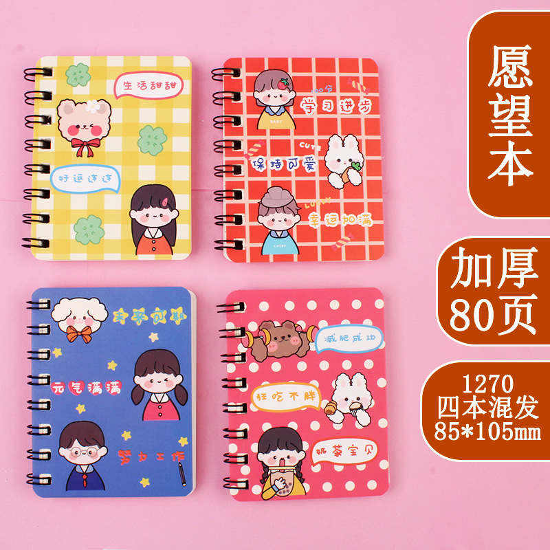 卡通创意侧翻线圈本 小学生便携口袋记事本迷你笔记本 A7本子厂家