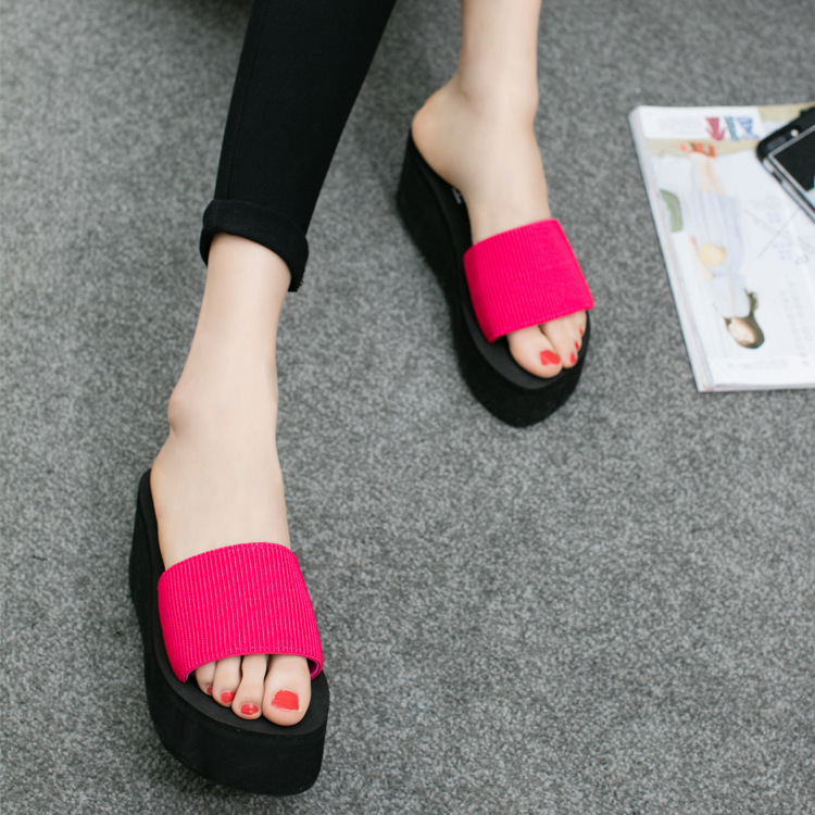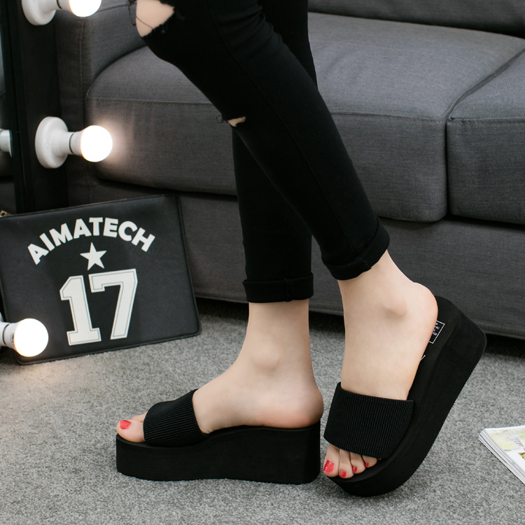 2017新款夏季防滑一字拖时尚外穿沙滩鞋高跟防滑女式凉拖拖鞋批发