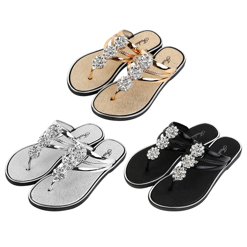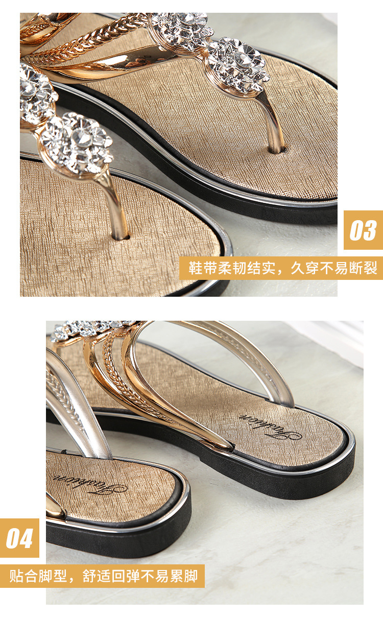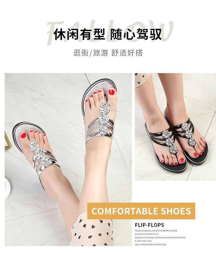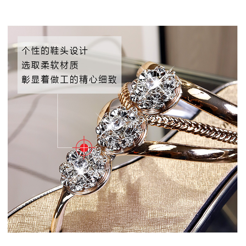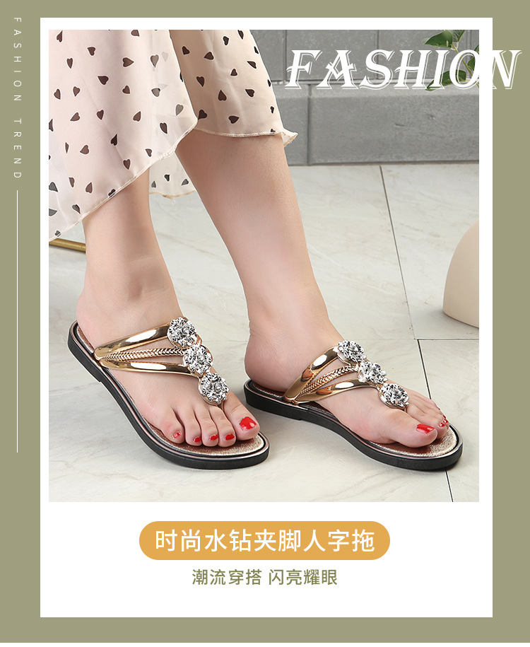 2024女士拖鞋夏季凉拖新款平底银色女鞋带钻拖鞋女大码外贸人字拖