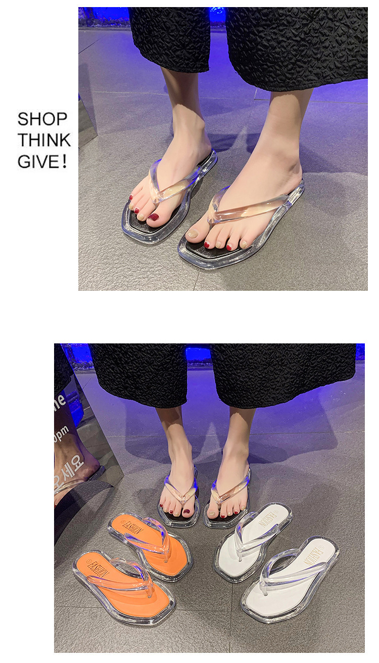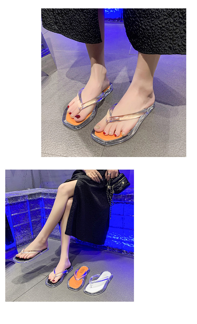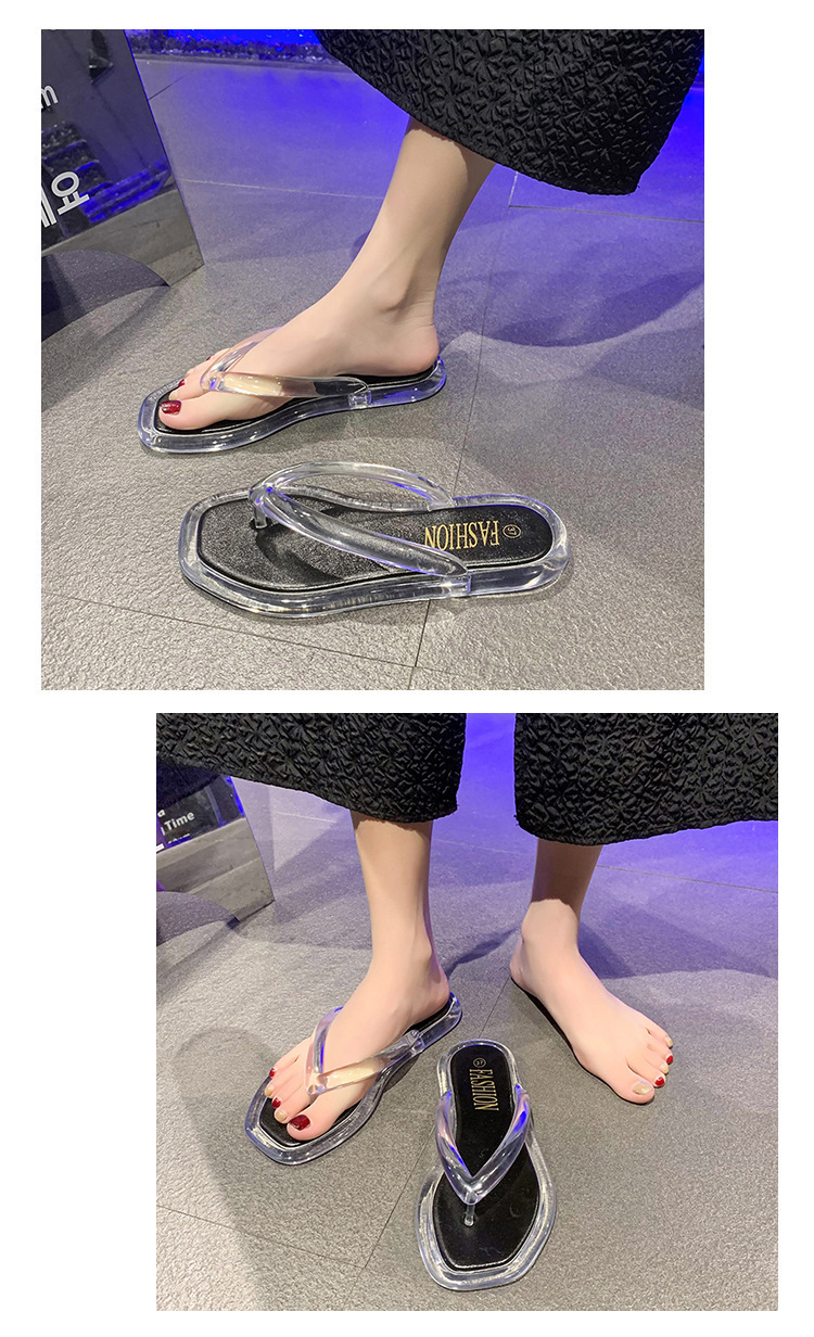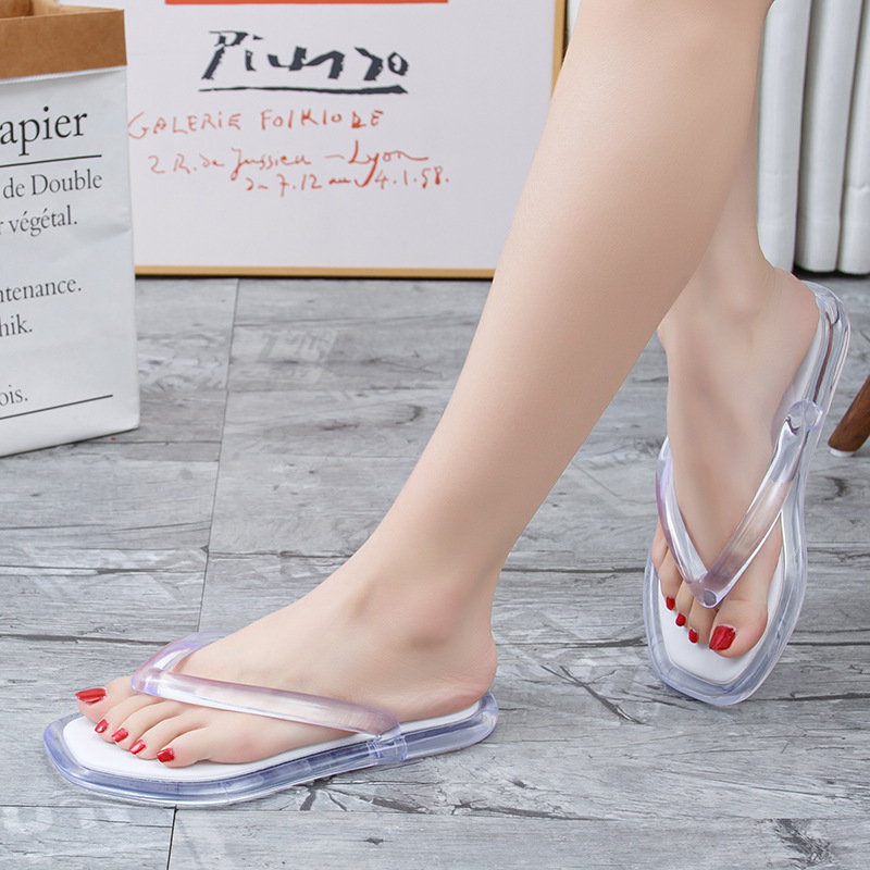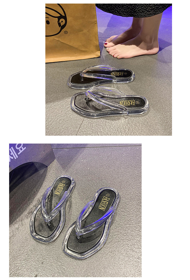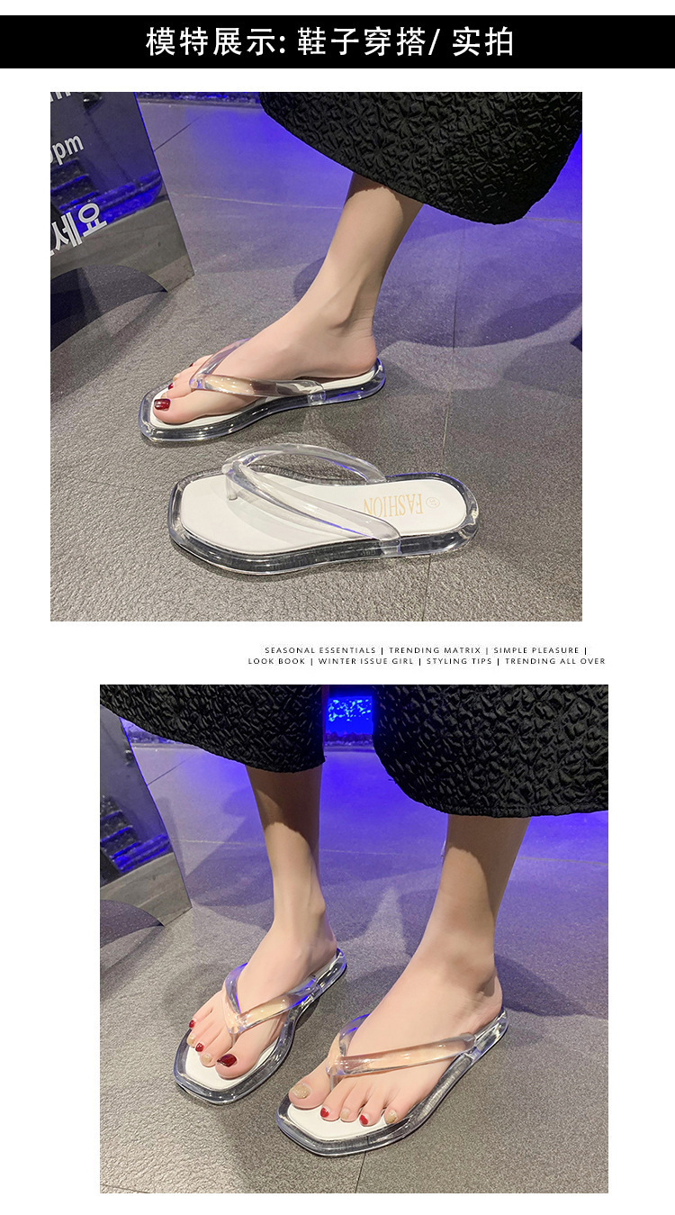 韩版ins风透明水晶人字拖女夏休闲度假外穿夹脚拖鞋平底舒适拖鞋