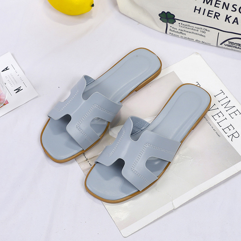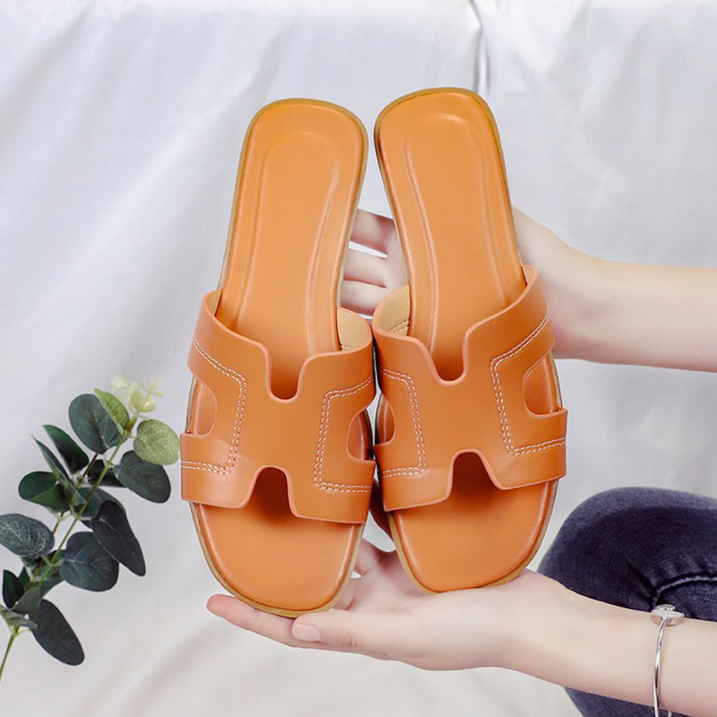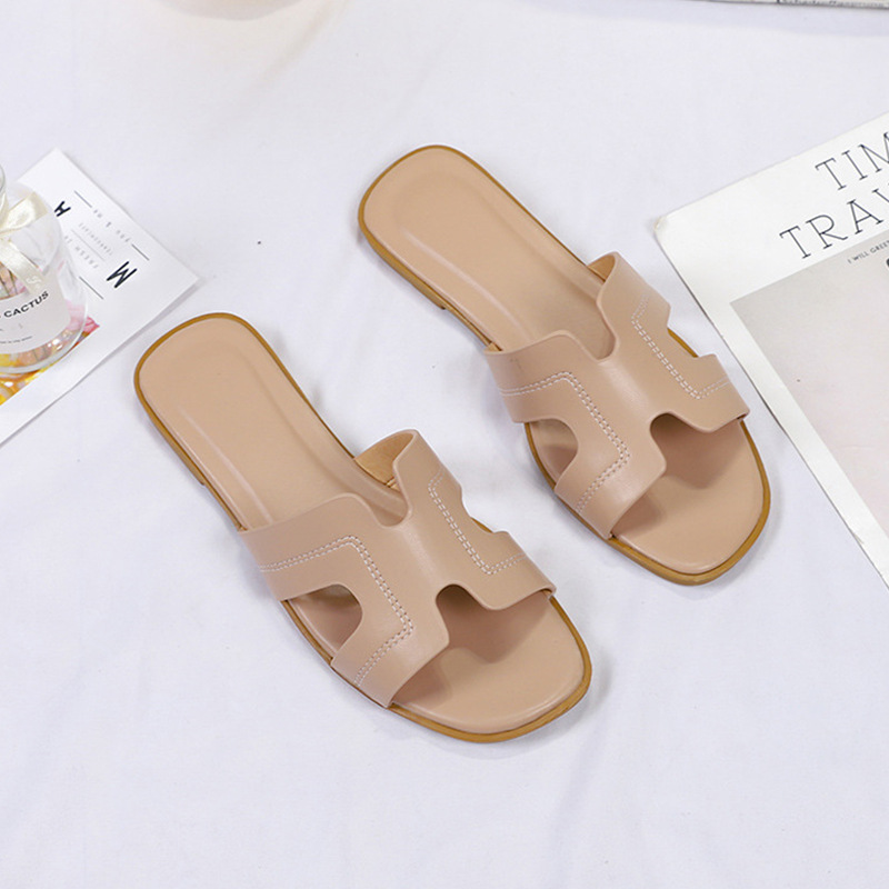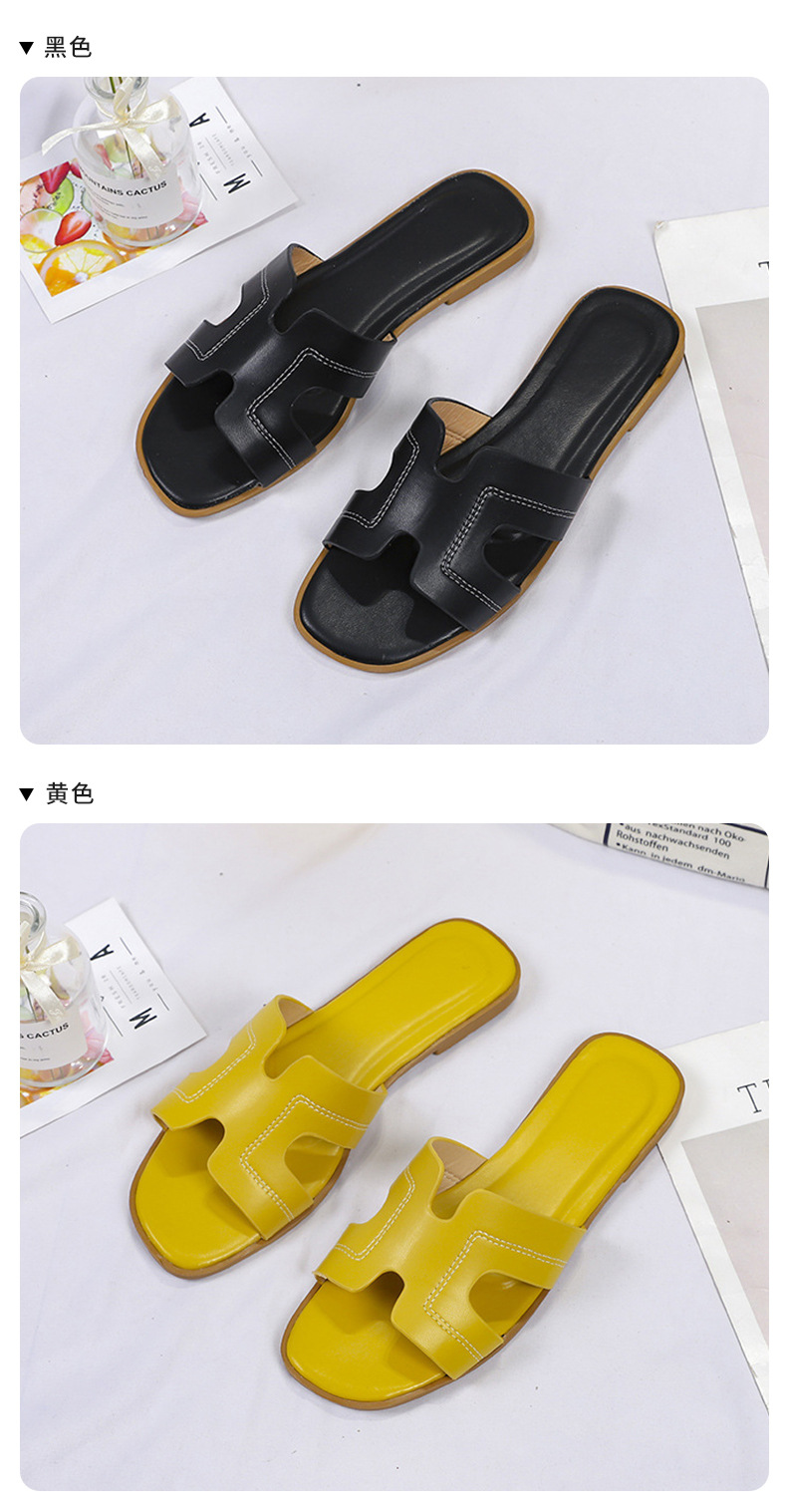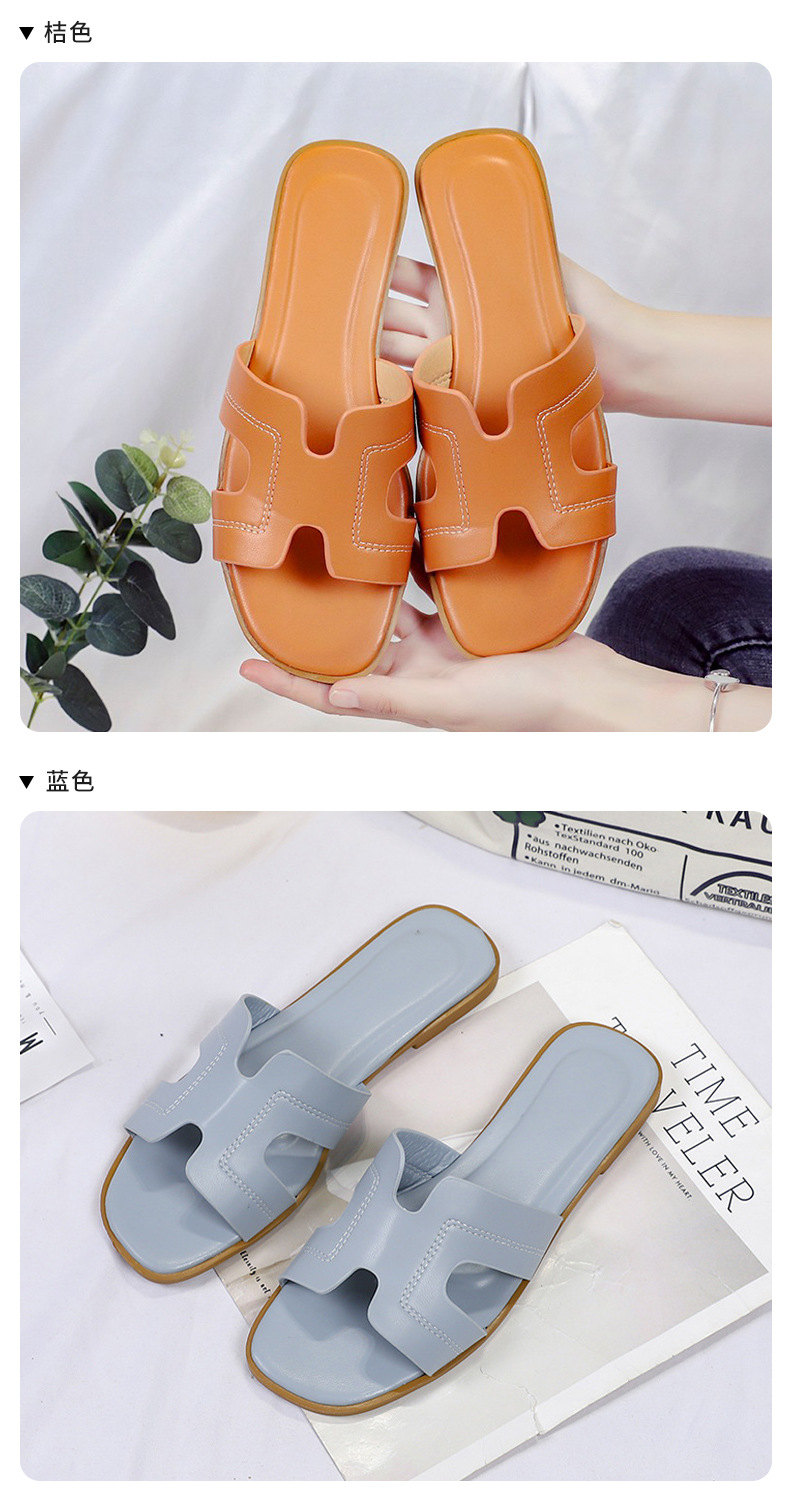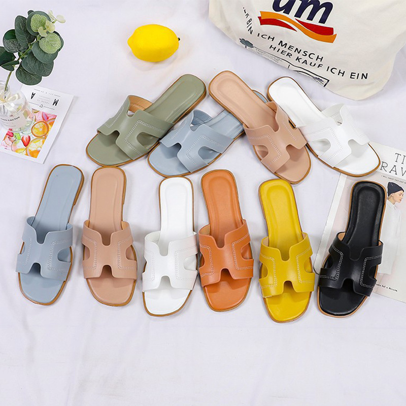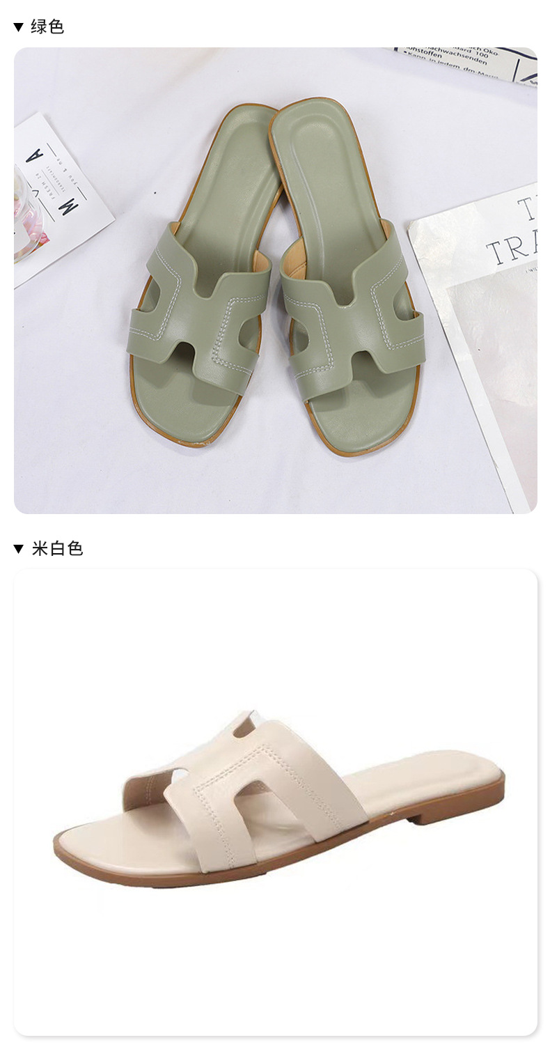 跨境外贸热销纯色一字拖鞋女2024夏季外穿ins沙滩防滑大码凉拖鞋
