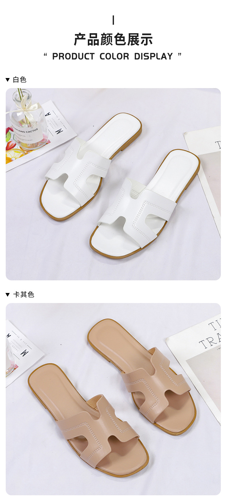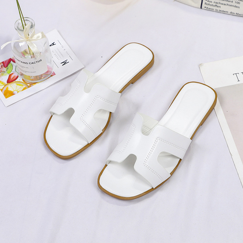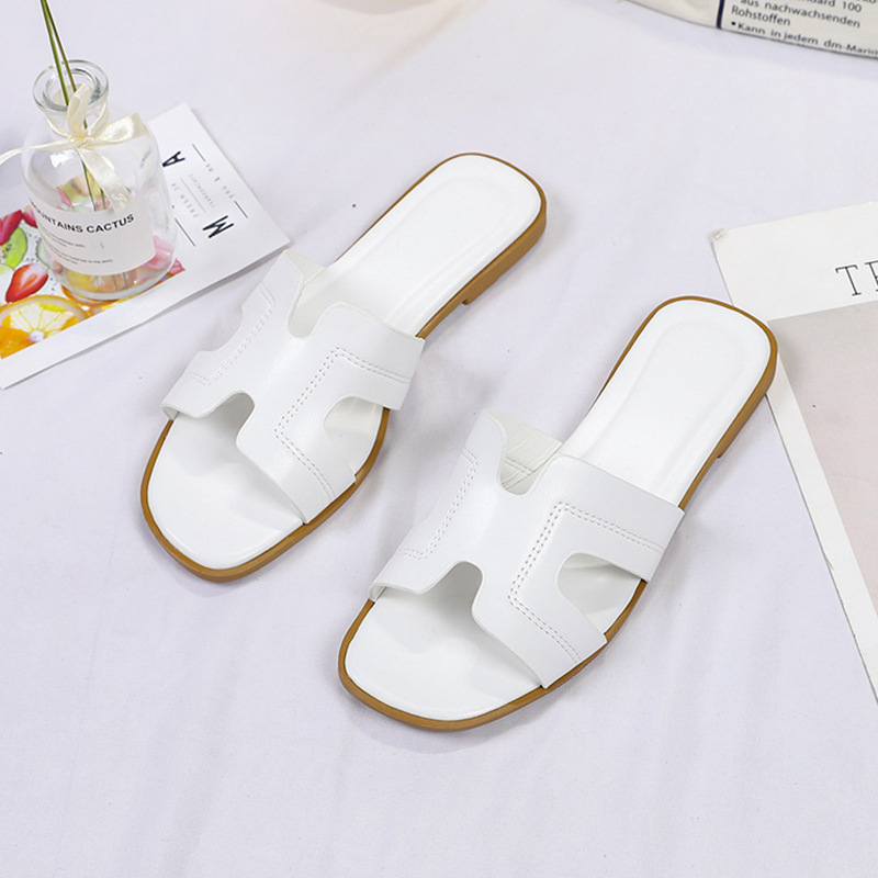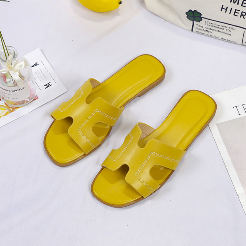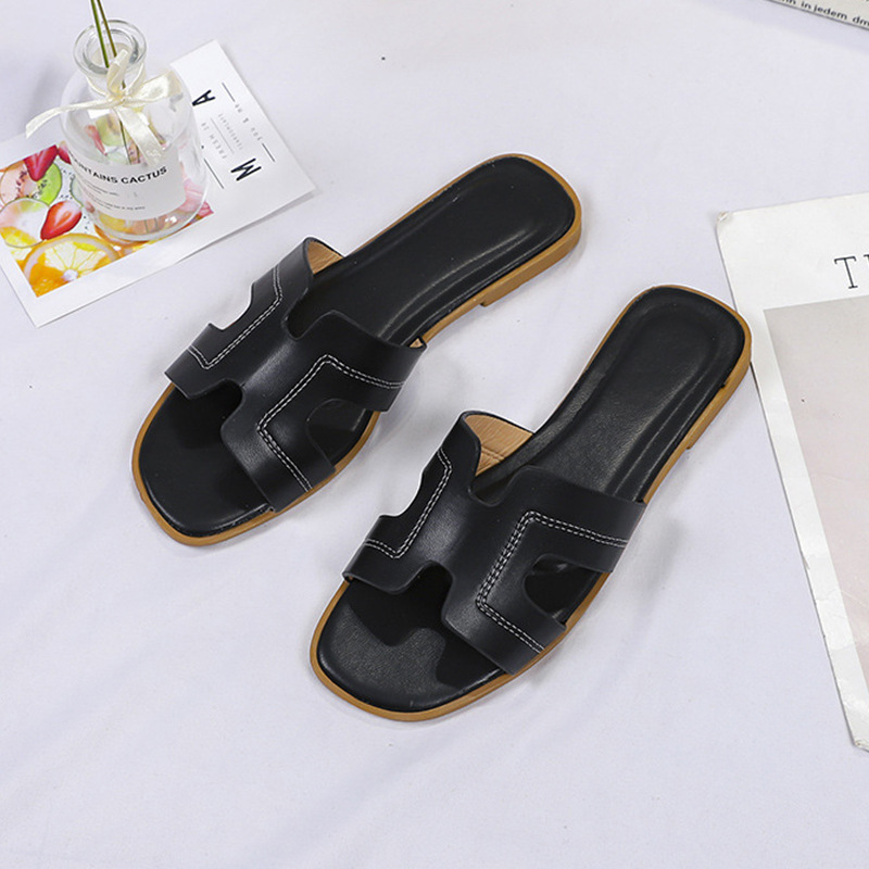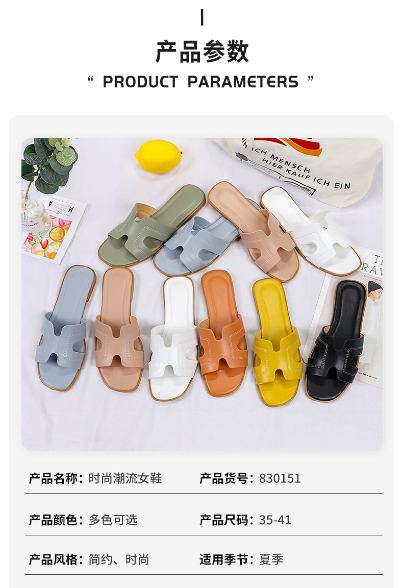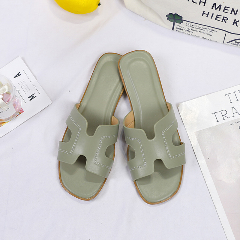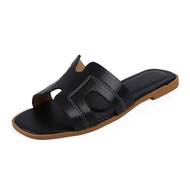 跨境外贸热销纯色一字拖鞋女2024夏季外穿ins沙滩防滑大码凉拖鞋