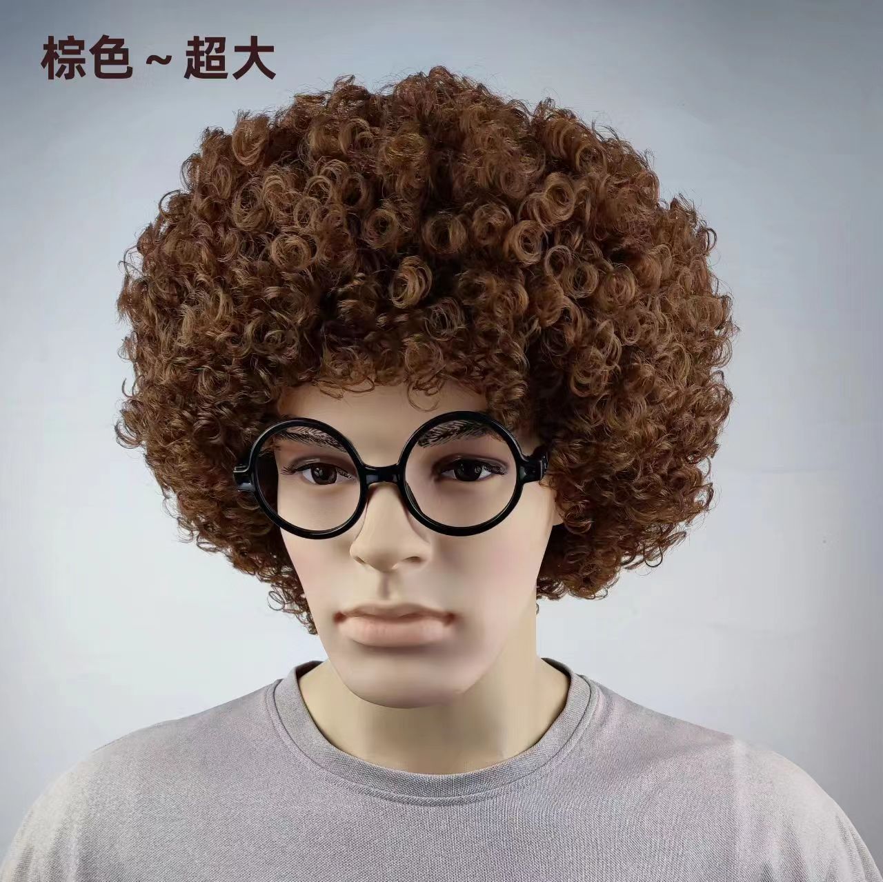 假头套圆卷发道具超大加大号头套大号假发爆炸头假发球迷发