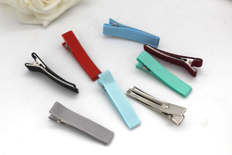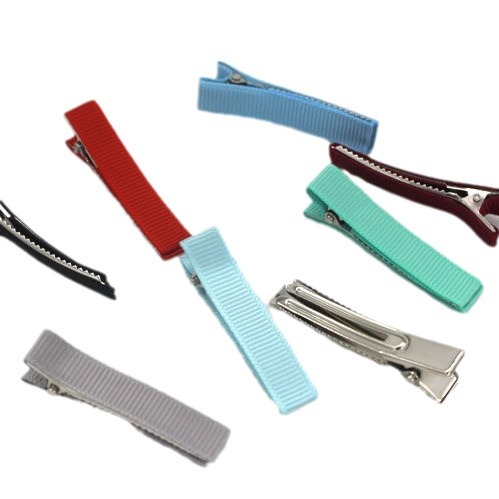 DIY儿童发饰配件 5.0cm双叉鸭嘴夹 罗纹全包布发夹