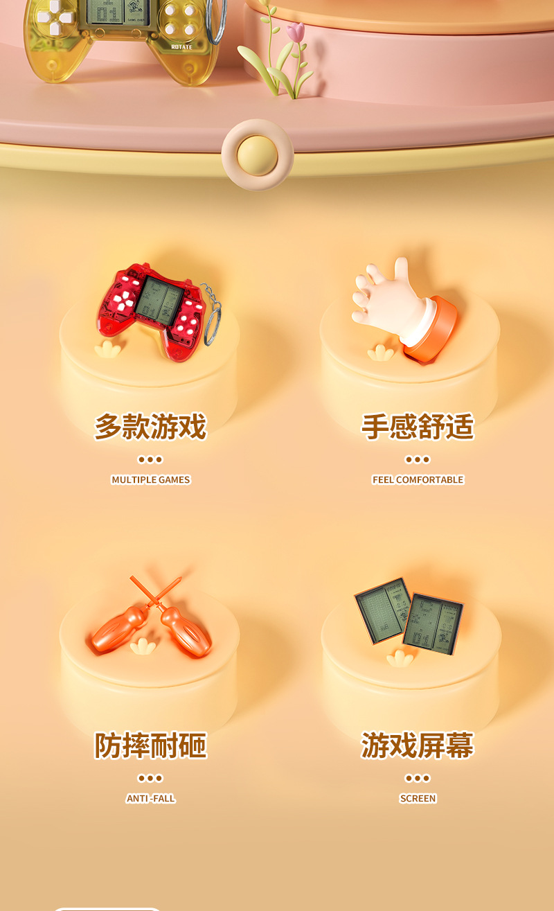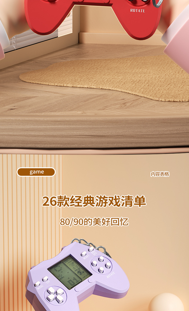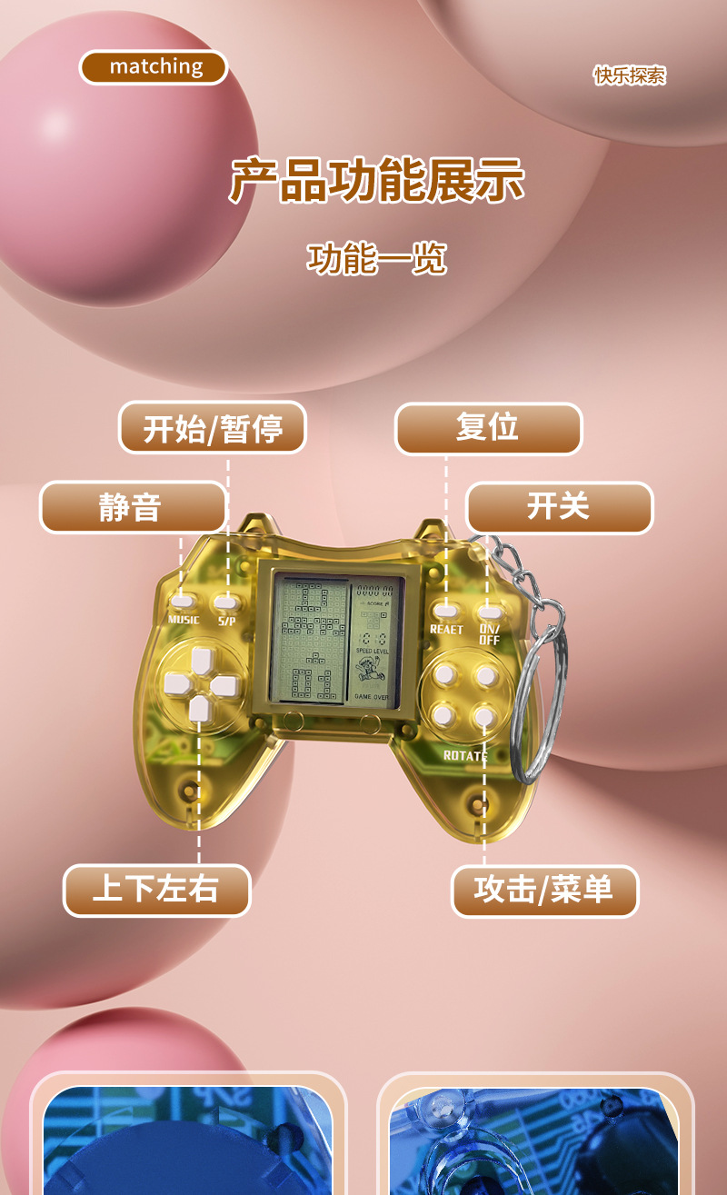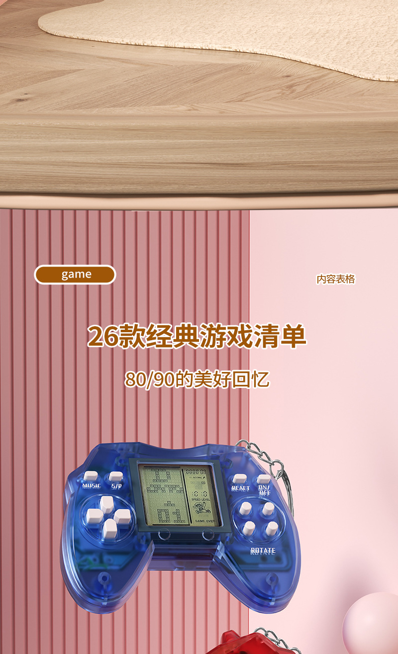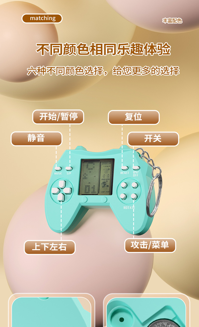 跨境迷你可爱游戏机怀旧手柄俄罗斯方块游戏机儿童玩具礼品钥匙扣