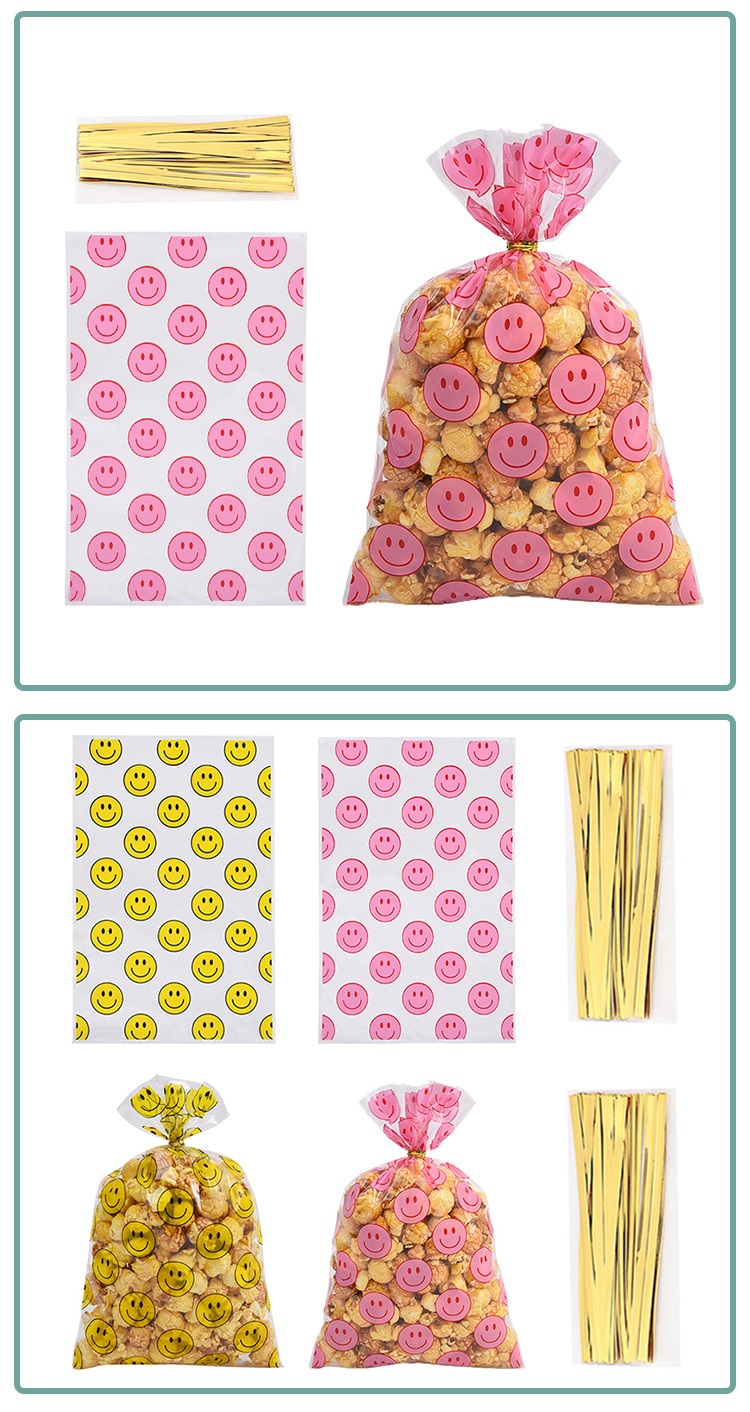 现货新款笑脸糖果袋OPP平口袋透明塑料包装袋糖果饼干包装袋厂家