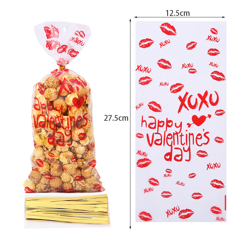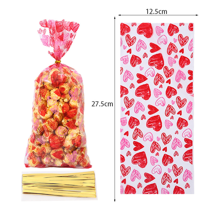 跨境 新款OPP平口袋情人节糖果包装袋爱心饼干礼品袋玻璃纸包装袋