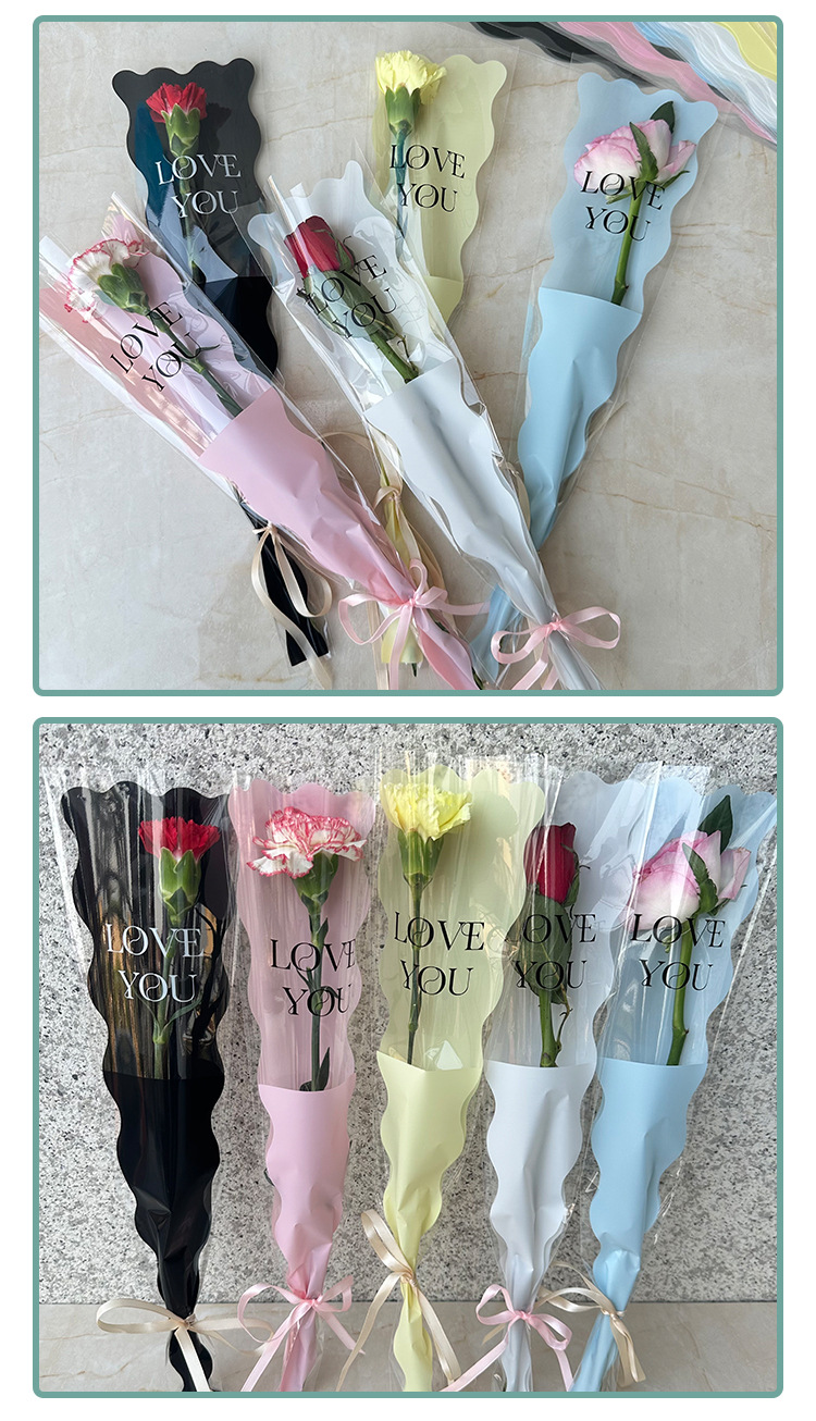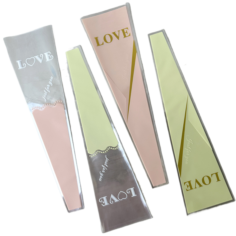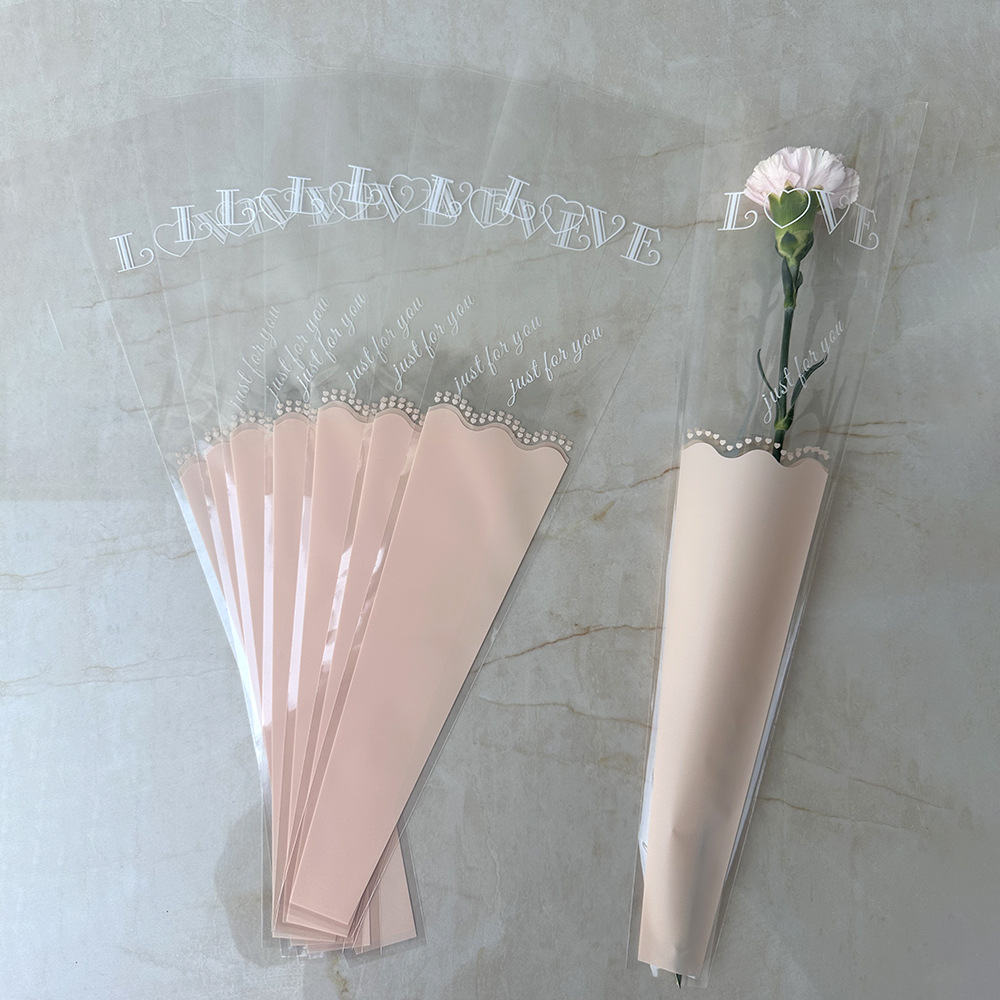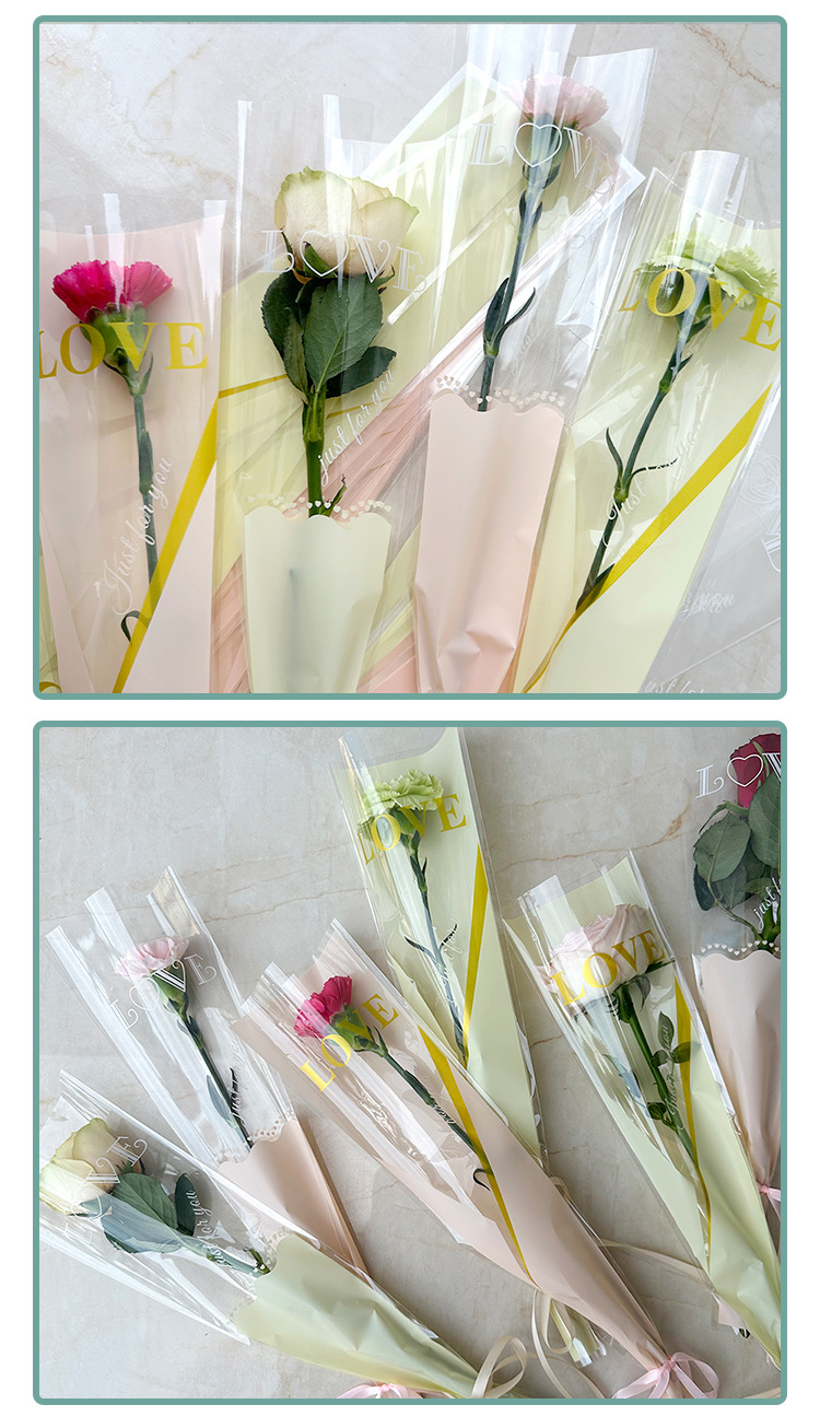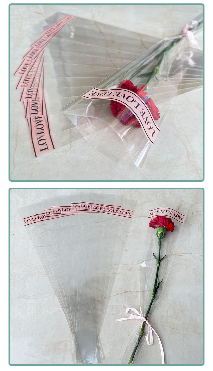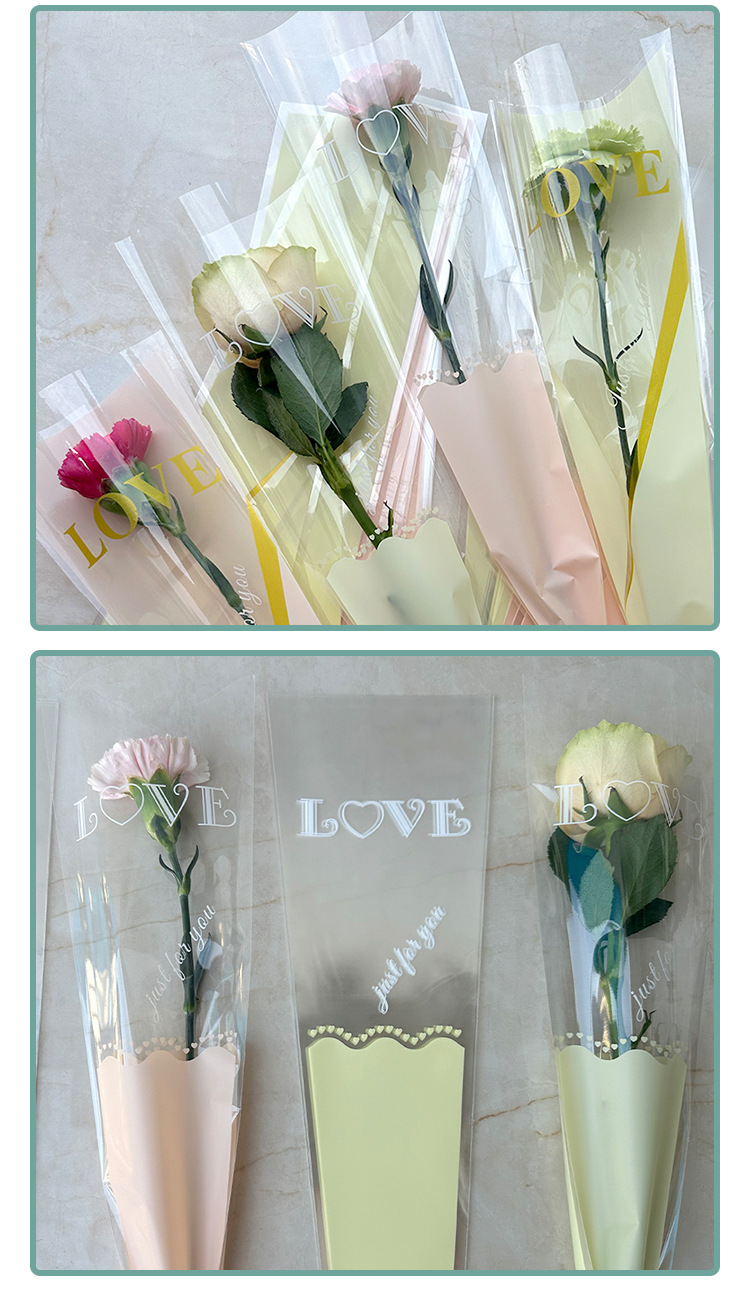 新款LOVE鲜花单支袋母亲节花束袋520玫瑰花包装袋opp梯形袋子现货