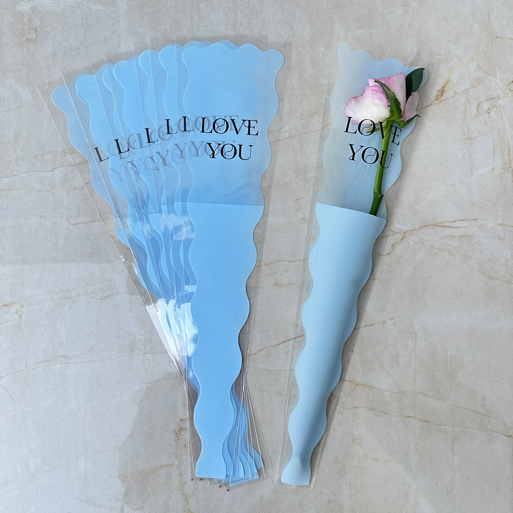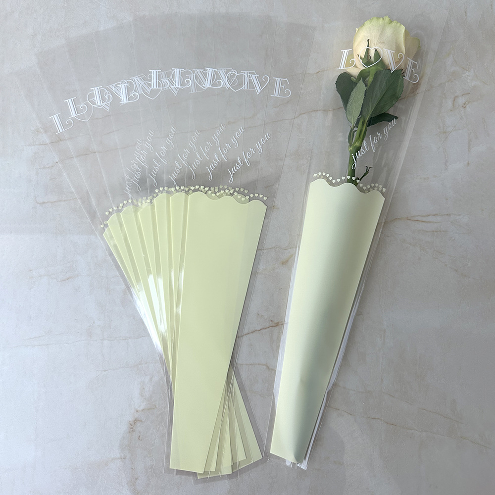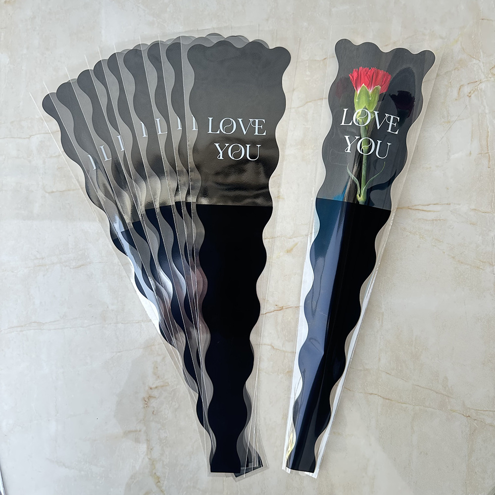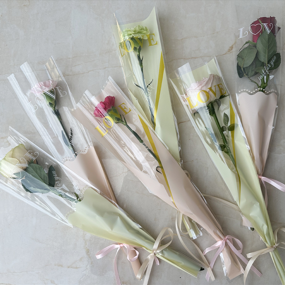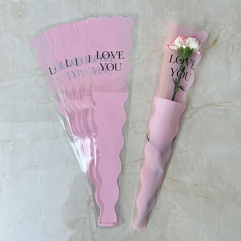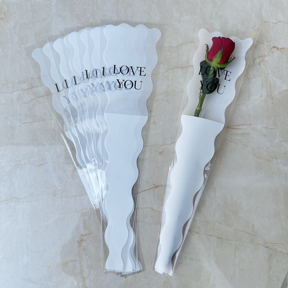新款LOVE鲜花单支袋母亲节花束袋520玫瑰花包装袋opp梯形袋子现货