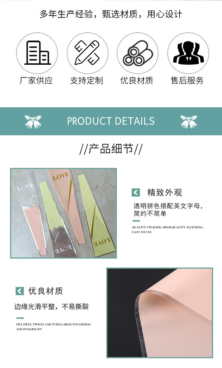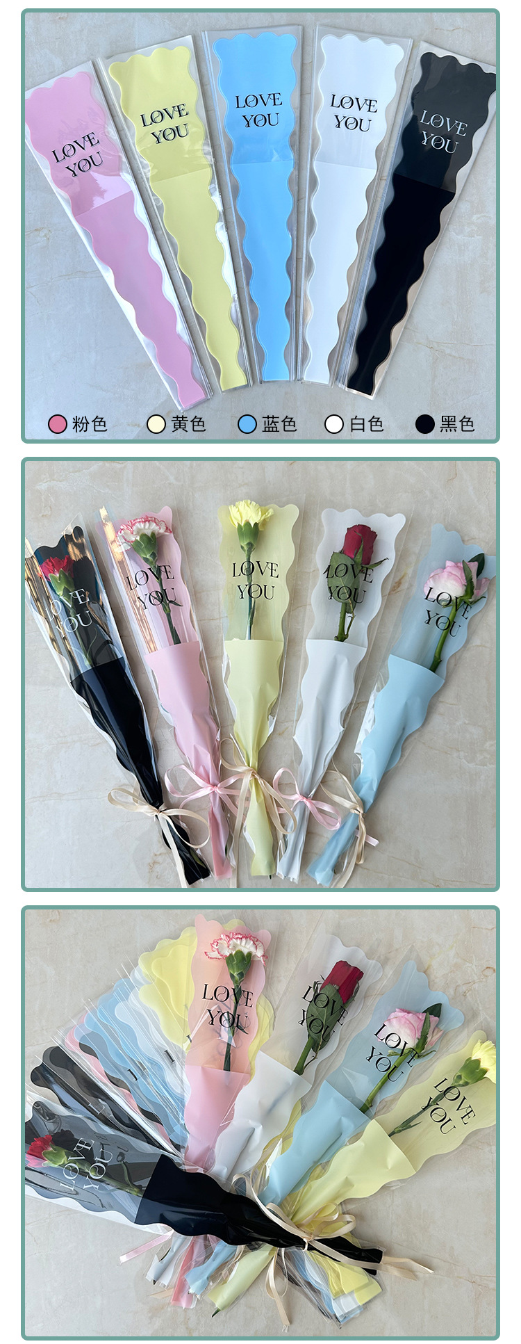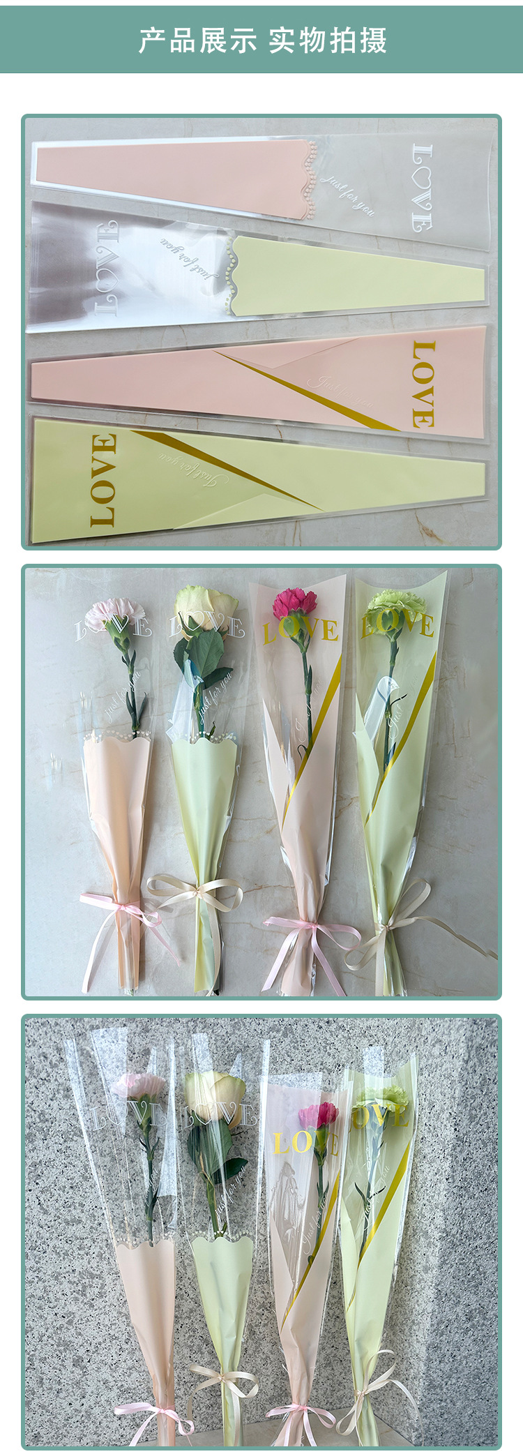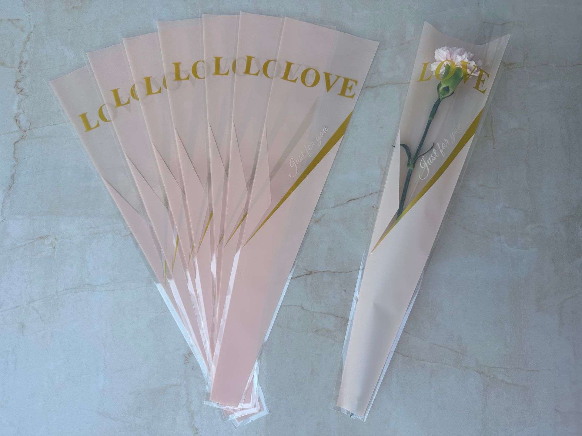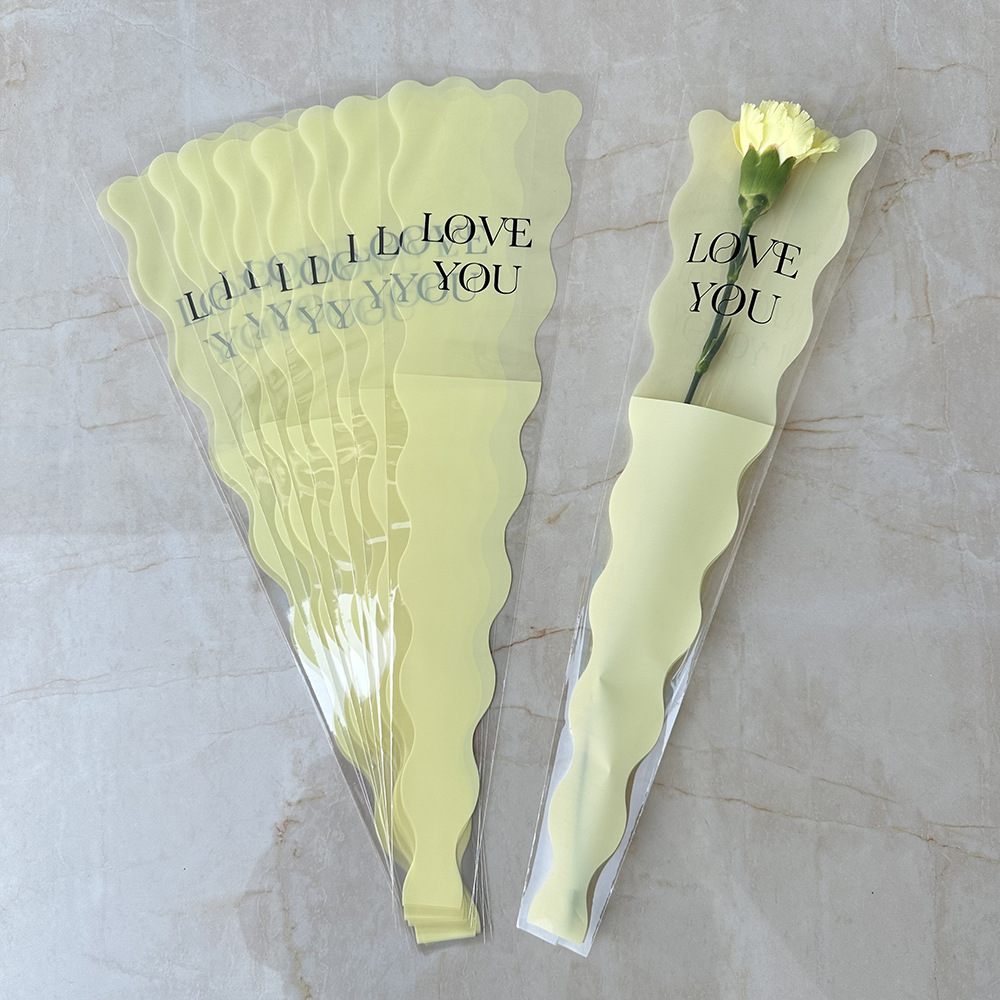 新款LOVE鲜花单支袋母亲节花束袋520玫瑰花包装袋opp梯形袋子现货
