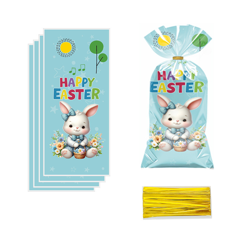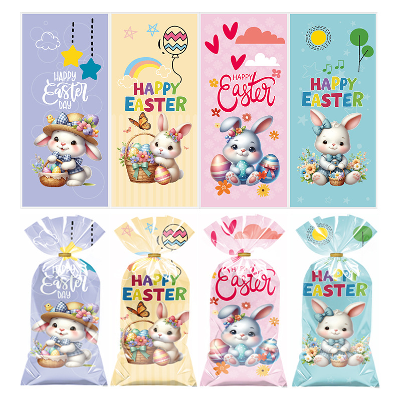 跨境 新款复活节opp平口袋兔子彩蛋图案糖果袋子玻璃纸包装袋批发