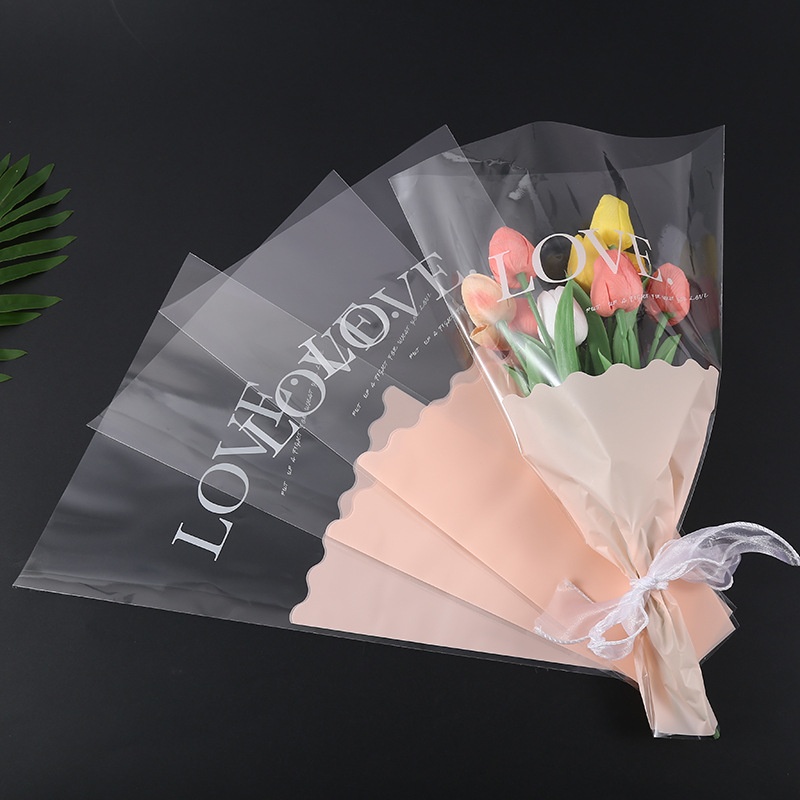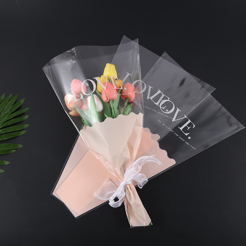 现货批发鲜花包装袋多支鲜花袋子透明防尘opp梯形袋