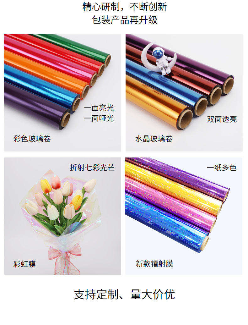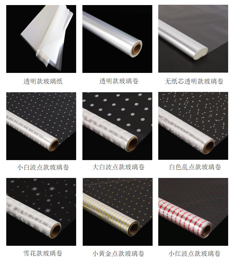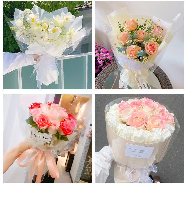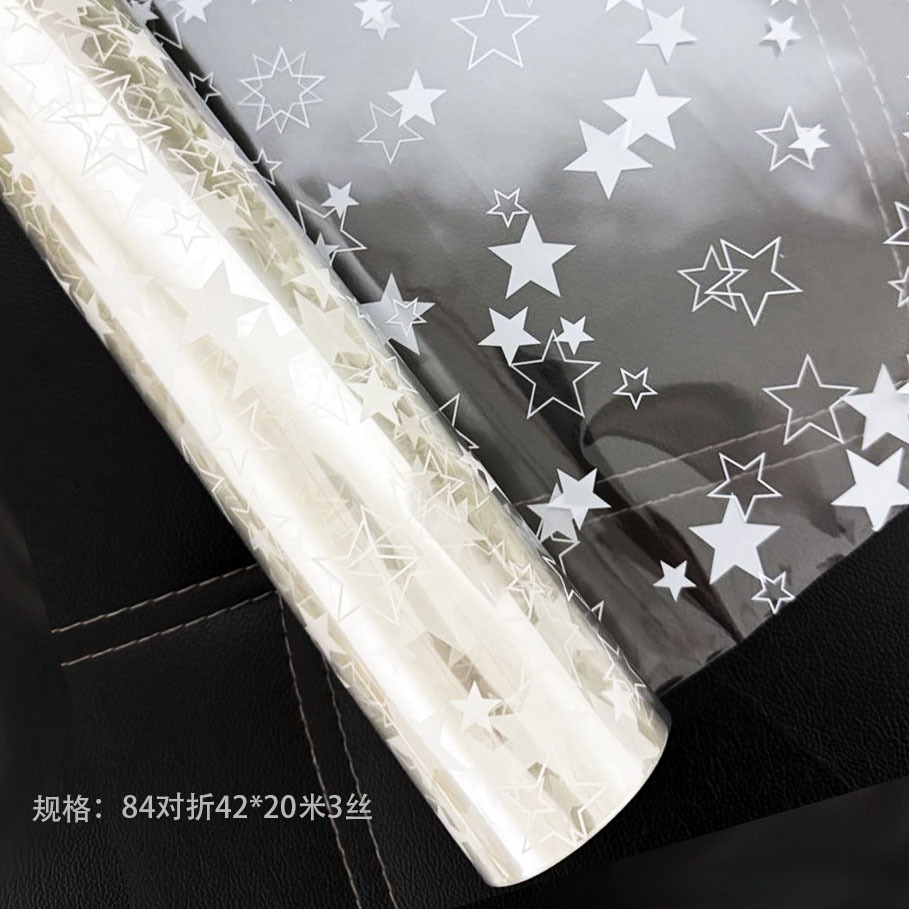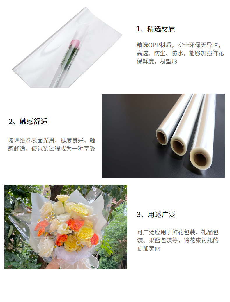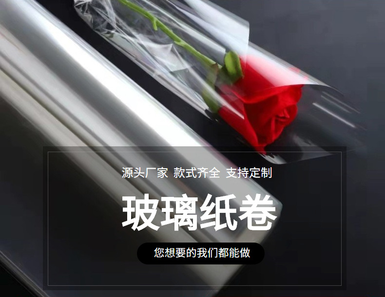 防尘透明包花纸印花艺玻璃纸鲜花包装纸防水塑料纸花店花束玻璃卷