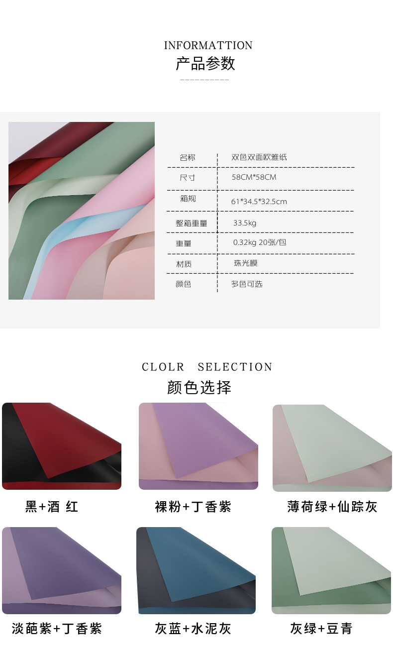 鲜花包装纸双面双色欧雅纸花束包装纸包花纸花店花艺包装材料批发