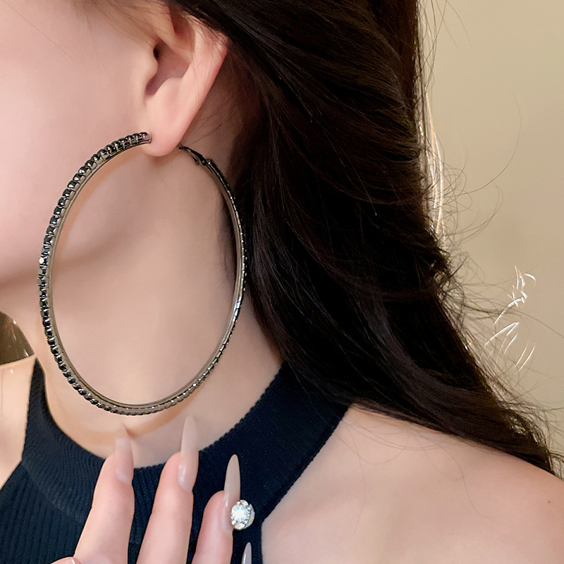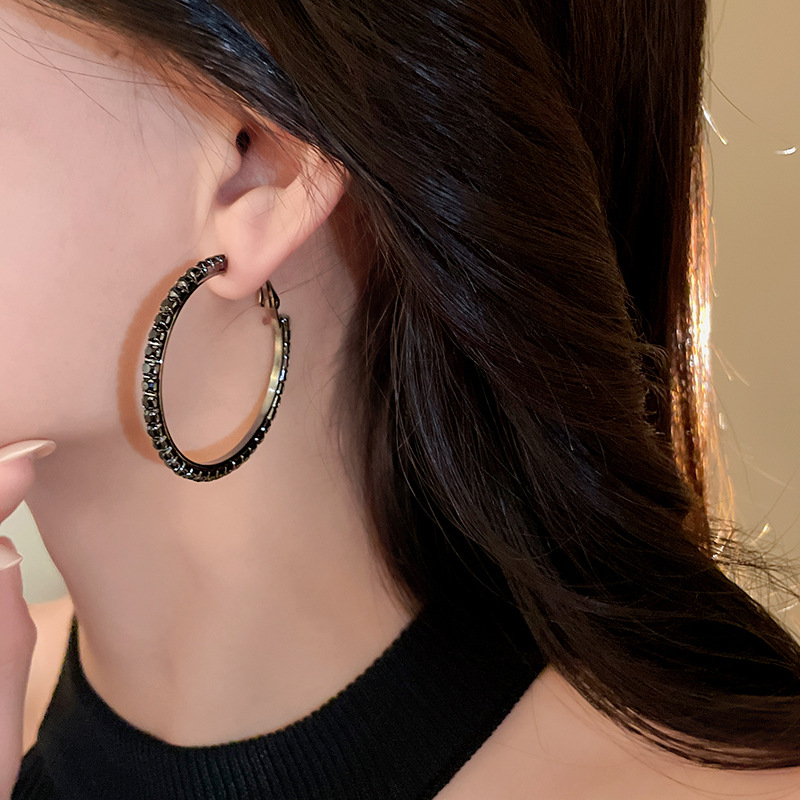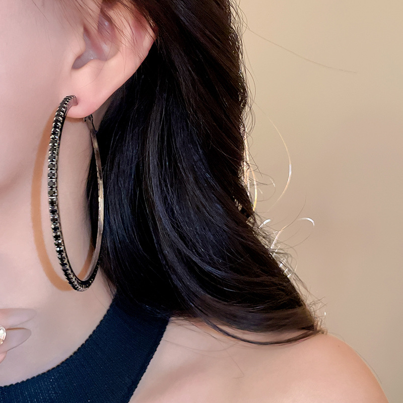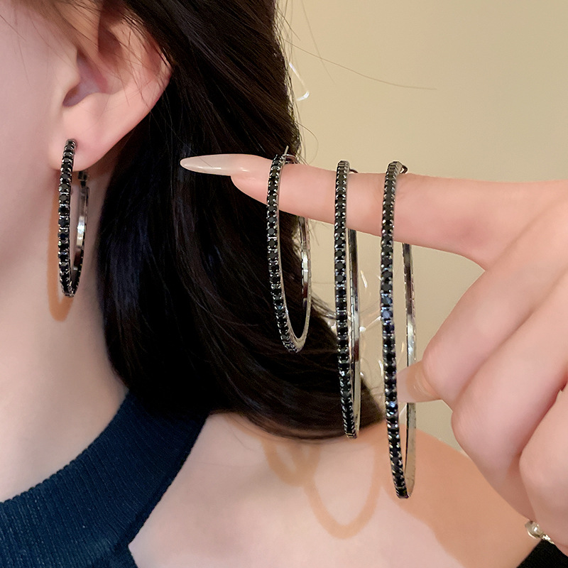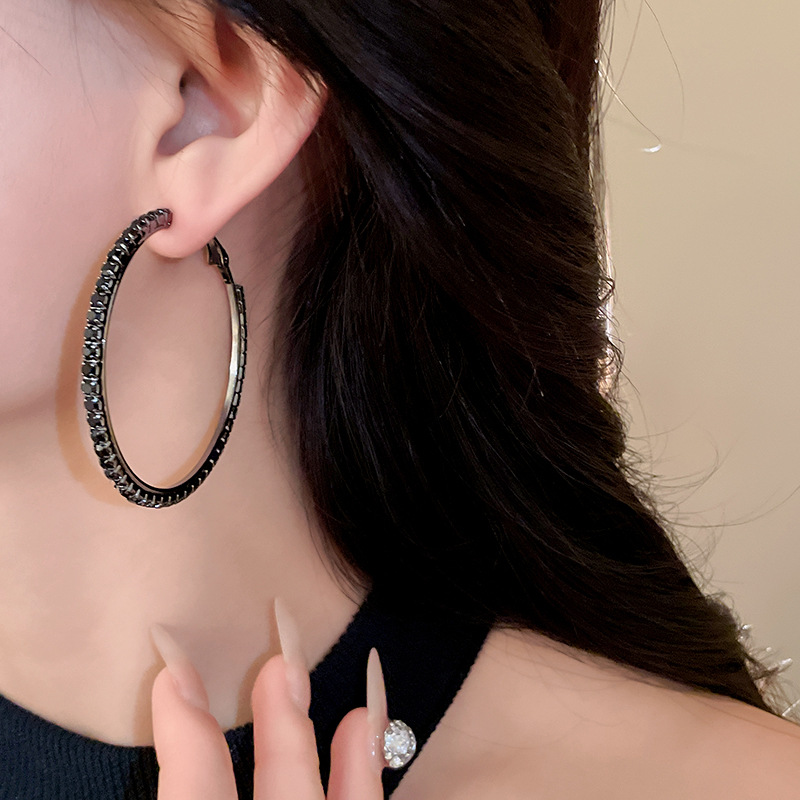 时尚小众设计新款耳饰银针镶钻圆圈耳圈高级感时尚夸张耳环女批发