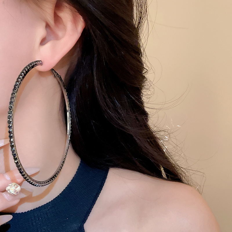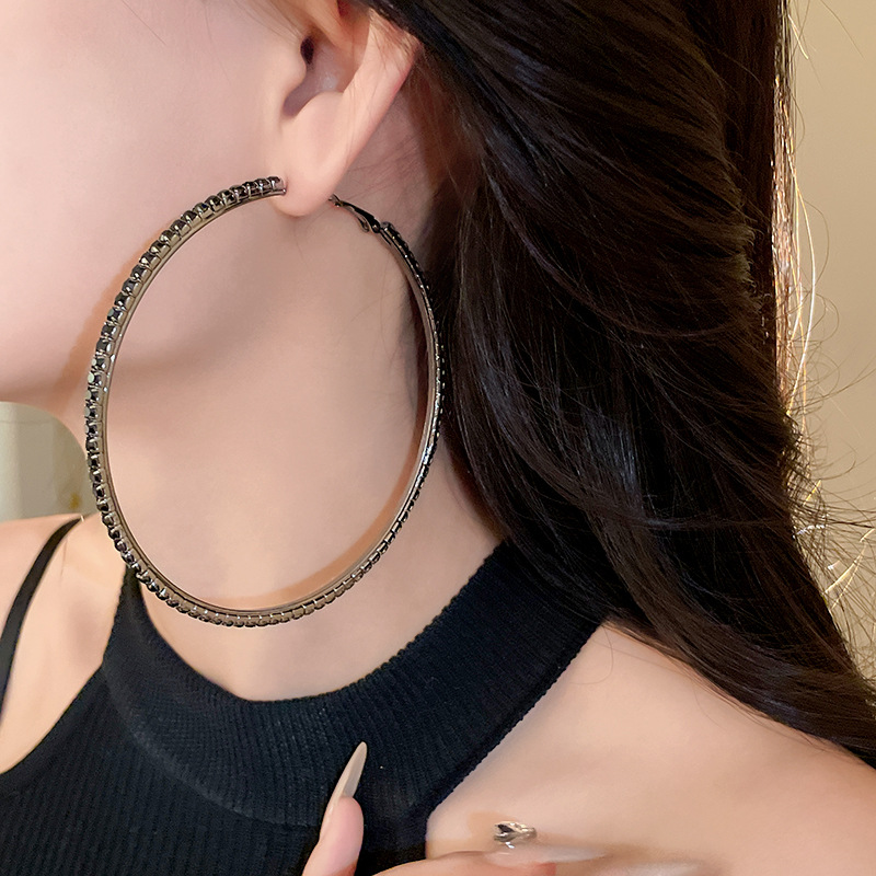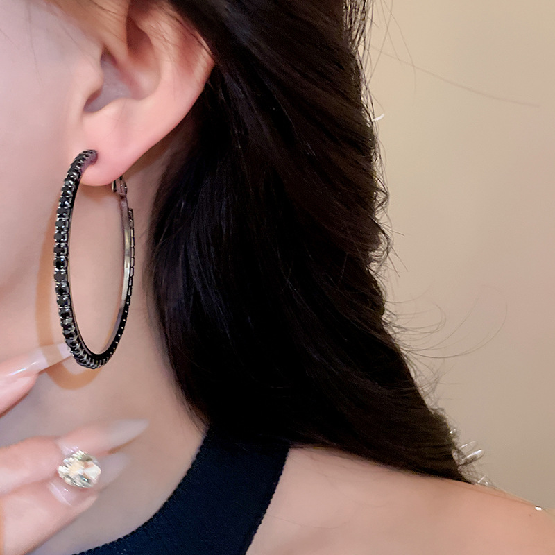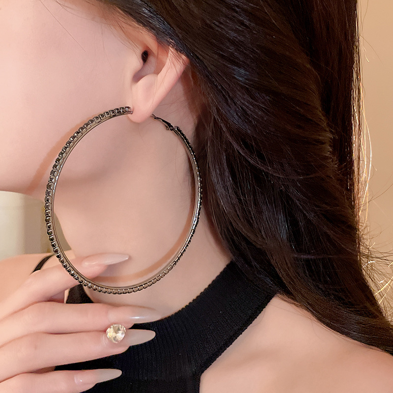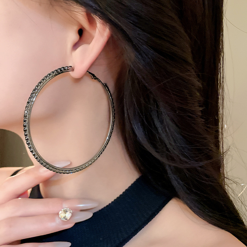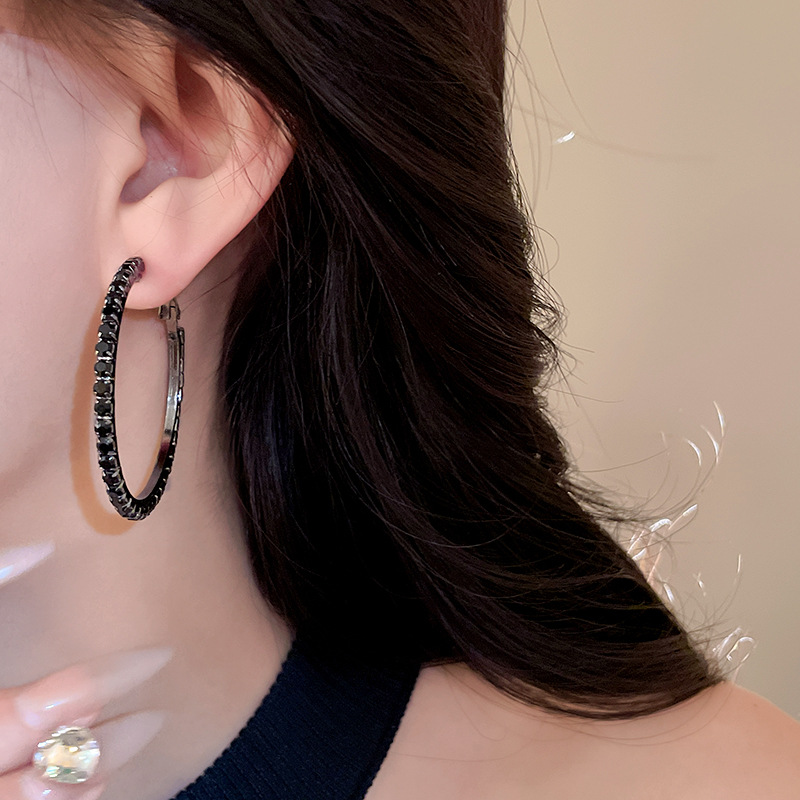 时尚小众设计新款耳饰银针镶钻圆圈耳圈高级感时尚夸张耳环女批发