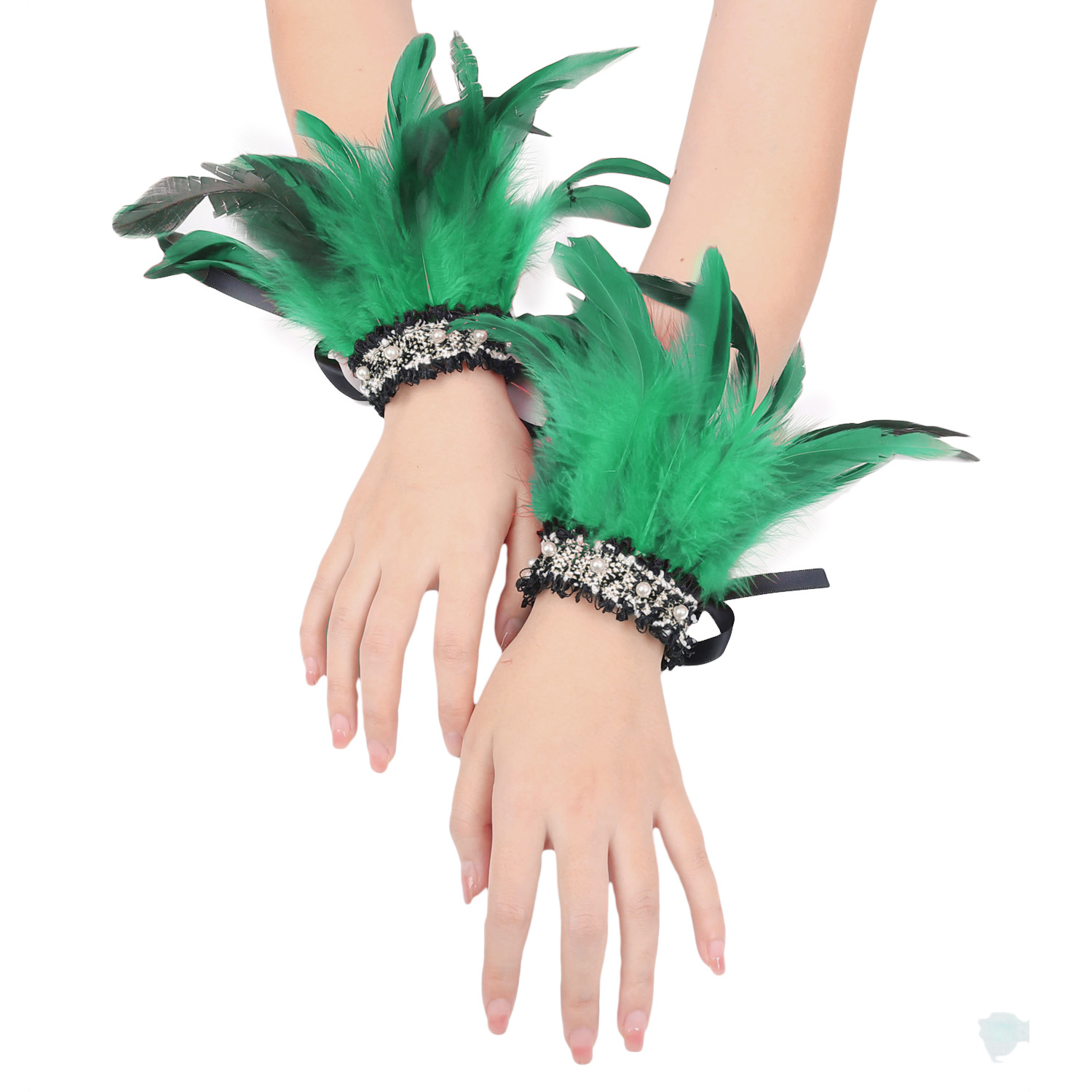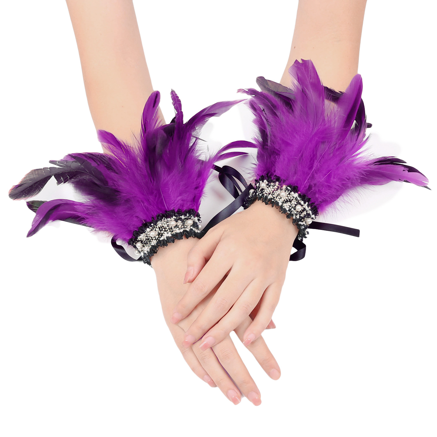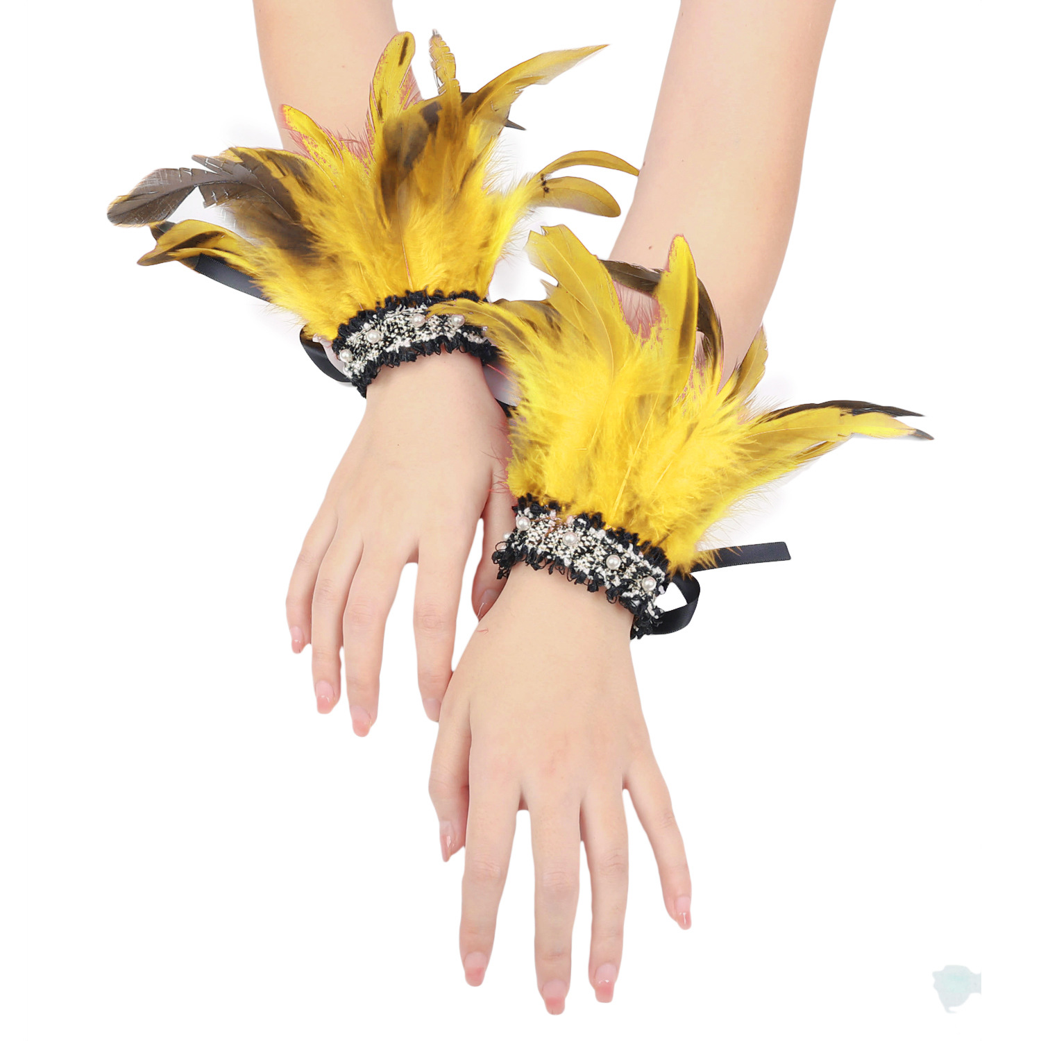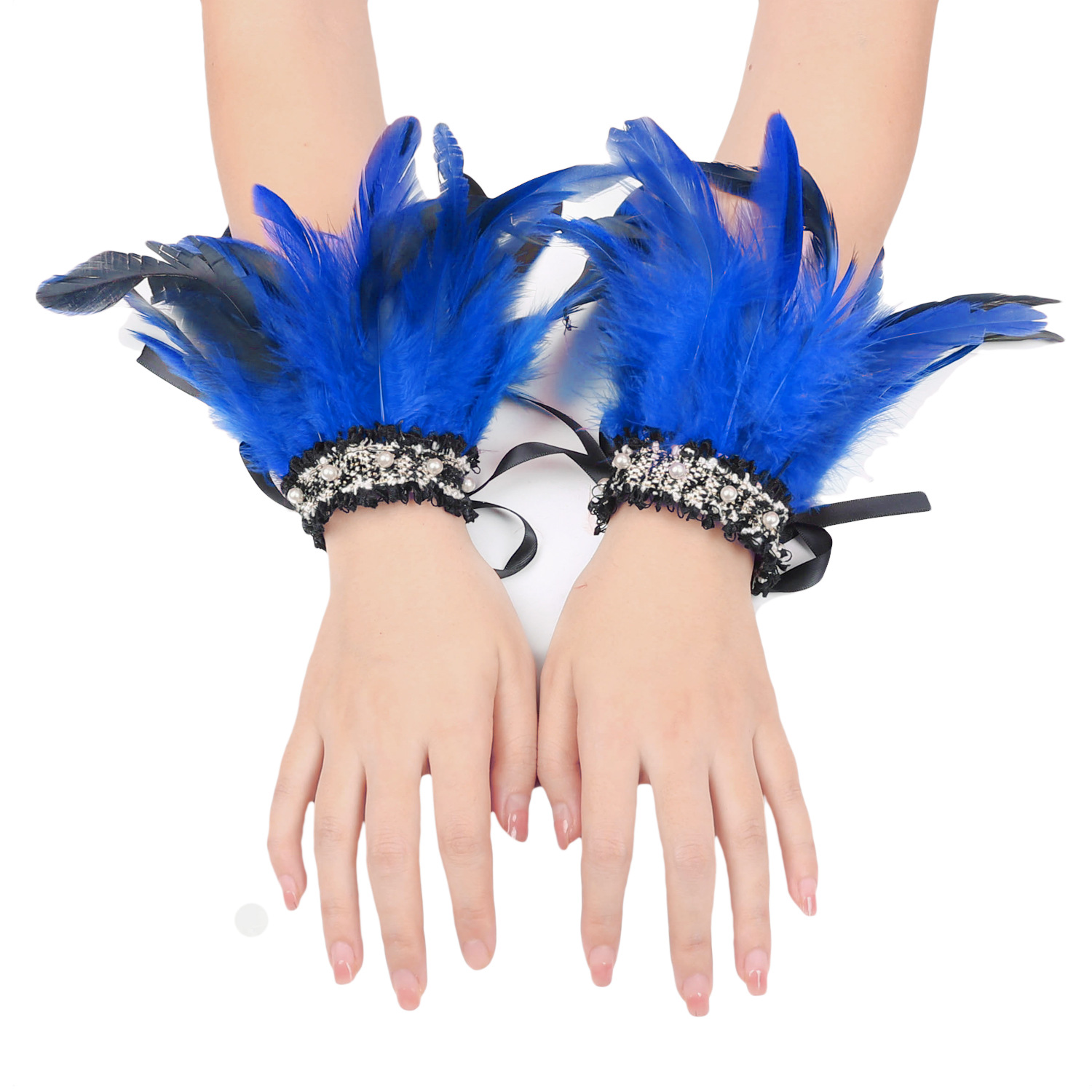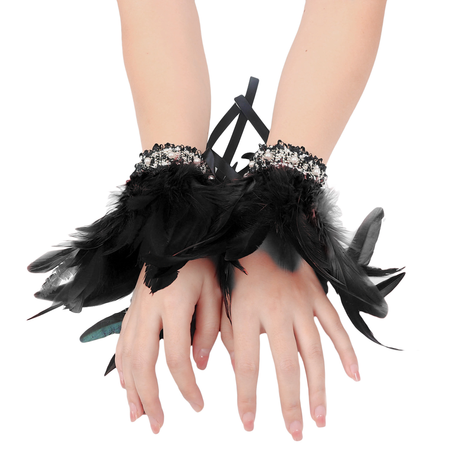 现货 节庆派对舞会羽毛珍珠袖口饰品 欧美风手环袖套化妆舞会配饰
