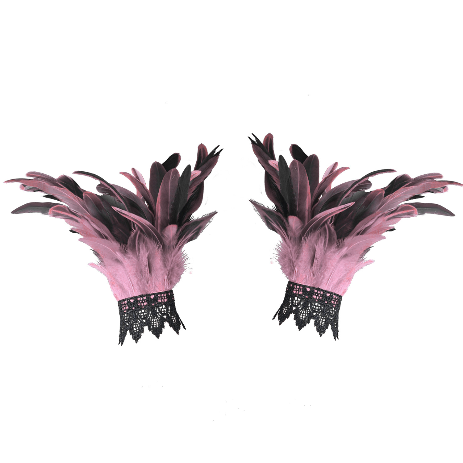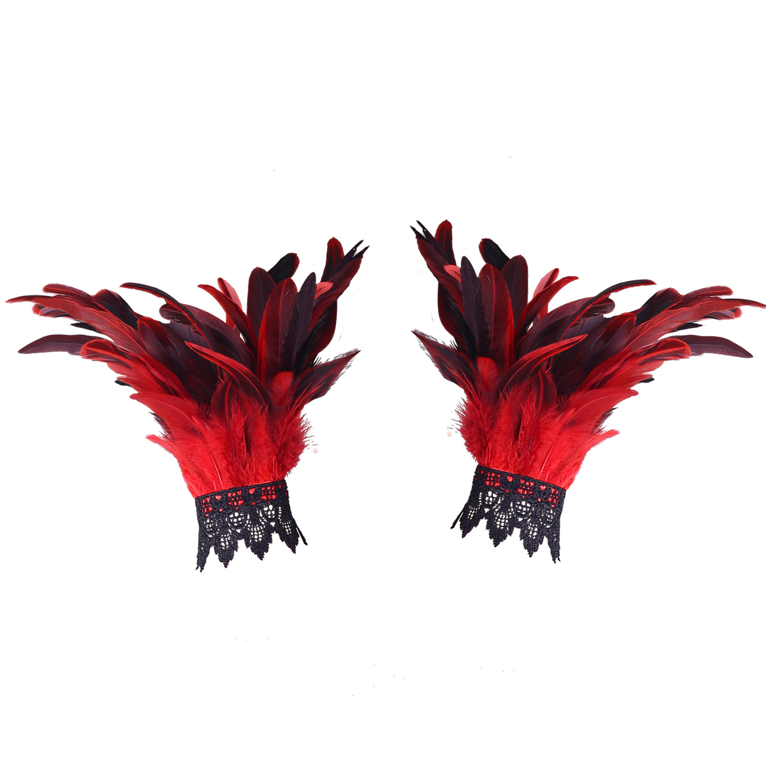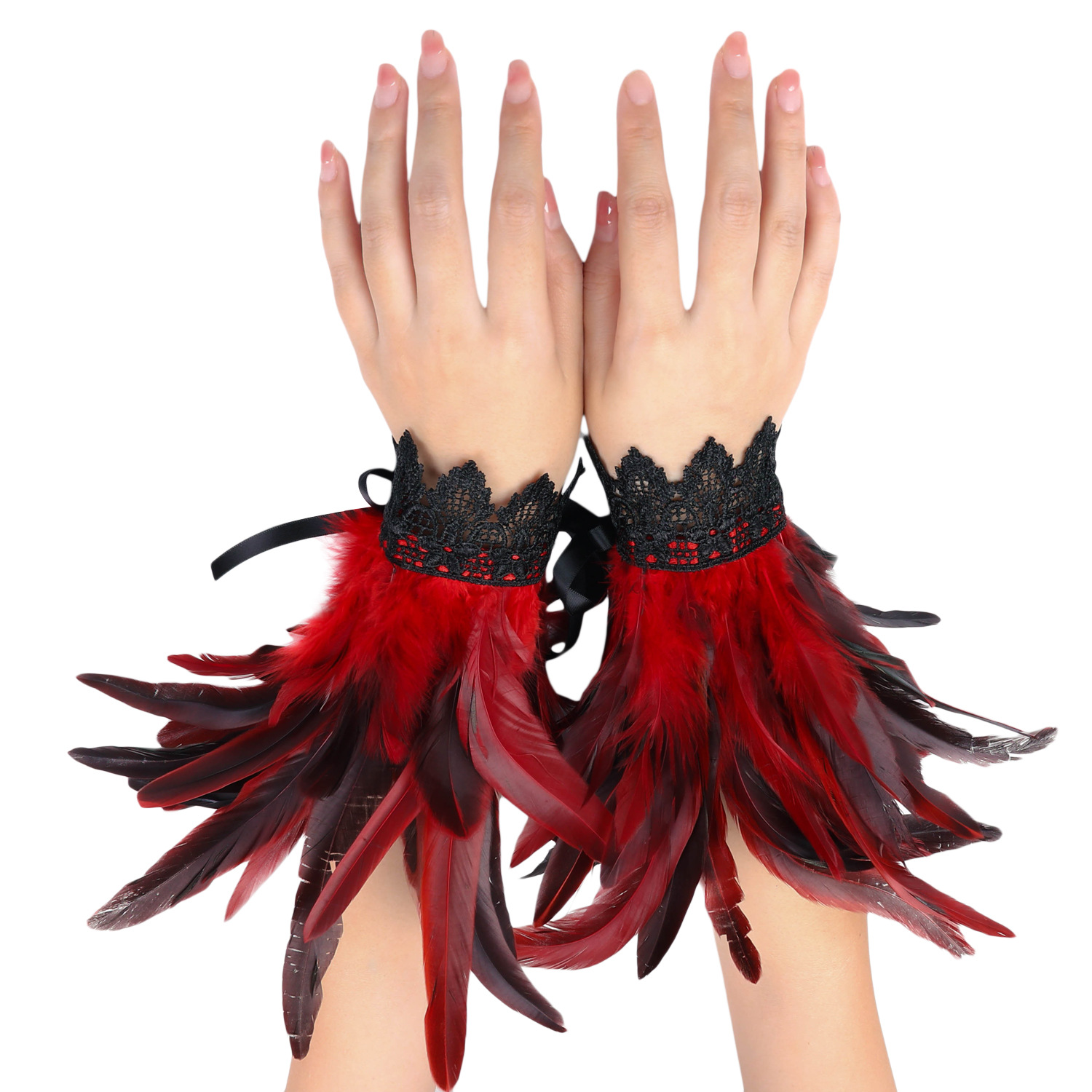 现货亚马逊羽毛手环节庆表演舞会蕾丝羽毛腕带哥特风格羽毛手